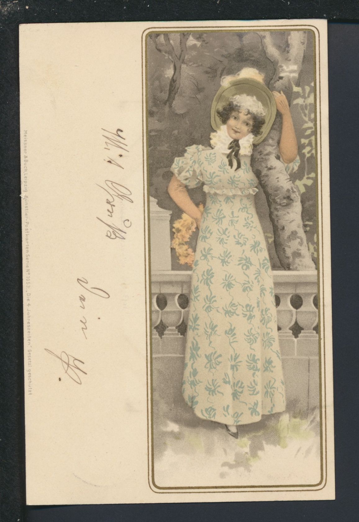 Jugendstil Künstler Ansichtskarte Meissner & Buch Serie 1053 Junge Dame im Park