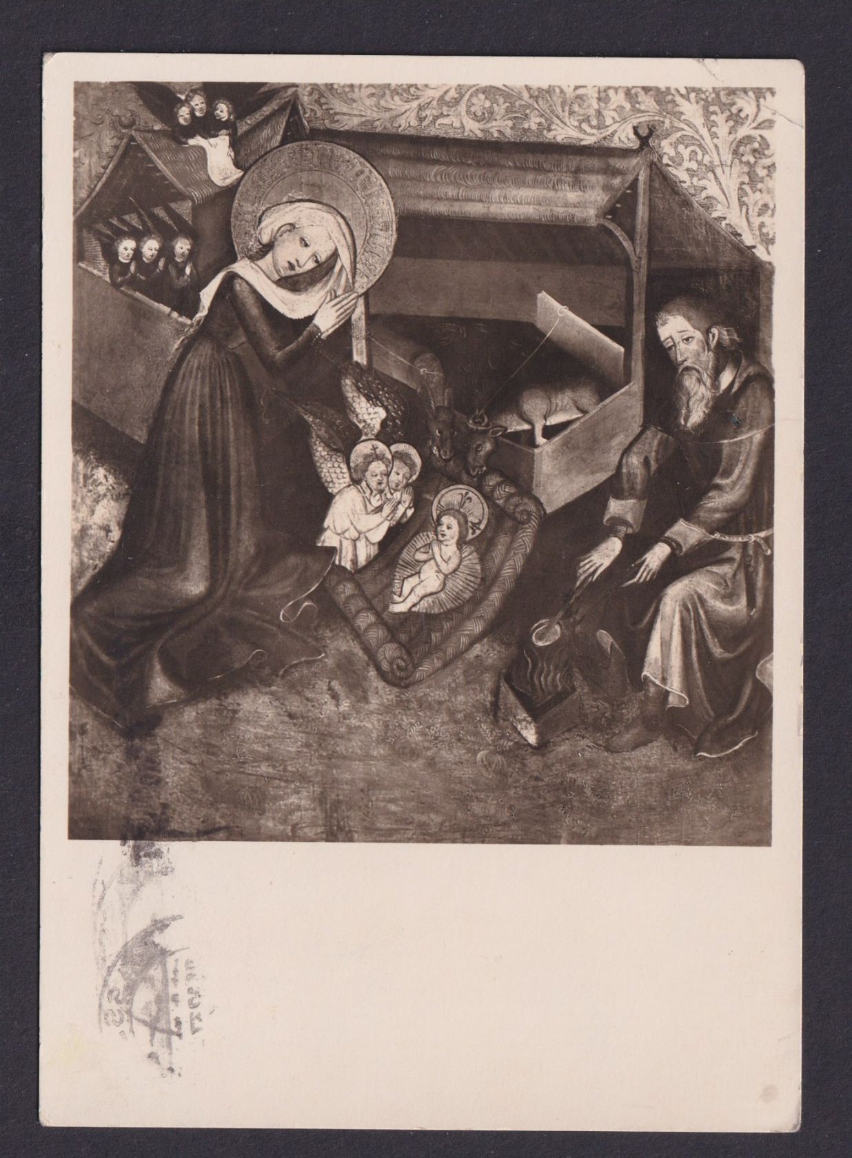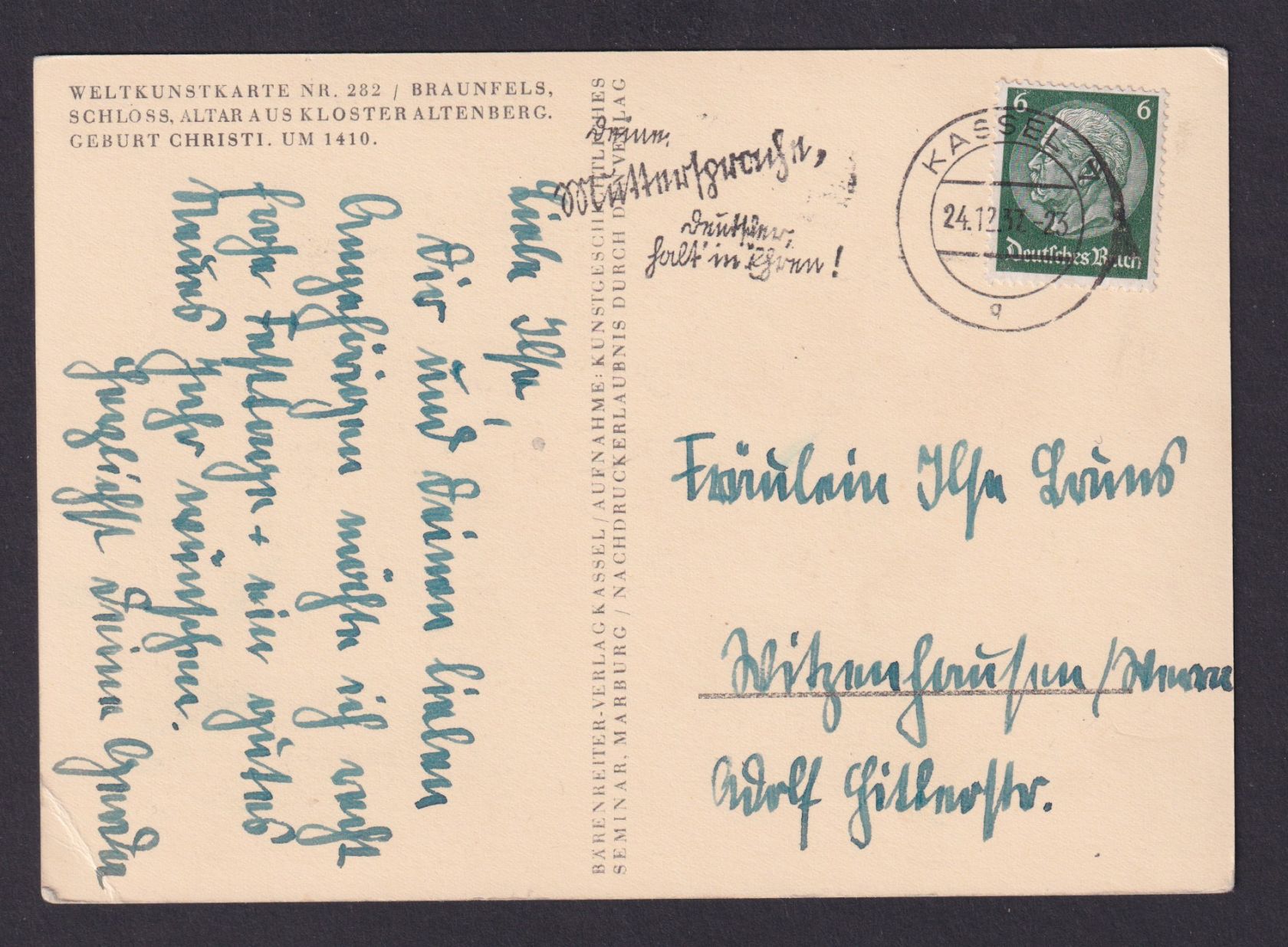 Hessen 24.12.1937 Deutsches reich AK Künstlerkarte Jesuskind in der Krippe Stall Maria Josef