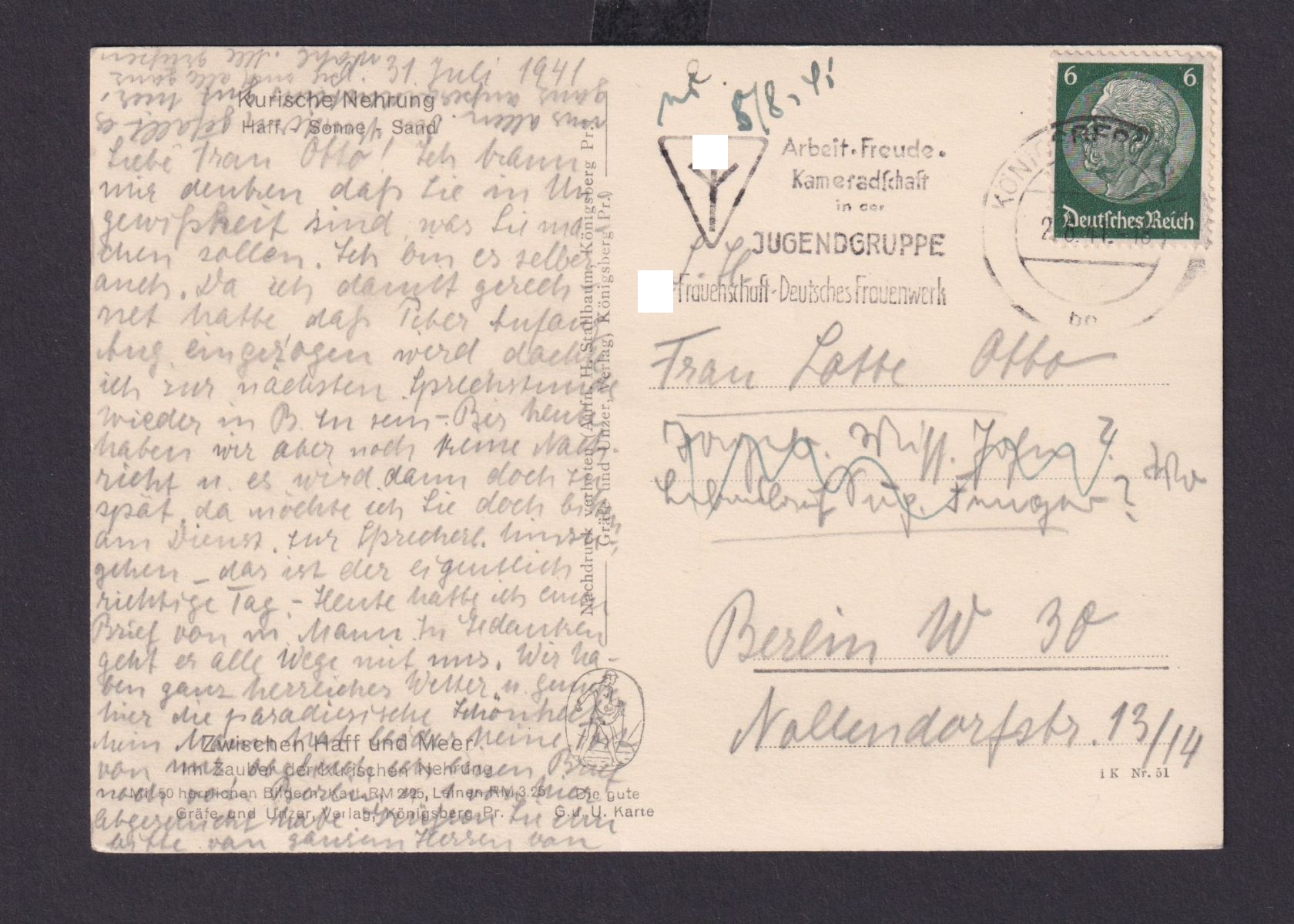 Freude Kameradschaft in der Jugendgruppe Frauenschaft Deutsches Frauenwerk n. Berlin 02.08.1941. AK Kurische Nehrung