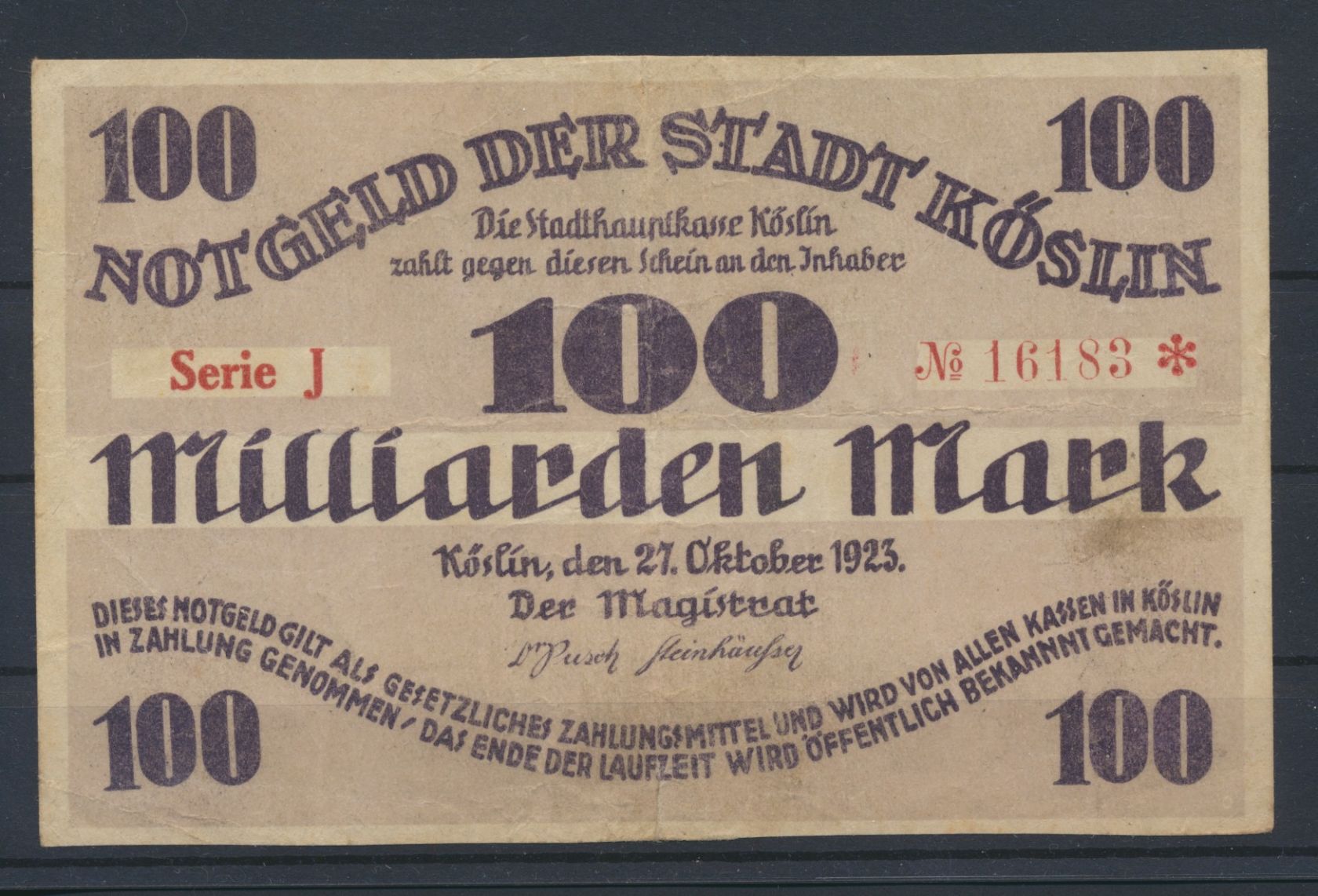 Köslin Pommern Kr. Köslin Koszalin Ostgebiete Geldschein Banknote 100 Milliarden