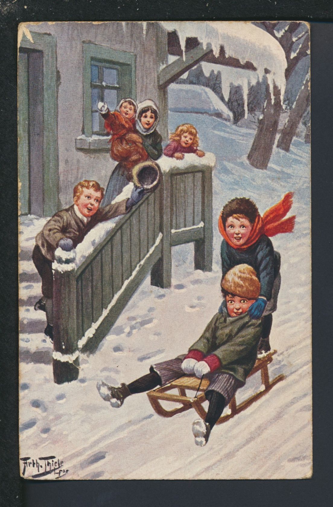 Künstler Ansichtskarte Arthur Thiele Schlittenfahrt Düsseldorf NRW Bottrop