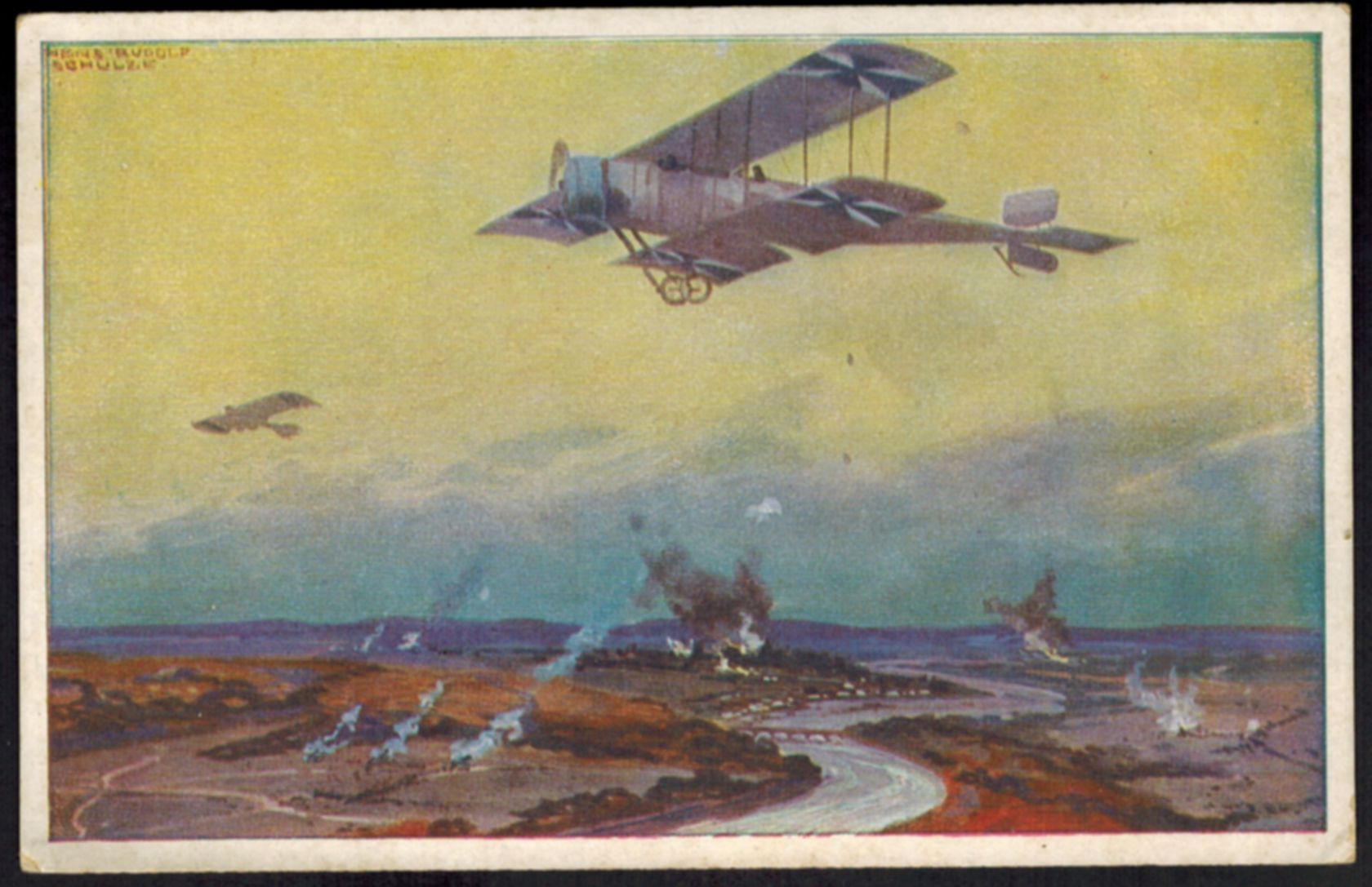 Künstler Ansichtskarte I.WK Flugpost Flugzeug Doppeldecker Deutscher Luftflotten