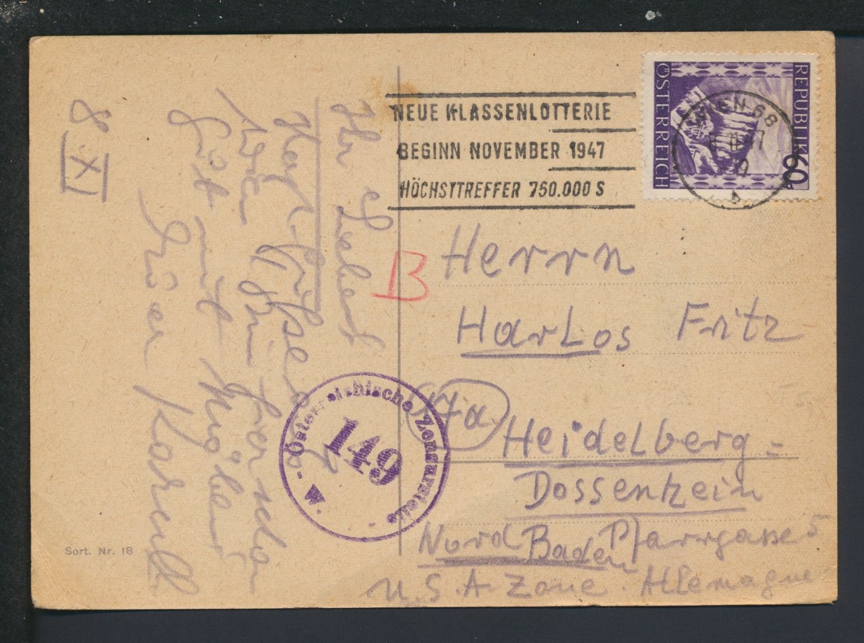 Künstler Zensur Ansichtskarte SST Lotterie Österreich Wien Heidelberg Dossenheim