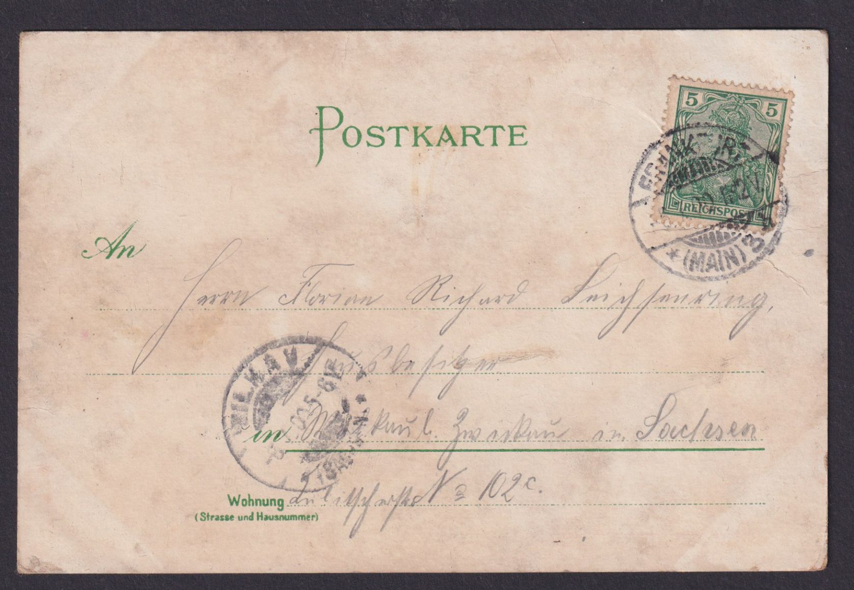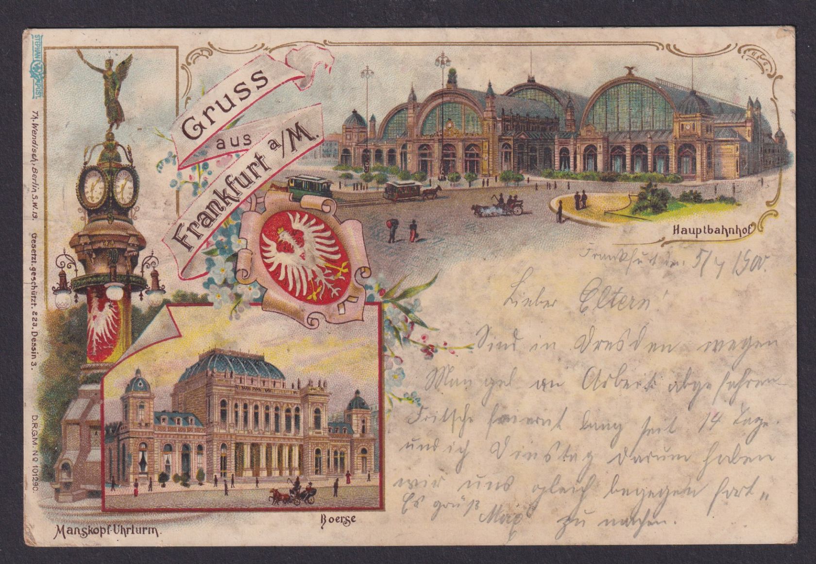 Litho Ansichtskarte Frankfurt a. Main Manskopf Uhrturm Hauptbahnhof n. Wilkau