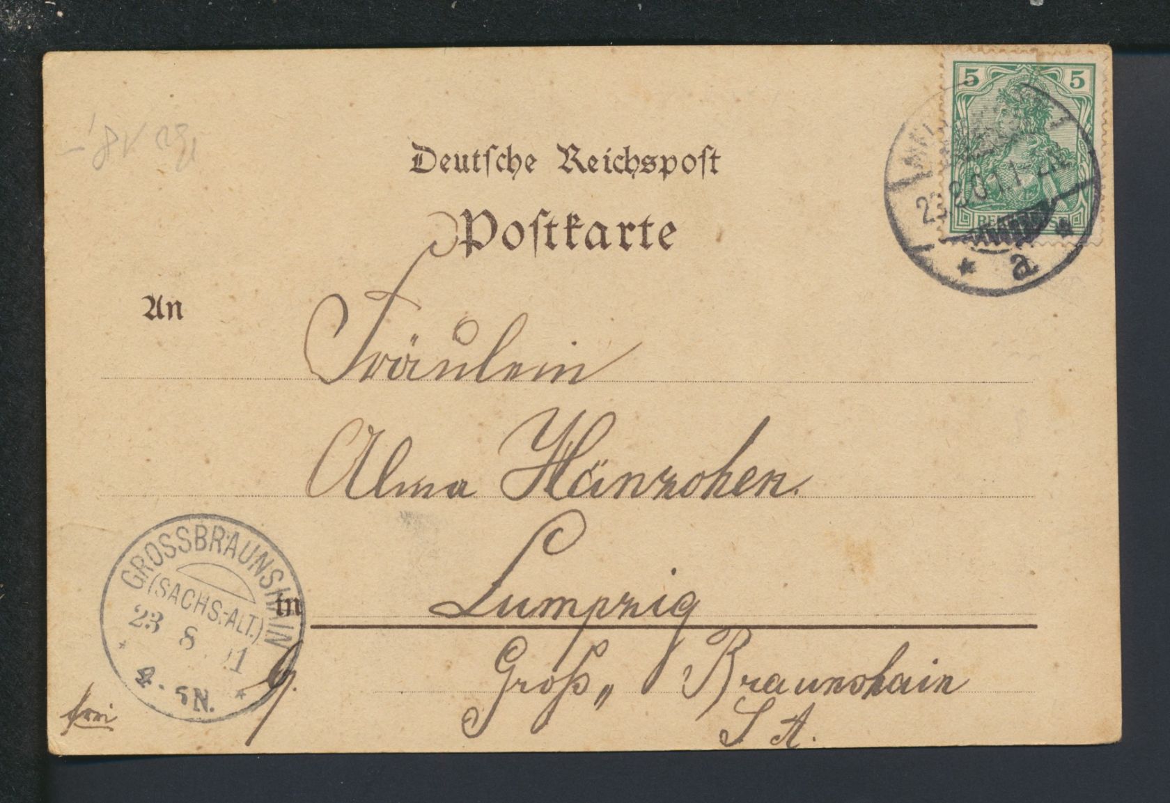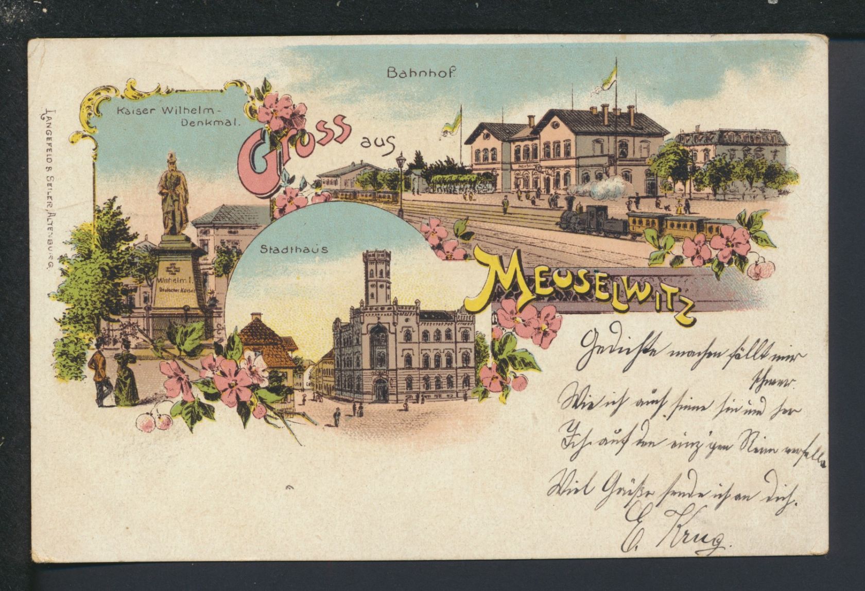 Litho Ansichtskarte Meuselwitz Thüringen Bahnhof Stadthaus Lumpzig 1901