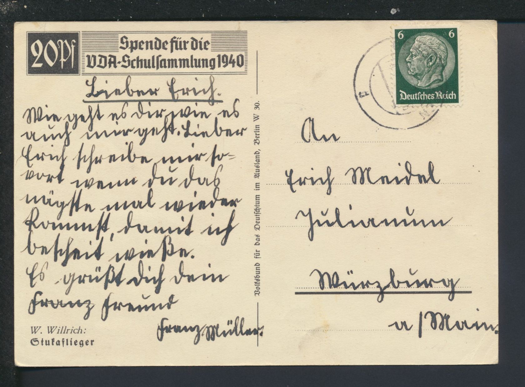 Militaria Künstler Propaganda Ansichtskarte II WK Stukaflieger Willrich Würzburg