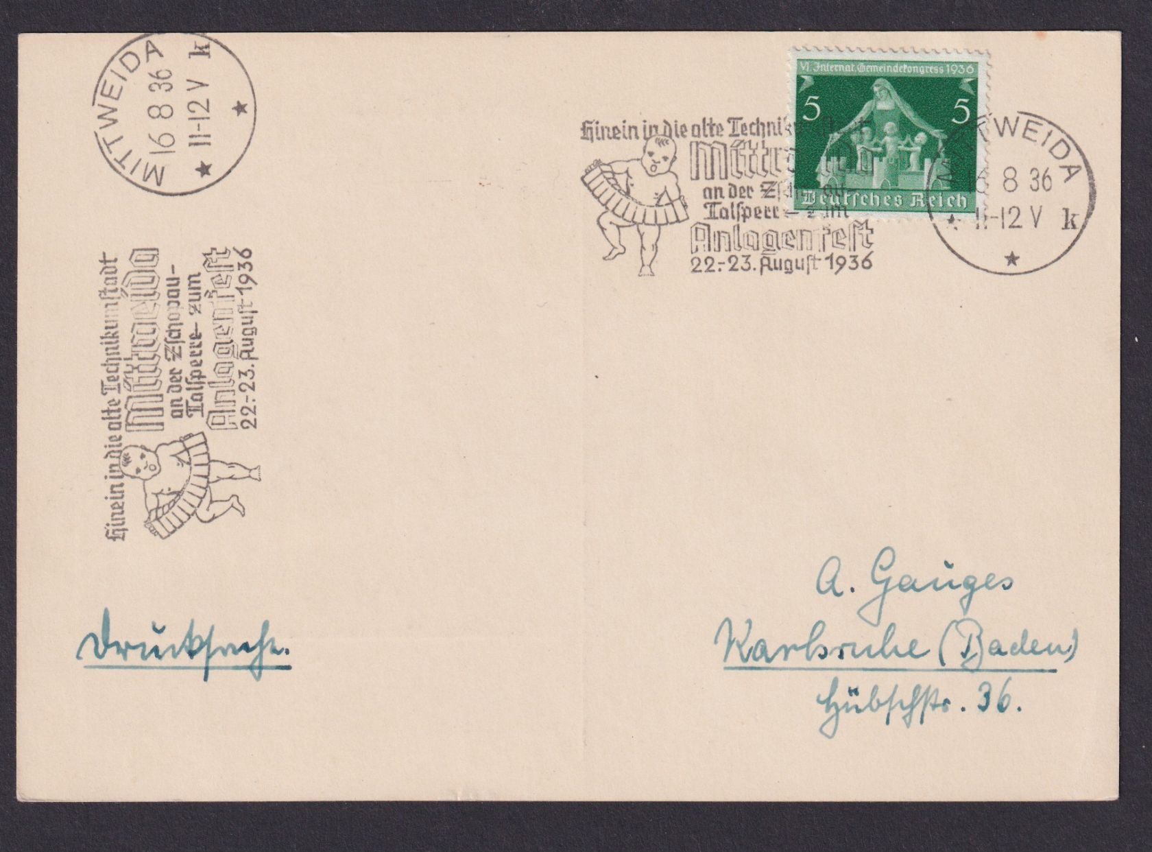 Mittweida an d. Zschopau Talsperre Anlagenfest 1936 n. Karlsruhe Baden Württemberg 16.08.1936 Deutsches Reich
