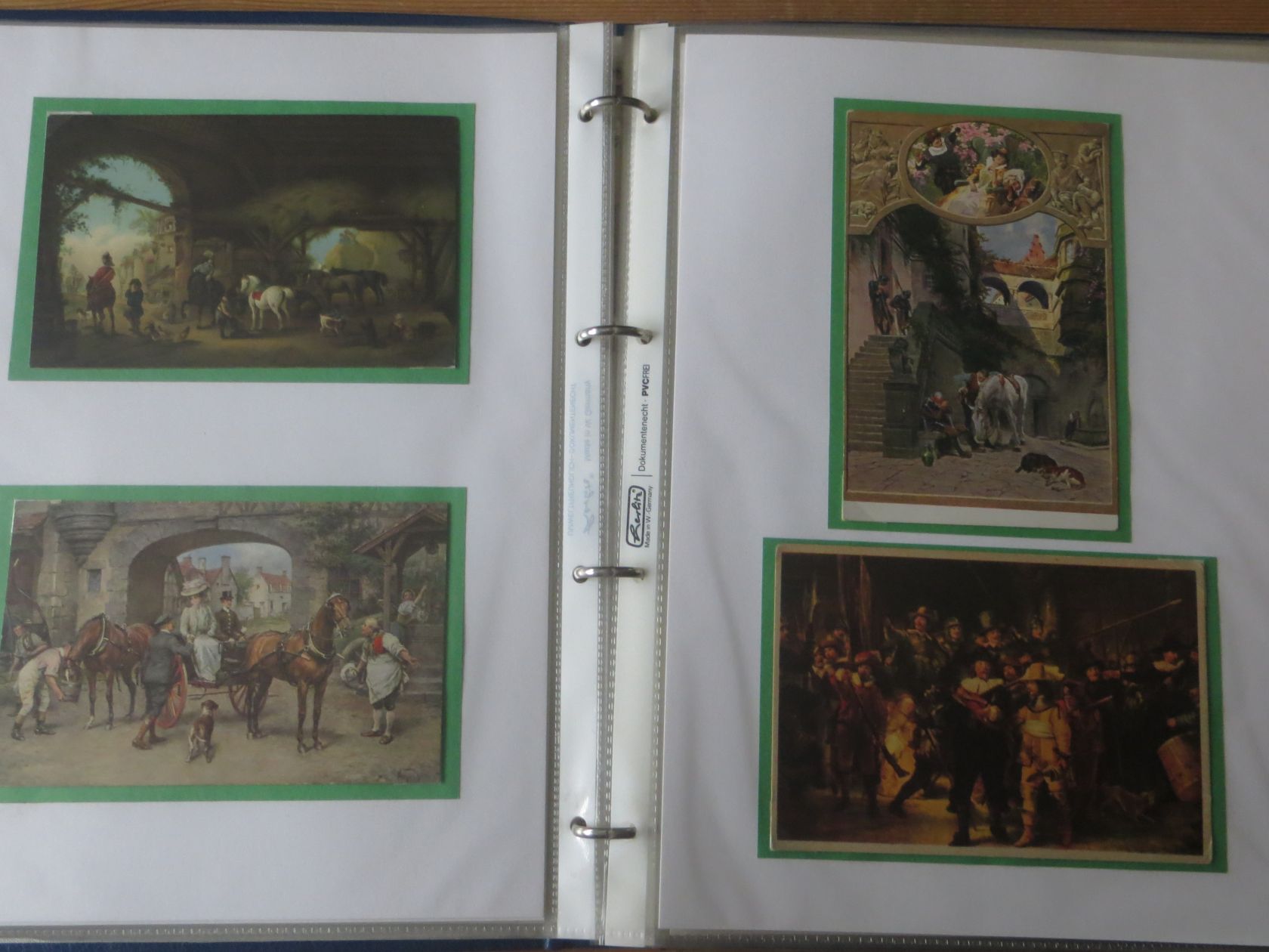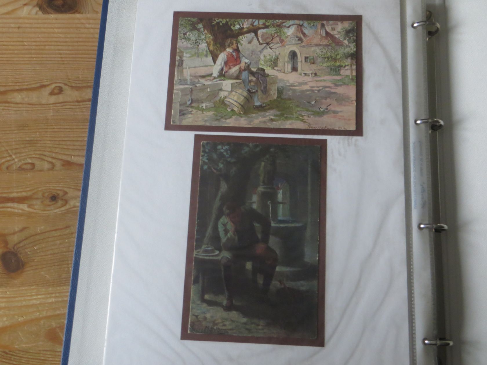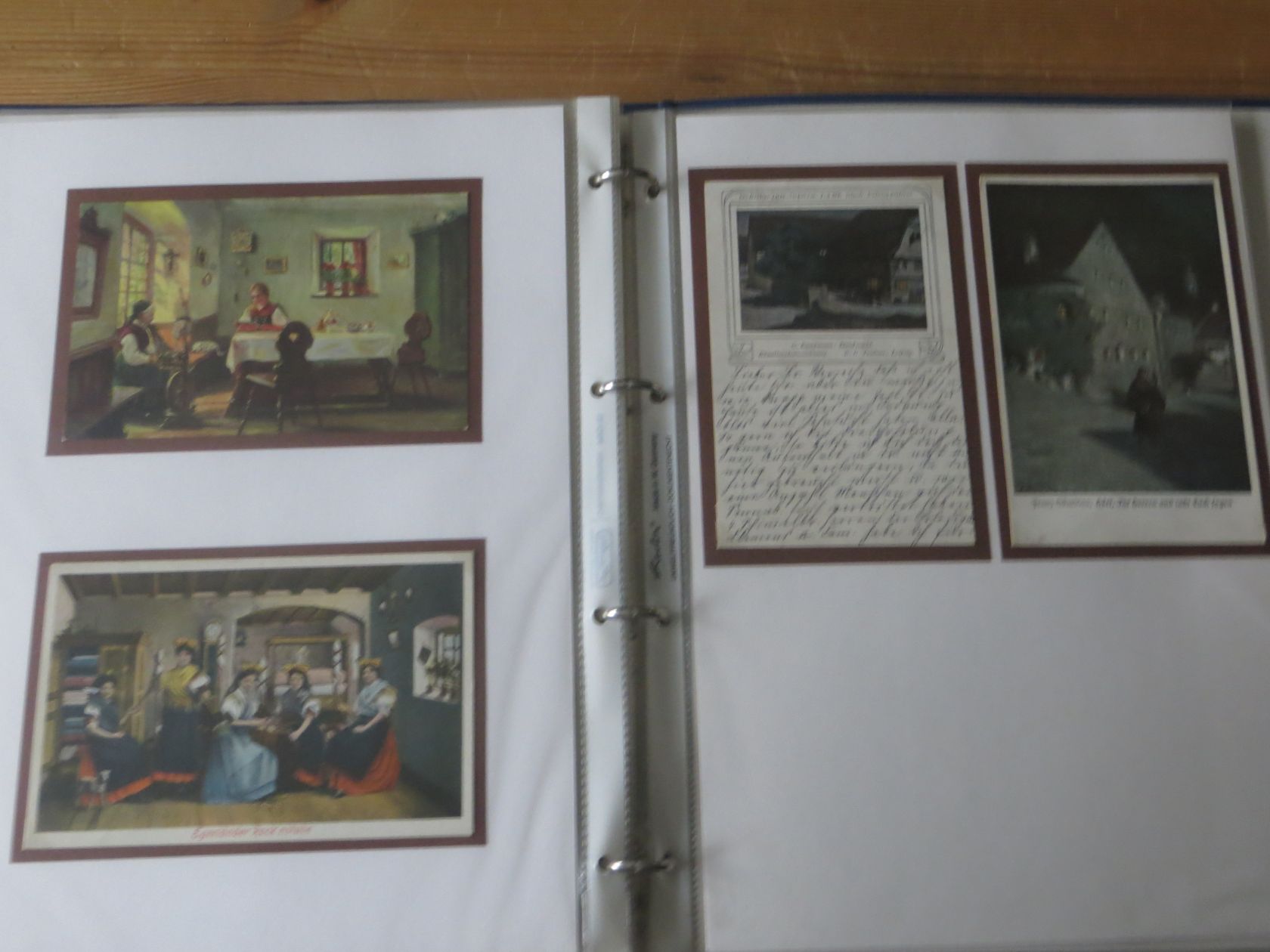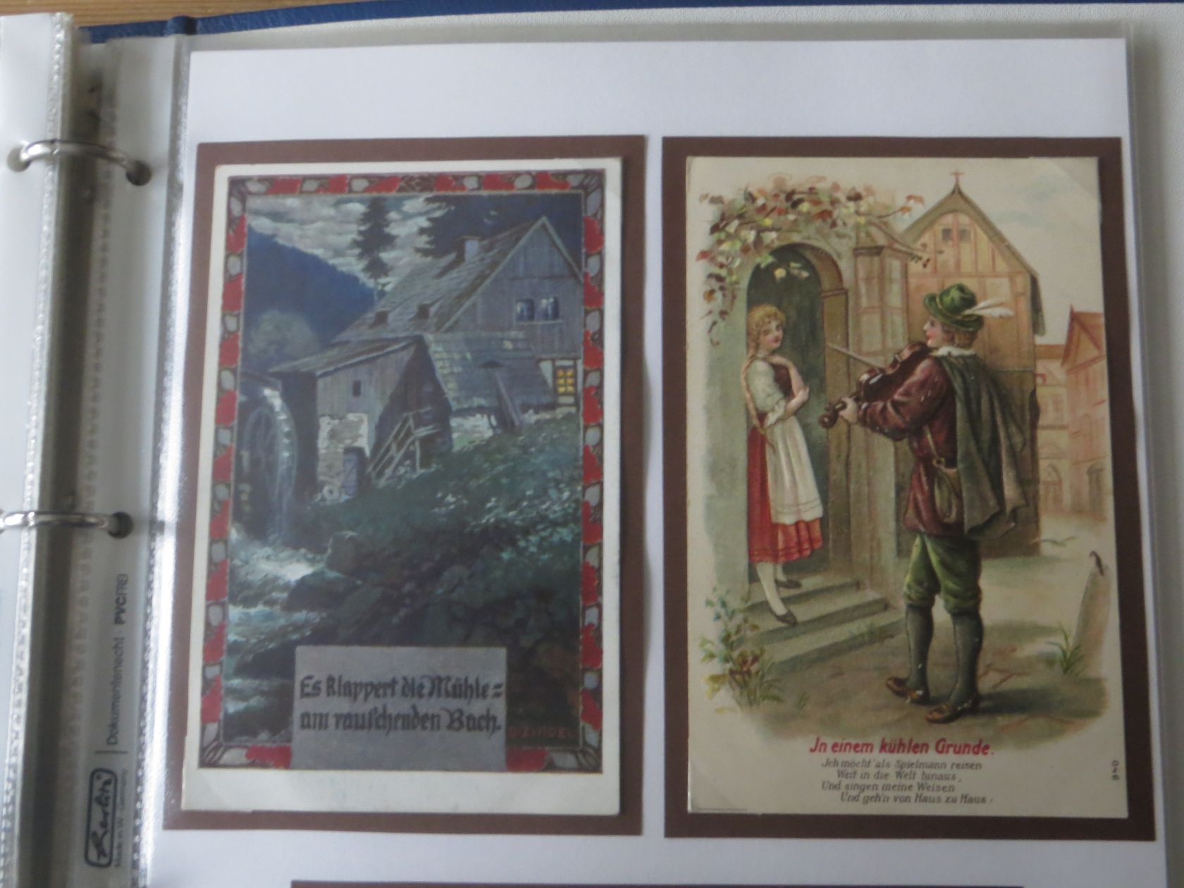 schöne Karten, alle alt und original. Wohl alle in Farbe. Dabei wunderschöne Künstlerkarten. Ein ungemein ansprechendes Objekt, mit wohl nur ausgesuchten Karten. Jede Karte sehr sauber mit Fotoecken auf farbigen Karton aufgezogen. Und alles in sehr guter Gesamterhaltung!