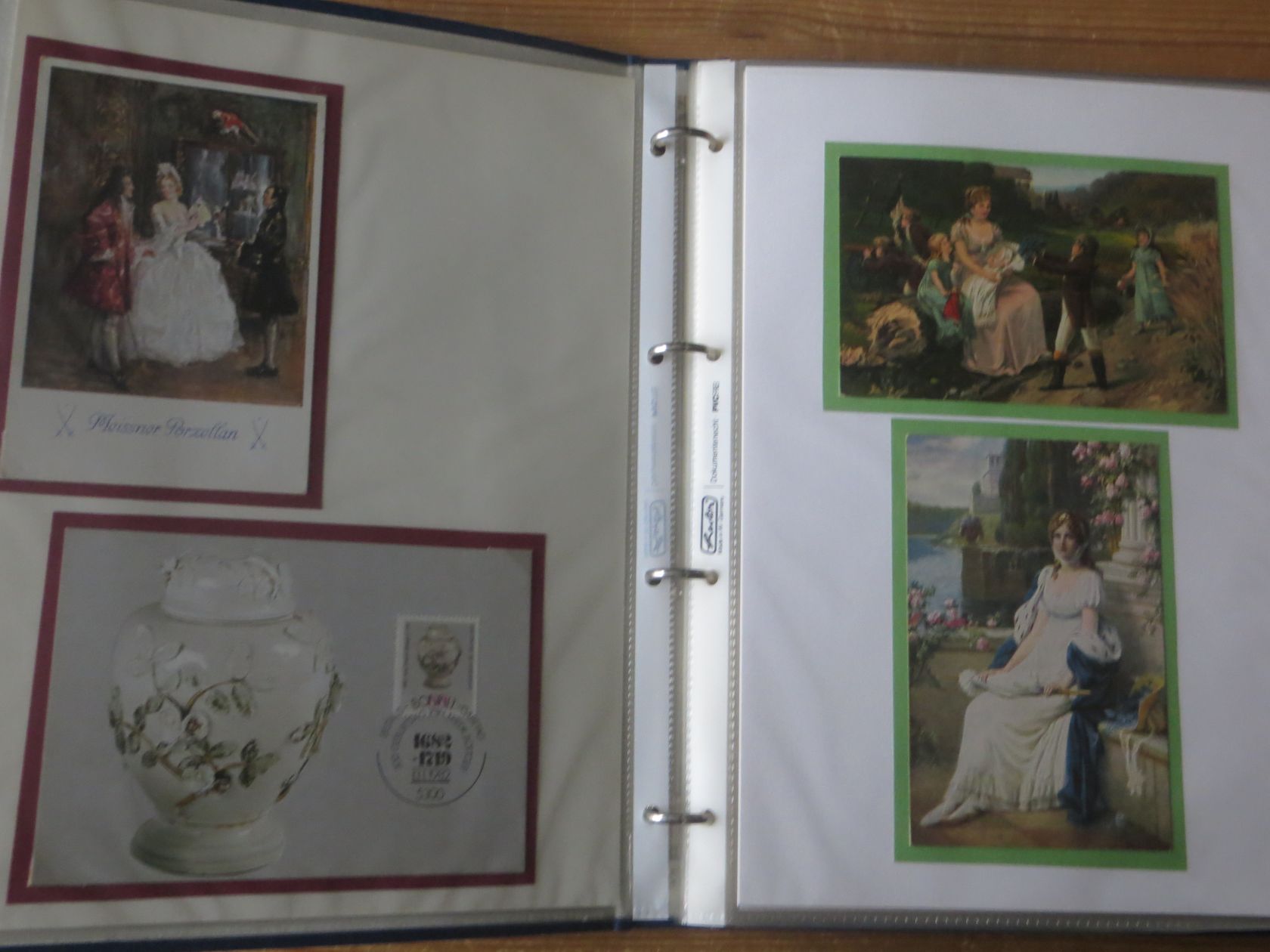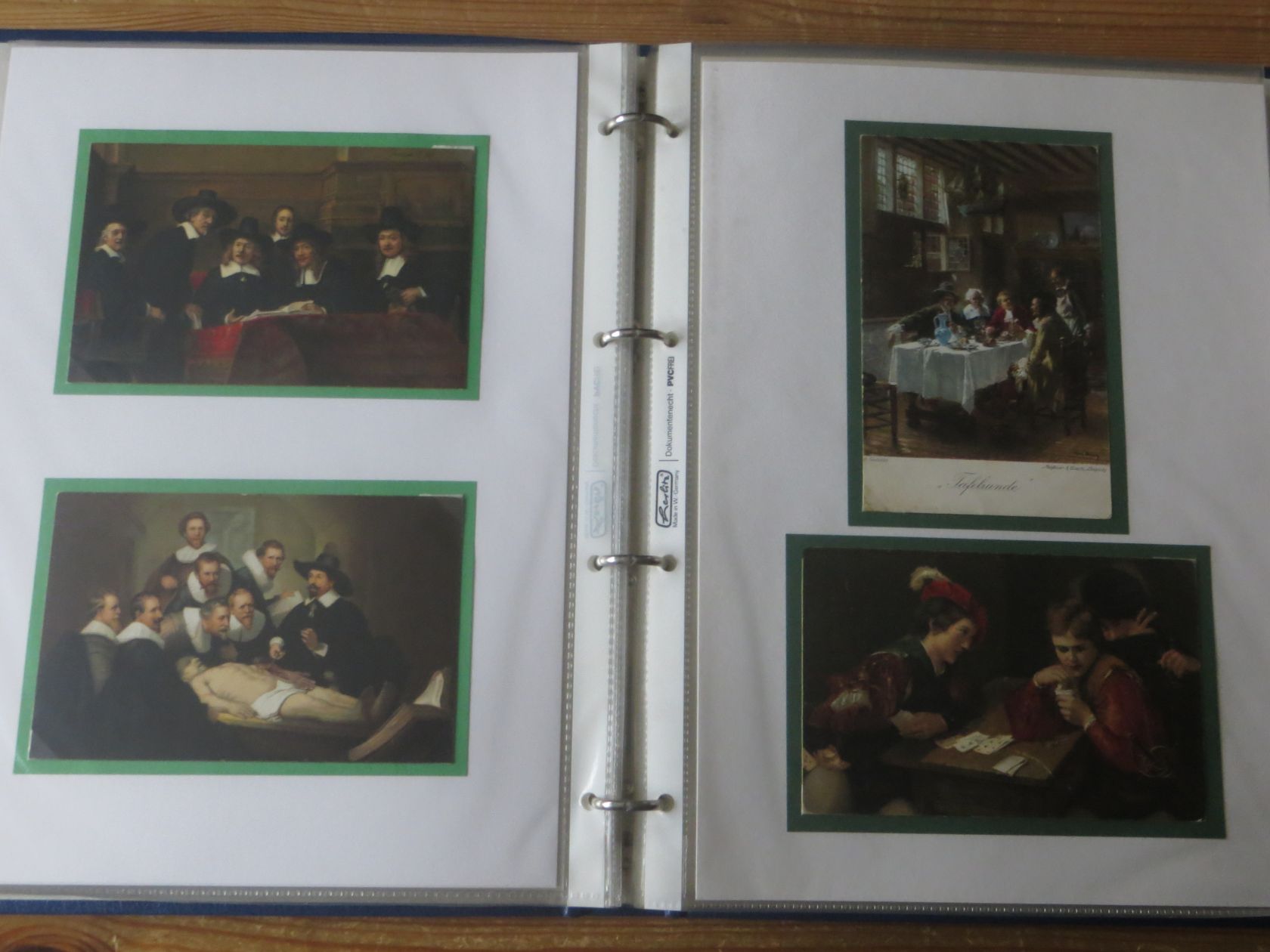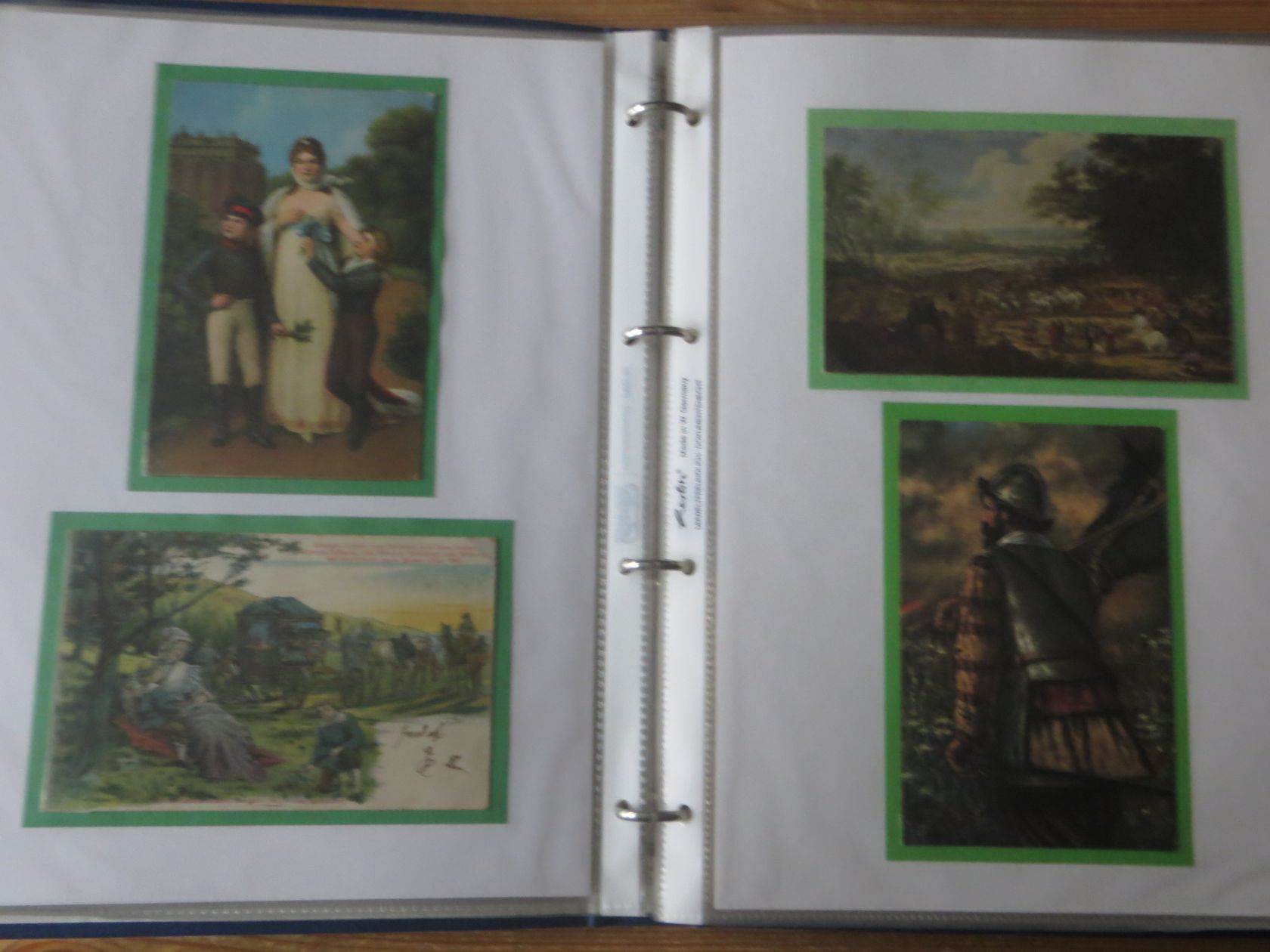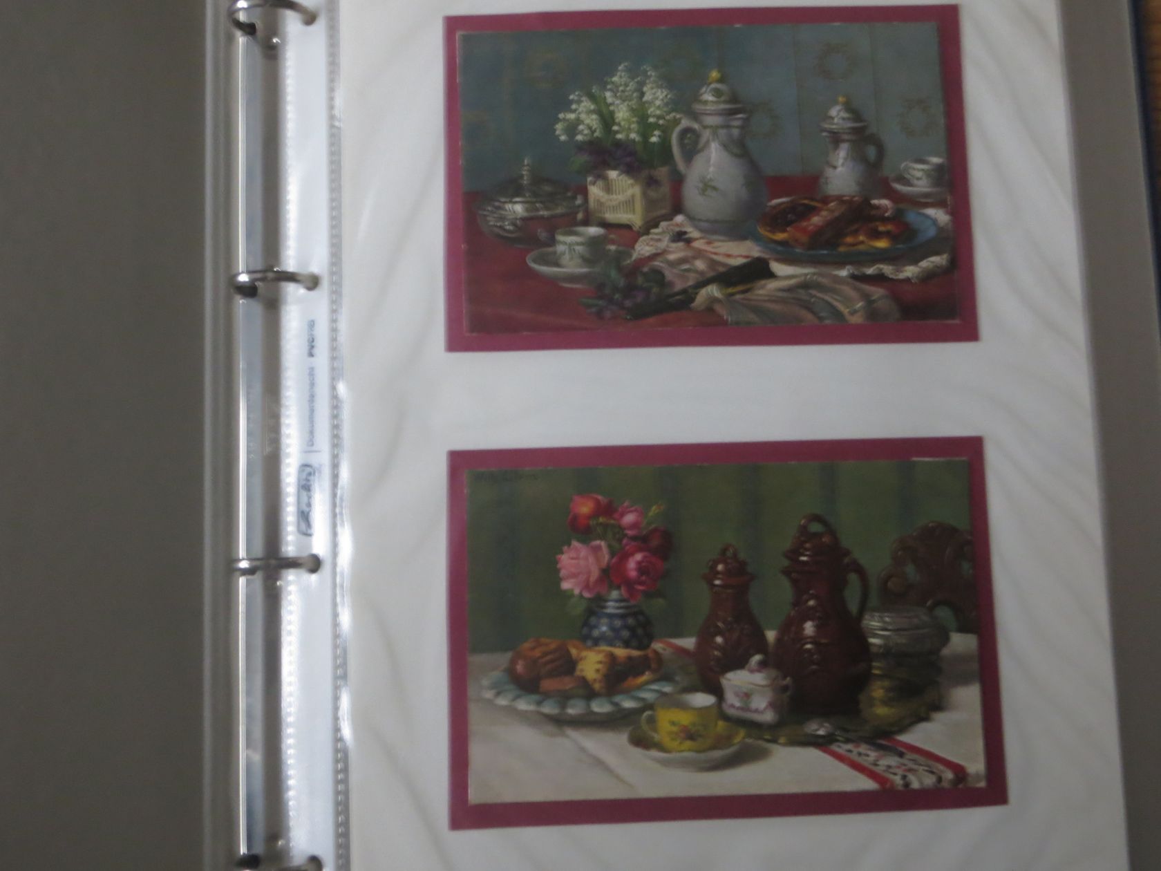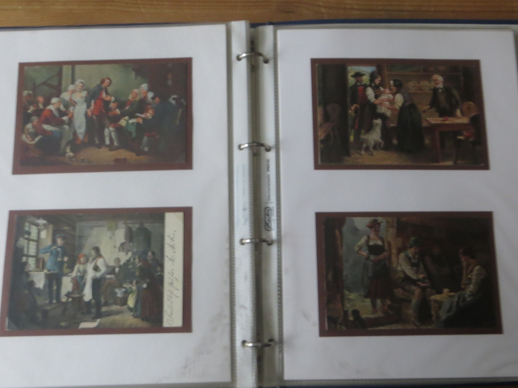 schöne Karten, alle alt und original. Wohl alle in Farbe. Dabei wunderschöne Künstlerkarten. Ein ungemein ansprechendes Objekt, mit wohl nur ausgesuchten Karten. Jede Karte sehr sauber mit Fotoecken auf farbigen Karton aufgezogen. Und alles in sehr guter Gesamterhaltung!