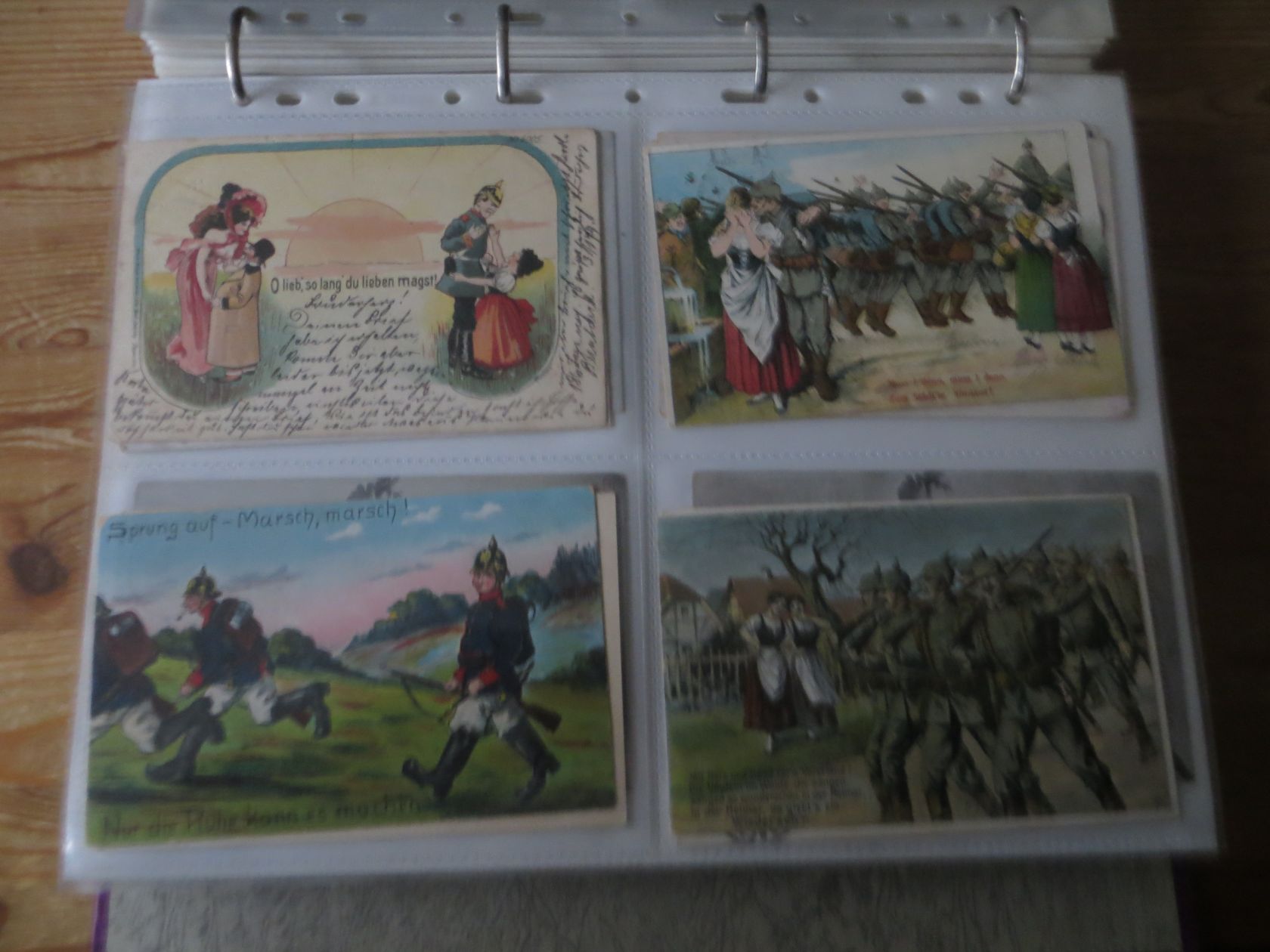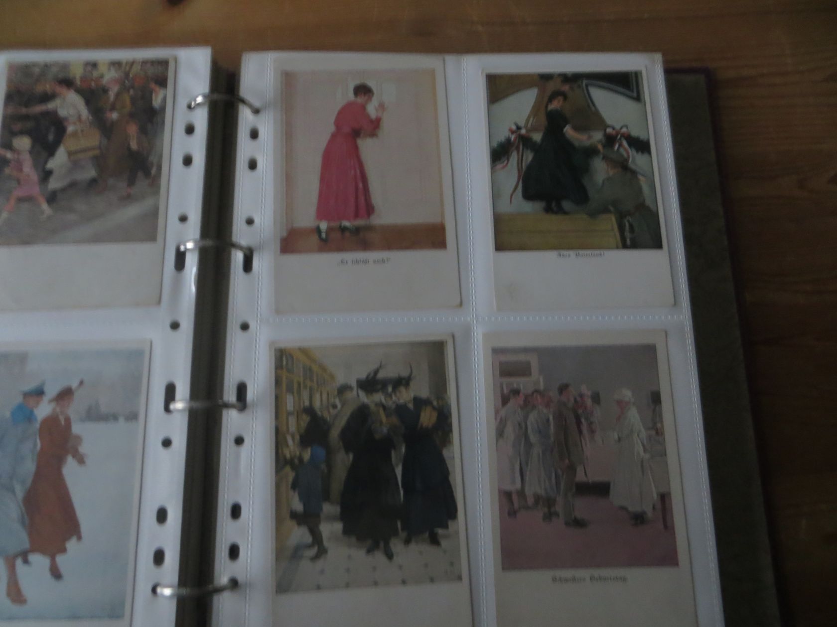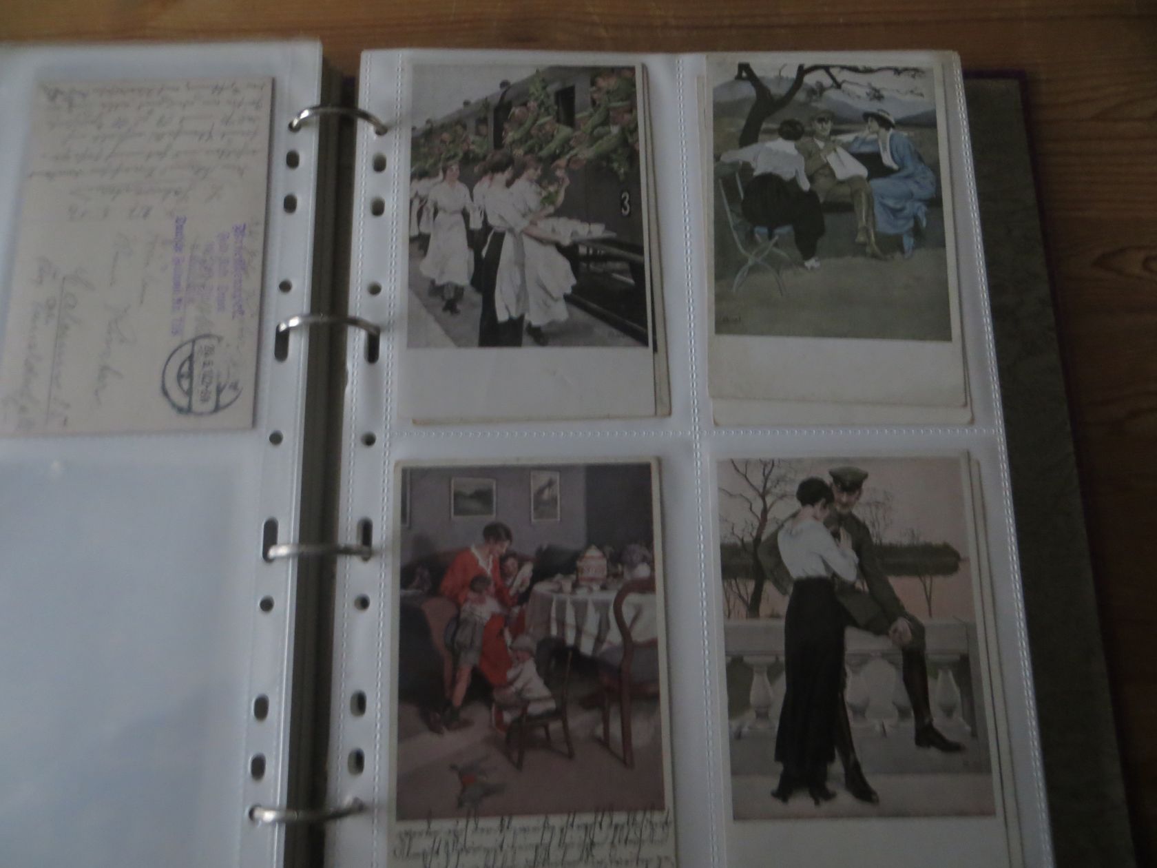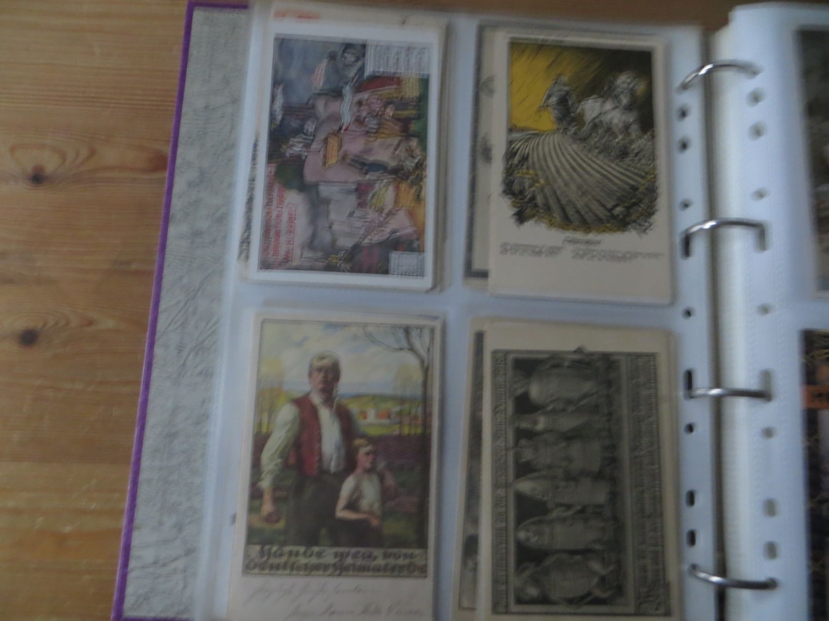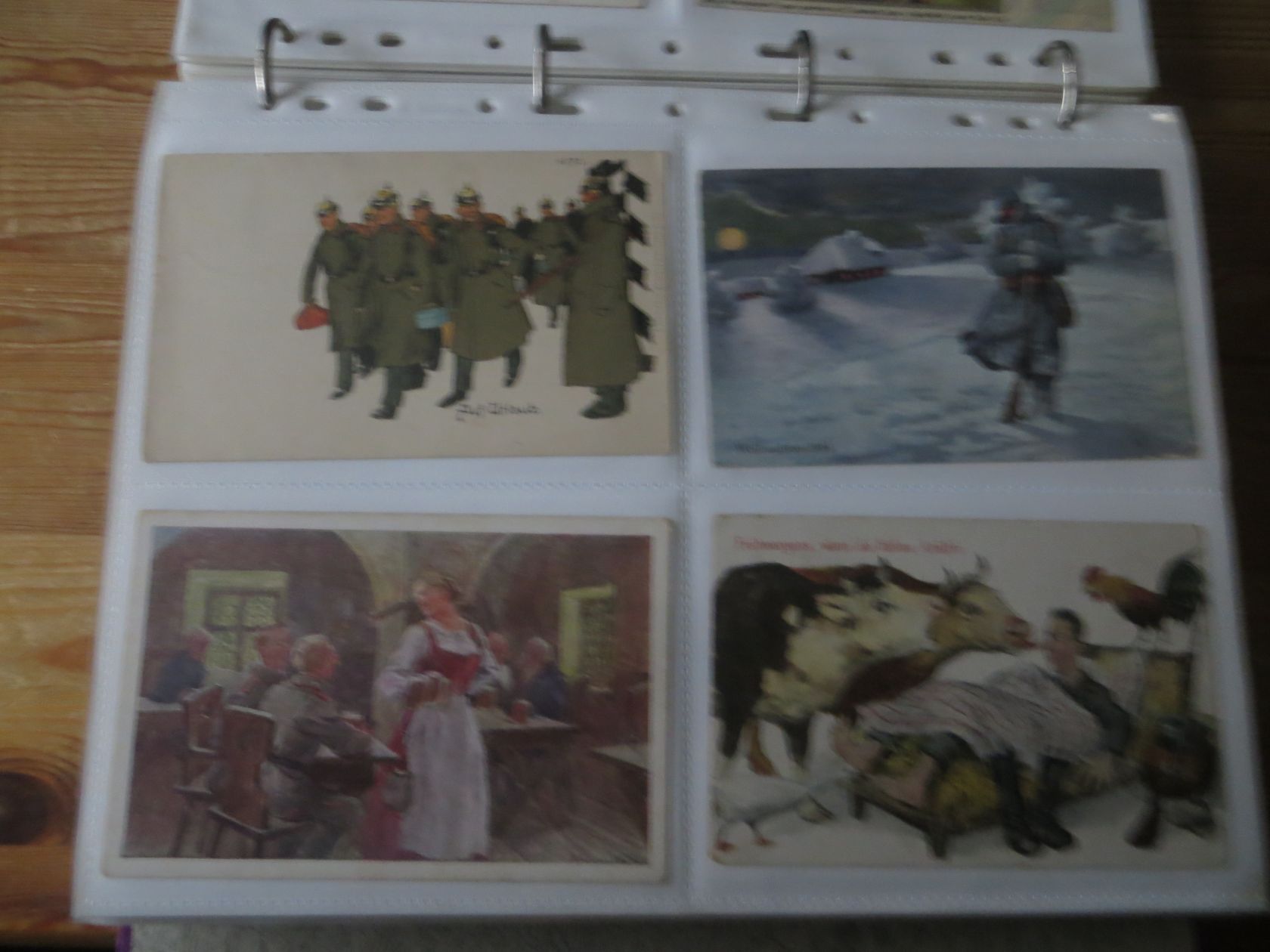 und div. Thematik, mit sehr vielen signierten Künstler - Karten, starke Propaganda auch Anti Russland, meist tolle Farbkarten, und auch Lithos, natürlich viel Feldpost und sicher in diesem Bereich Stempel - Fundgrube, eine tolle Serie Karten aus Frankreich in ungewöhnlich schöner Farbgestaltung handcoloriert !- dann auch etwas Humor, schöne Serie signiert B.W. Brynolf Wennerberg Kriegspostkarten mit alleine 28 Karten, Karten von Paul Hey, Karten Ludendorf Spende, und Kriegsanleihe, und vieles andere mehr! Schönes, interessantes und ansprechendes Objekt, mit geschichtlichen Hintergurnd, mit wohl nur ausgesuchten Karten. Nicht die übliche Masse! Ein immer wieder schönes und gesuchtes Sammelgebiet. Und in sehr guter Gesamterhaltung! Ideal zum Auflösen!