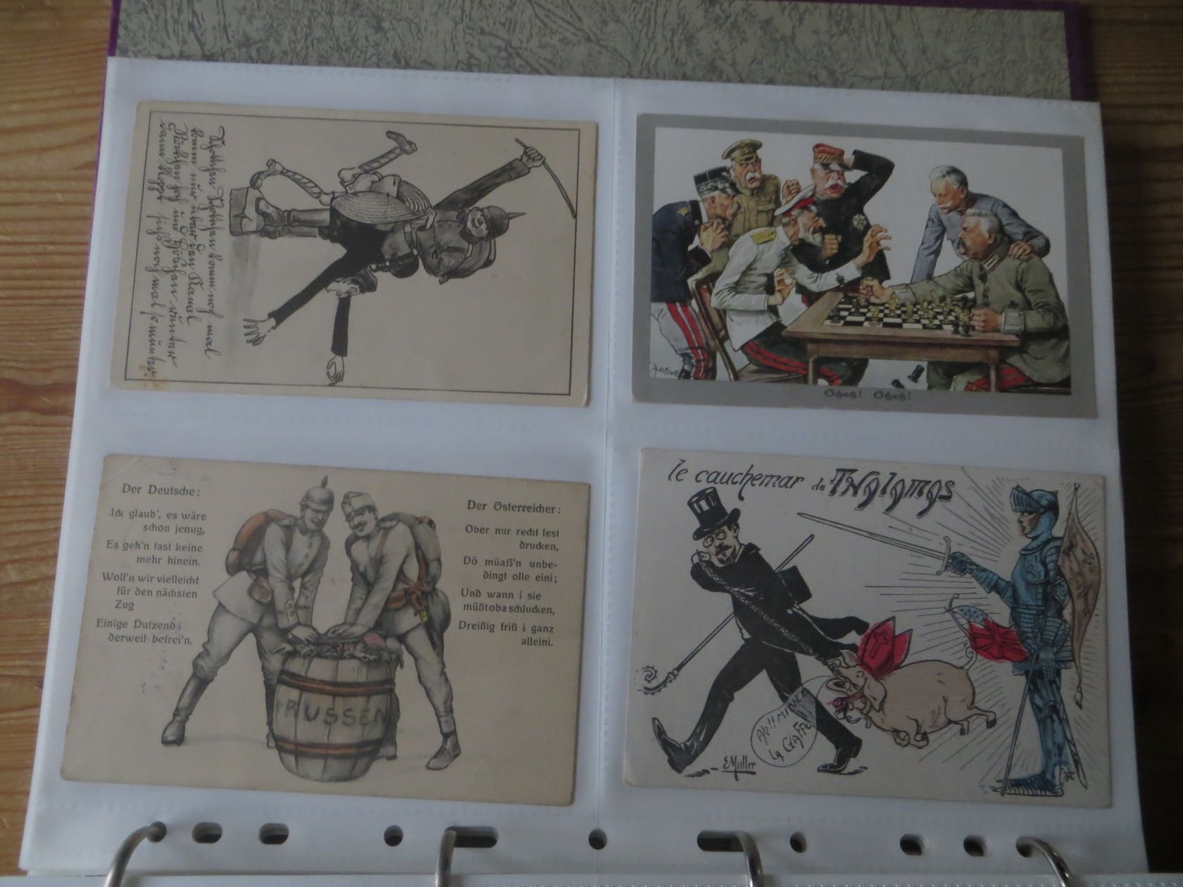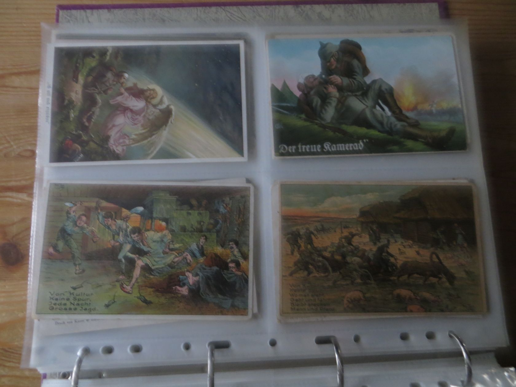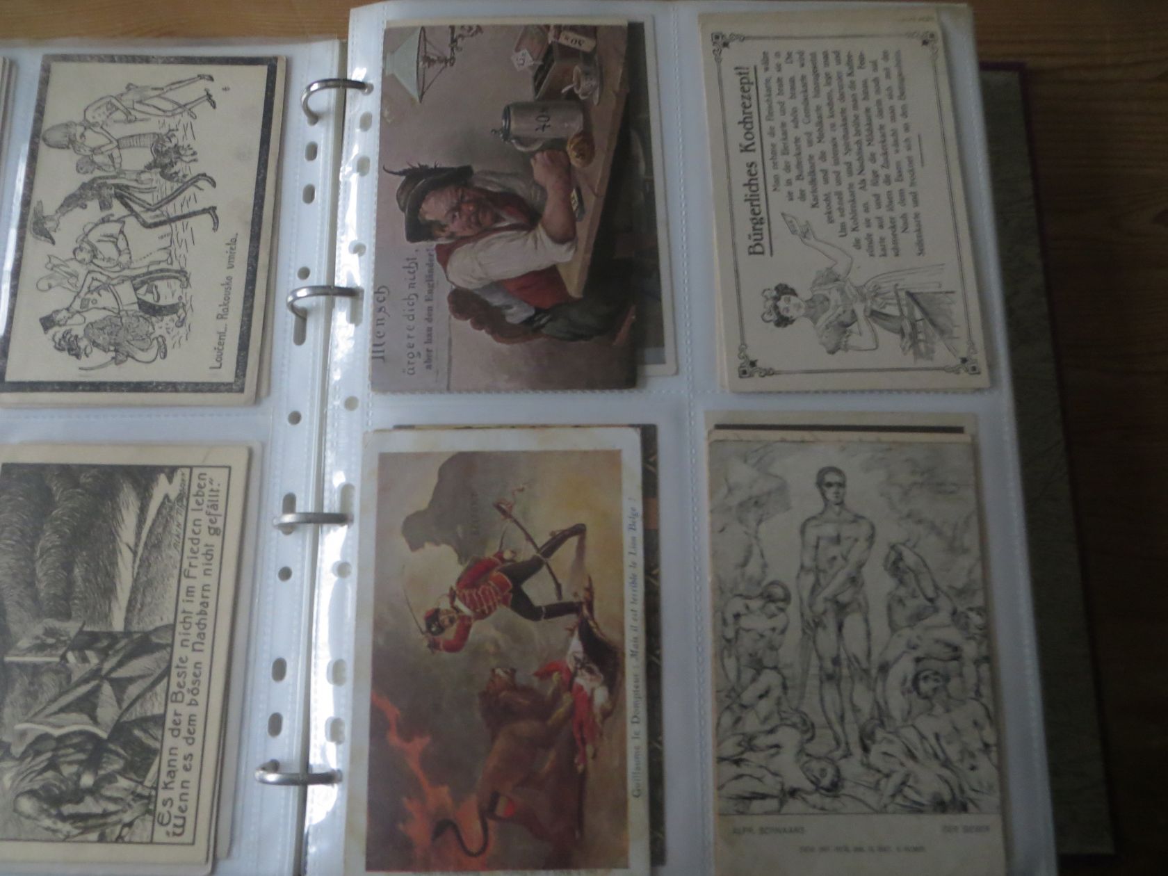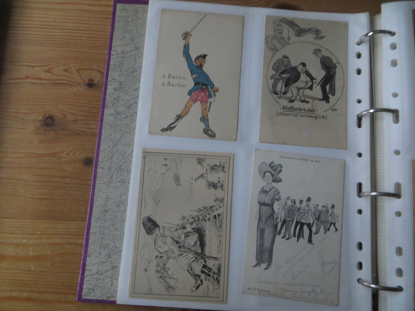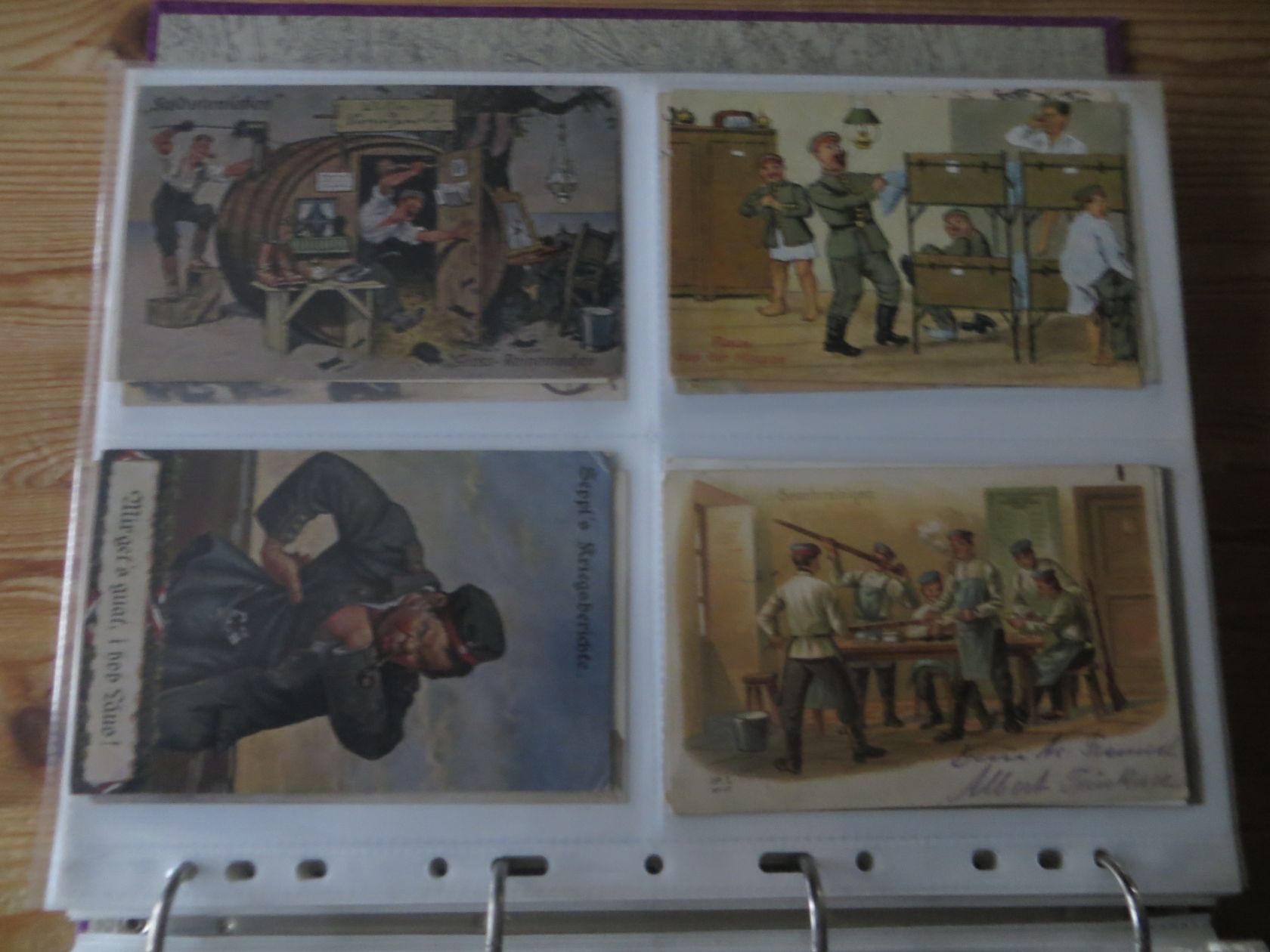 und div. Thematik, mit sehr vielen signierten Künstler - Karten, starke Propaganda auch Anti Russland, meist tolle Farbkarten, und auch Lithos, natürlich viel Feldpost und sicher in diesem Bereich Stempel - Fundgrube, eine tolle Serie Karten aus Frankreich in ungewöhnlich schöner Farbgestaltung handcoloriert !- dann auch etwas Humor, schöne Serie signiert B.W. Brynolf Wennerberg Kriegspostkarten mit alleine 28 Karten, Karten von Paul Hey, Karten Ludendorf Spende, und Kriegsanleihe, und vieles andere mehr! Schönes, interessantes und ansprechendes Objekt, mit geschichtlichen Hintergurnd, mit wohl nur ausgesuchten Karten. Nicht die übliche Masse! Ein immer wieder schönes und gesuchtes Sammelgebiet. Und in sehr guter Gesamterhaltung! Ideal zum Auflösen!