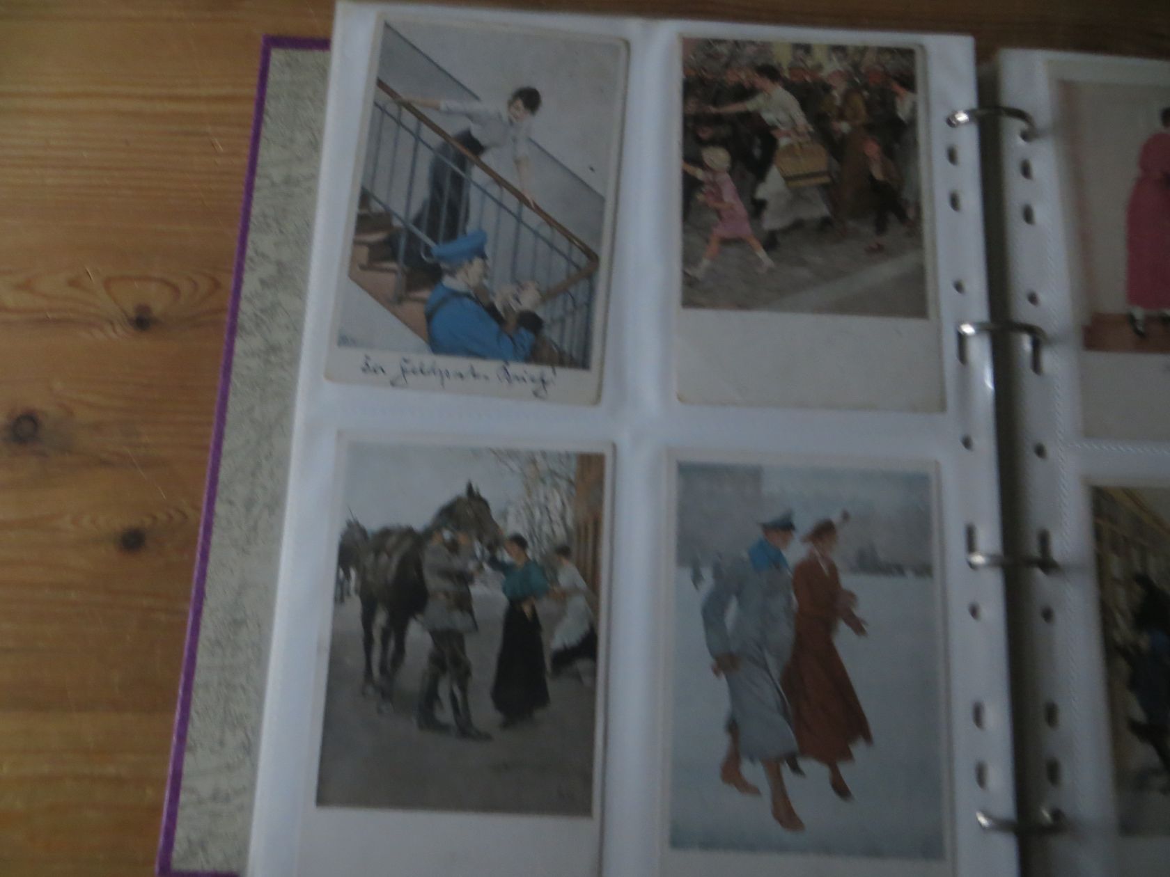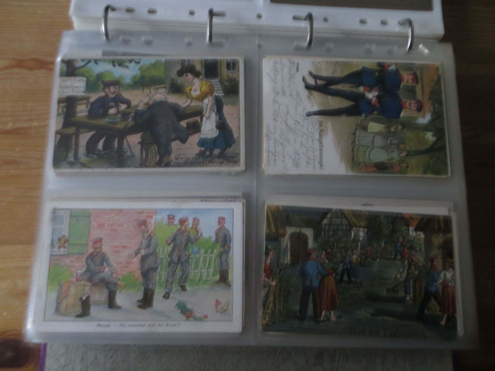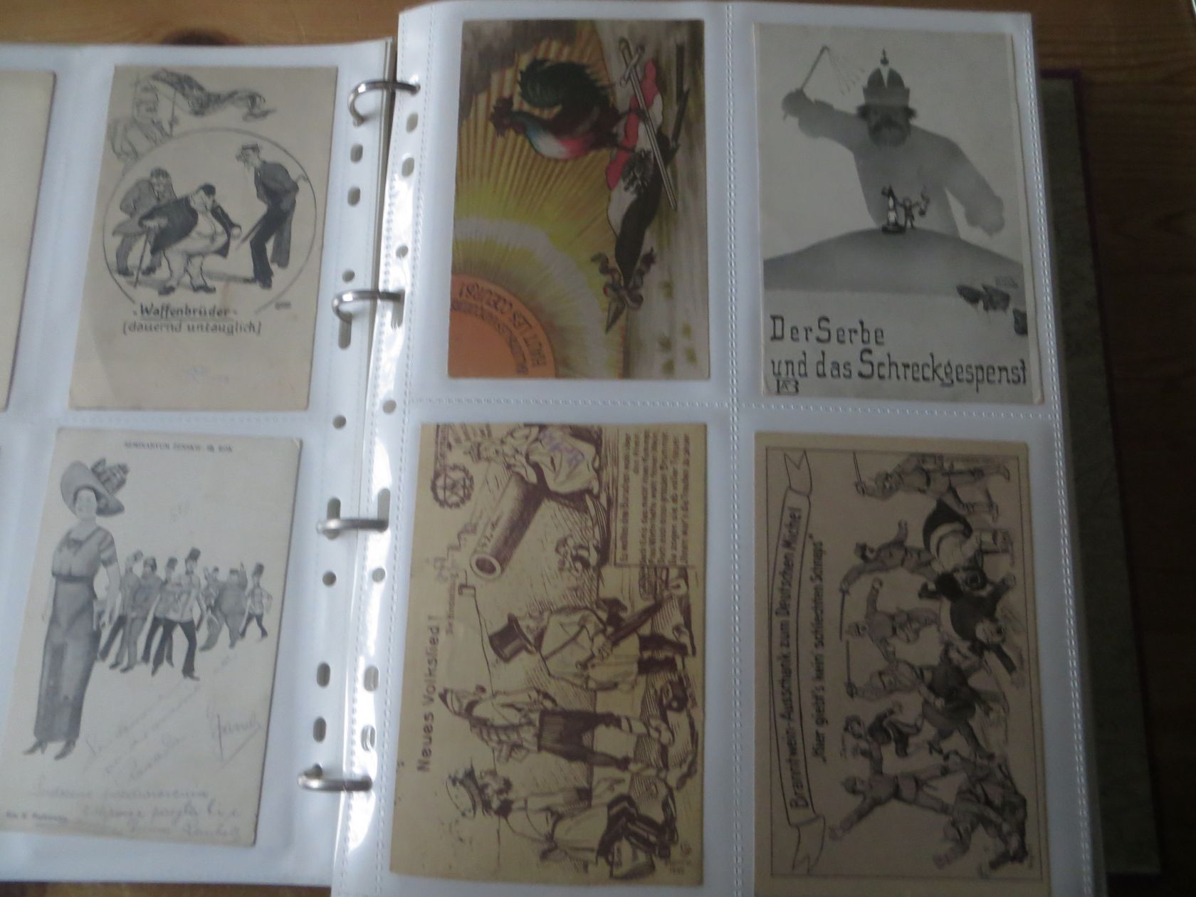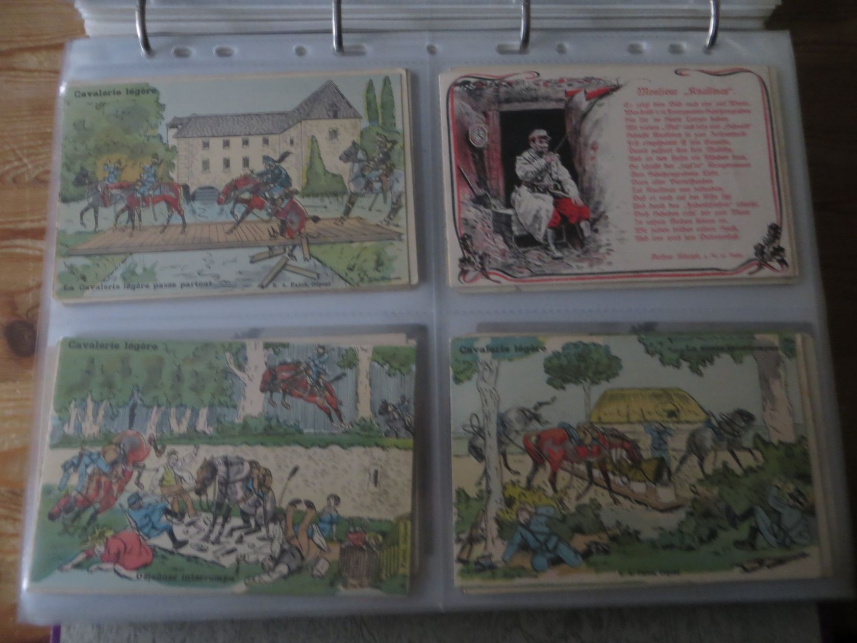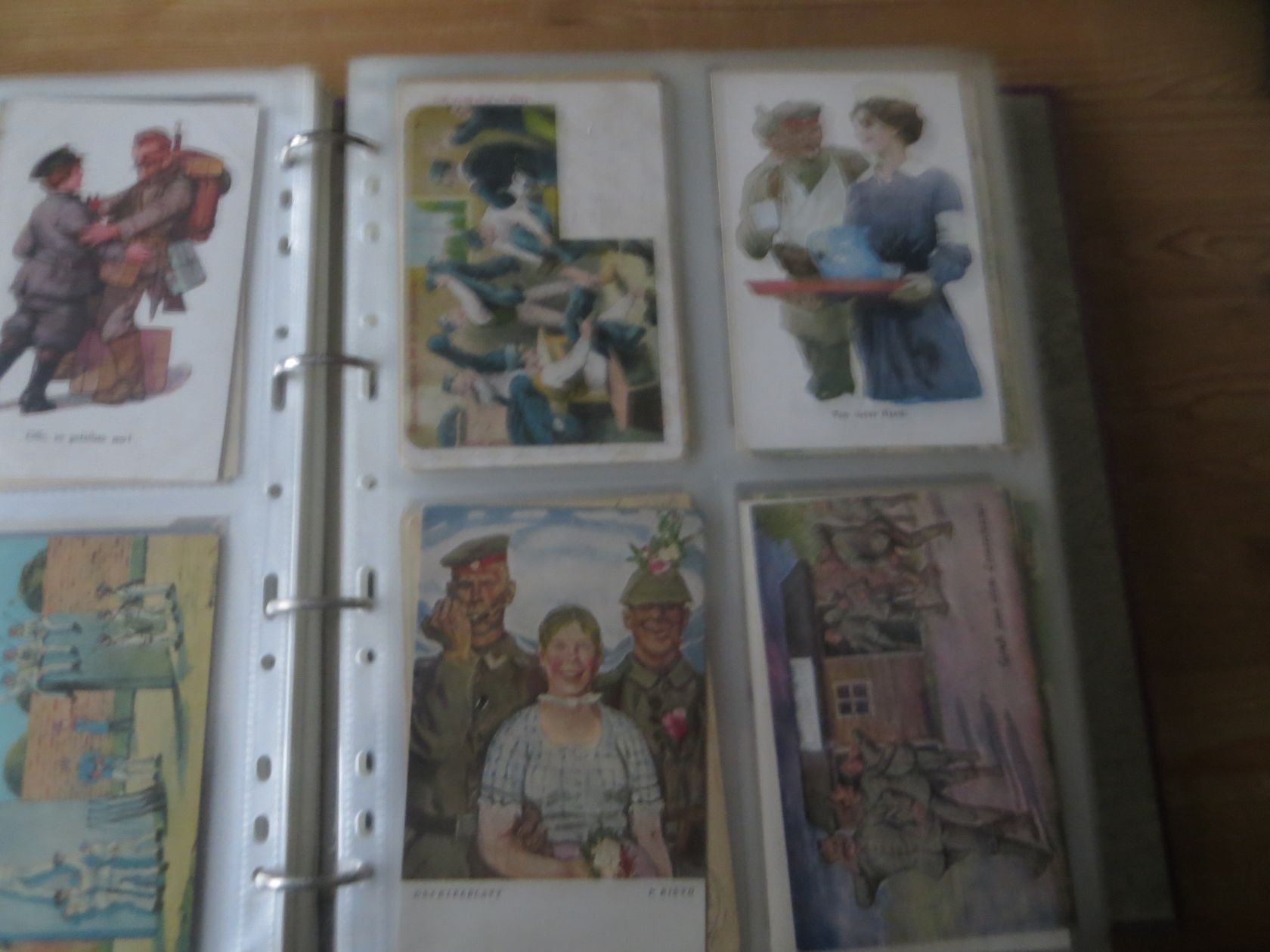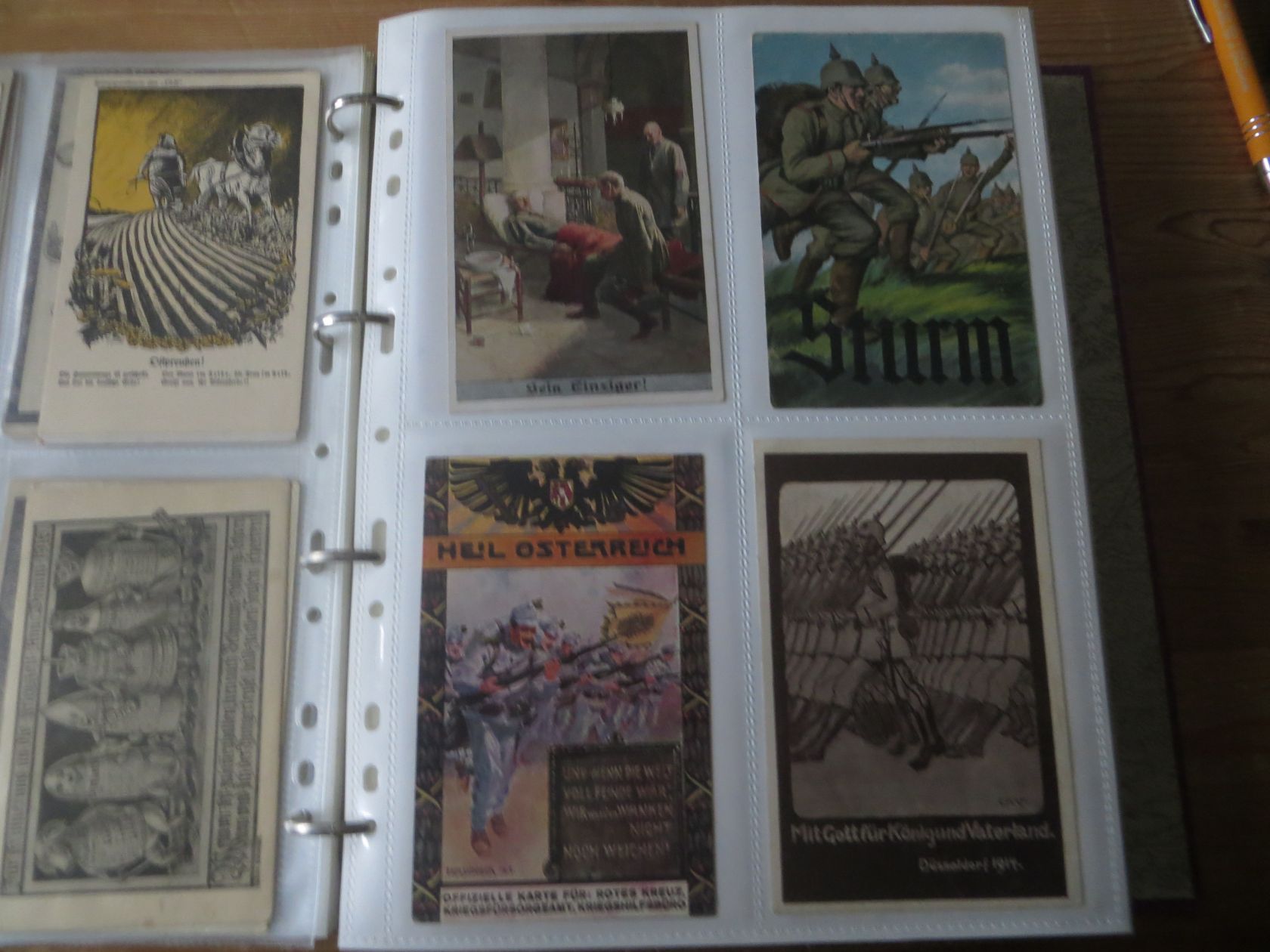 und div. Thematik, mit sehr vielen signierten Künstler - Karten, starke Propaganda auch Anti Russland, meist tolle Farbkarten, und auch Lithos, natürlich viel Feldpost und sicher in diesem Bereich Stempel - Fundgrube, eine tolle Serie Karten aus Frankreich in ungewöhnlich schöner Farbgestaltung handcoloriert !- dann auch etwas Humor, schöne Serie signiert B.W. Brynolf Wennerberg Kriegspostkarten mit alleine 28 Karten, Karten von Paul Hey, Karten Ludendorf Spende, und Kriegsanleihe, und vieles andere mehr! Schönes, interessantes und ansprechendes Objekt, mit geschichtlichen Hintergurnd, mit wohl nur ausgesuchten Karten. Nicht die übliche Masse! Ein immer wieder schönes und gesuchtes Sammelgebiet. Und in sehr guter Gesamterhaltung! Ideal zum Auflösen!