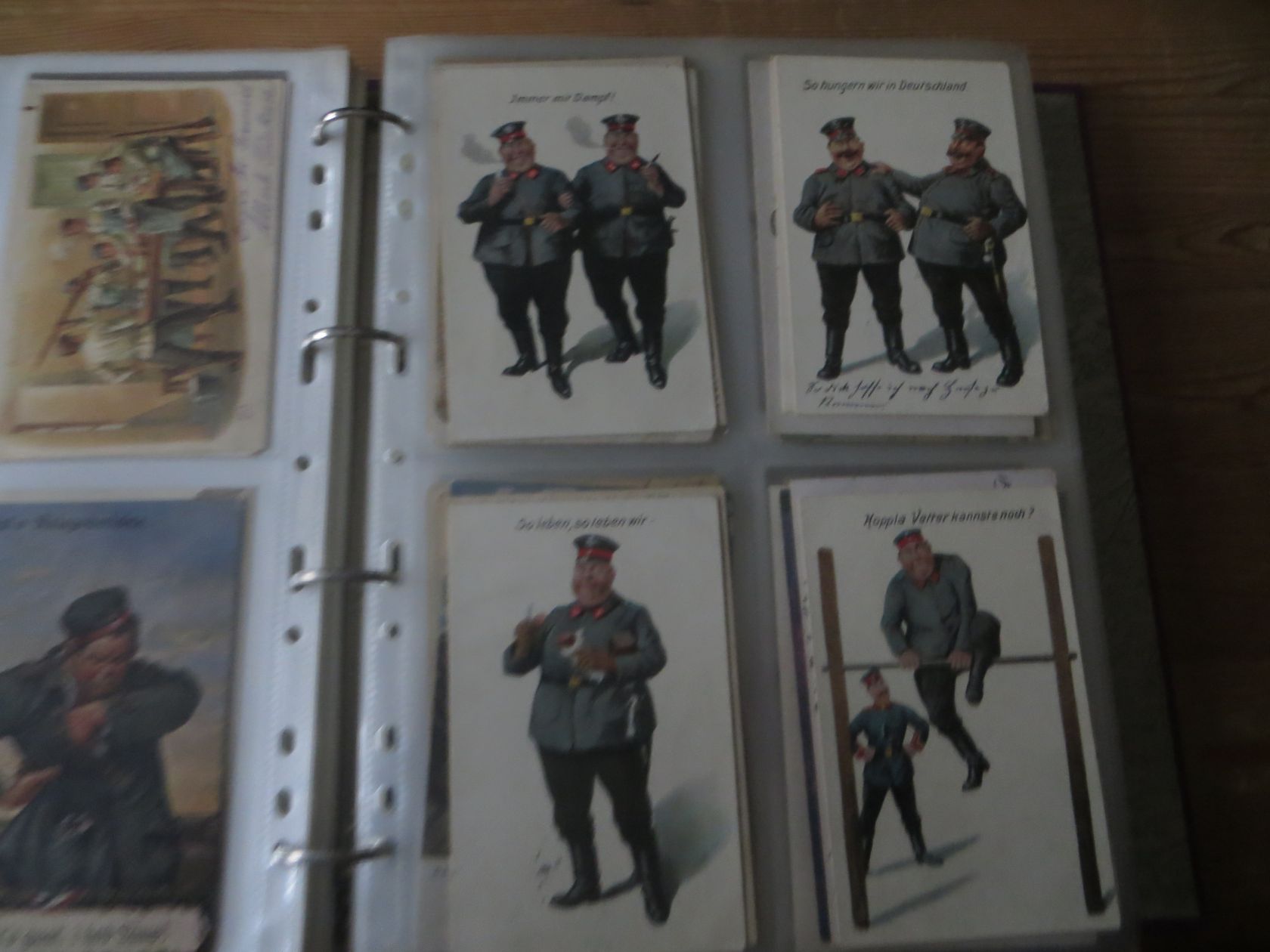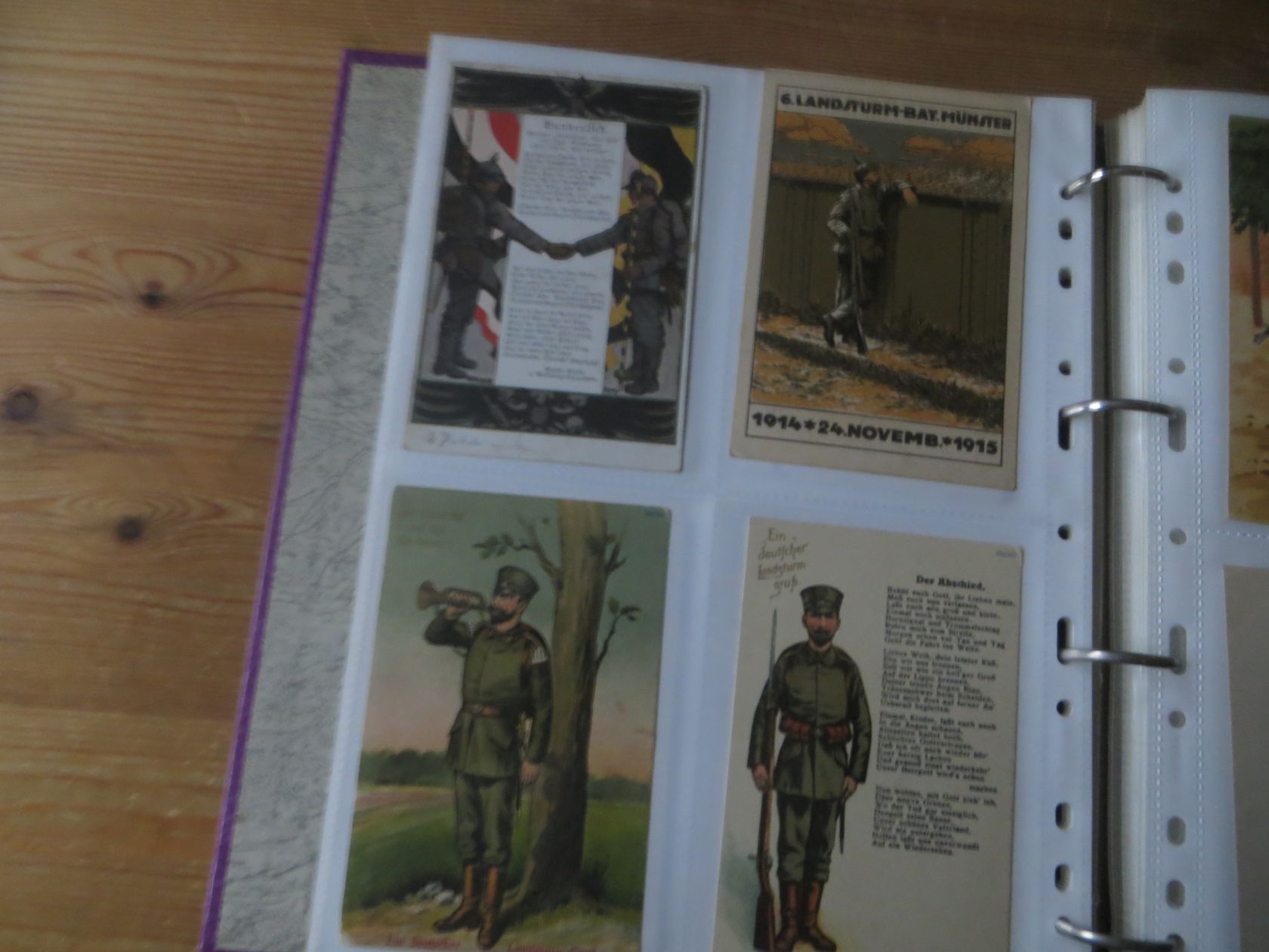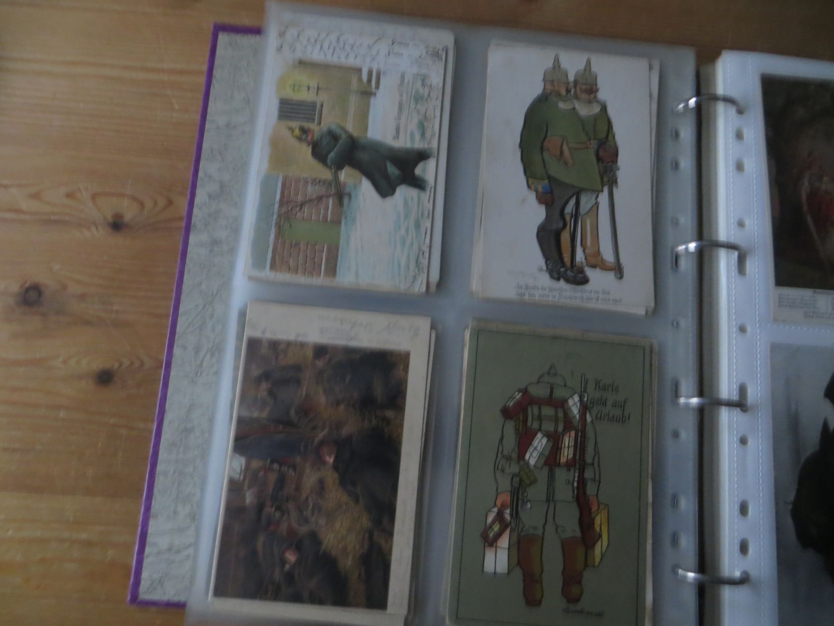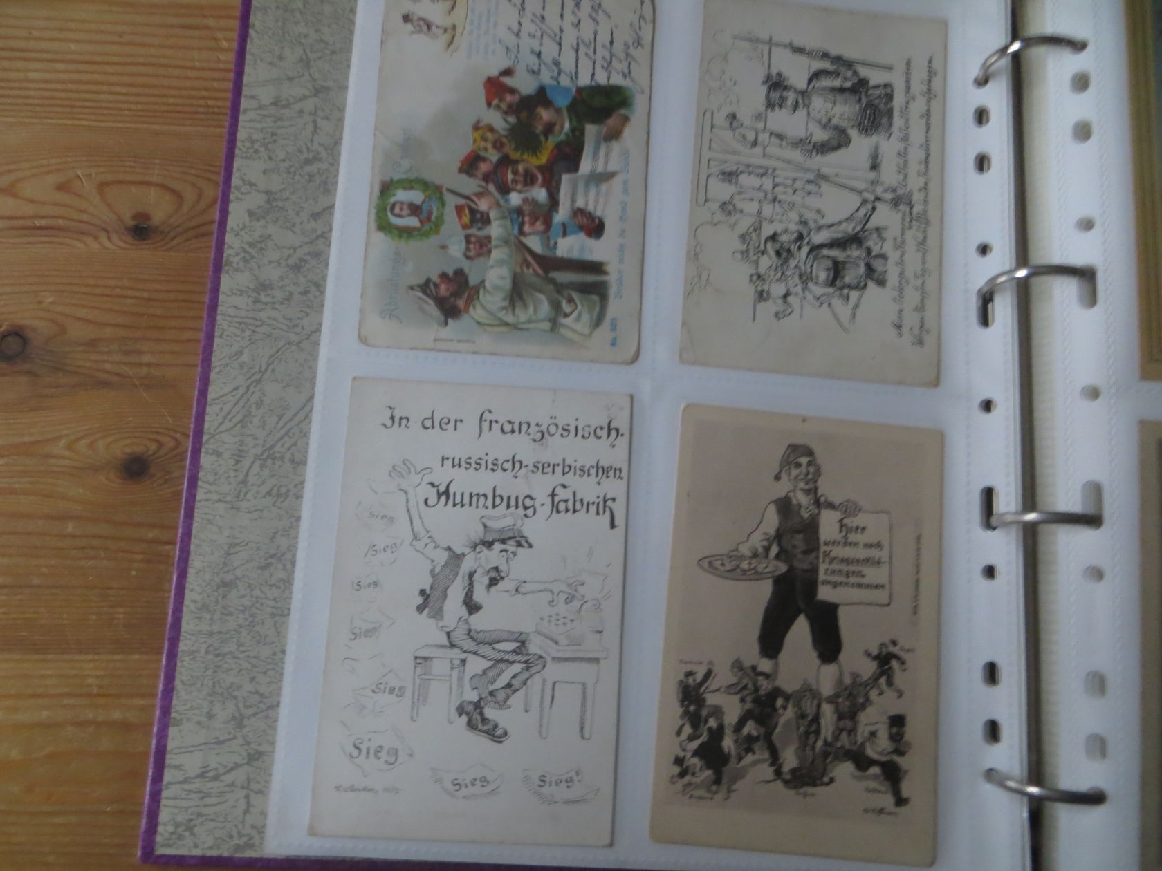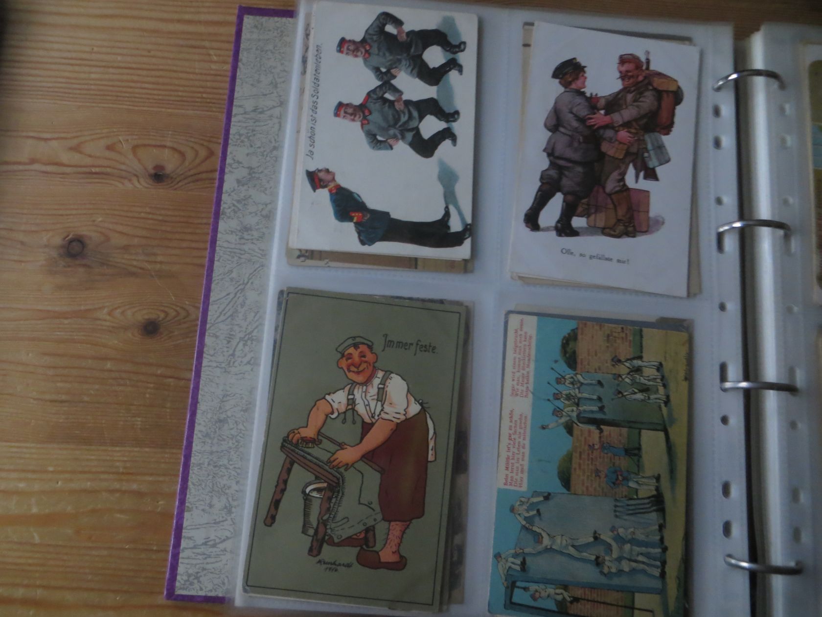und div. Thematik, mit sehr vielen signierten Künstler - Karten, starke Propaganda auch Anti Russland, meist tolle Farbkarten, und auch Lithos, natürlich viel Feldpost und sicher in diesem Bereich Stempel - Fundgrube, eine tolle Serie Karten aus Frankreich in ungewöhnlich schöner Farbgestaltung handcoloriert !- dann auch etwas Humor, schöne Serie signiert B.W. Brynolf Wennerberg Kriegspostkarten mit alleine 28 Karten, Karten von Paul Hey, Karten Ludendorf Spende, und Kriegsanleihe, und vieles andere mehr! Schönes, interessantes und ansprechendes Objekt, mit geschichtlichen Hintergurnd, mit wohl nur ausgesuchten Karten. Nicht die übliche Masse! Ein immer wieder schönes und gesuchtes Sammelgebiet. Und in sehr guter Gesamterhaltung! Ideal zum Auflösen!