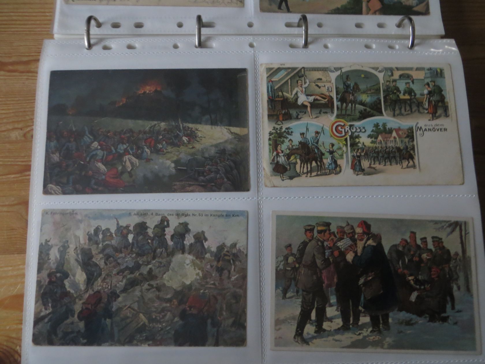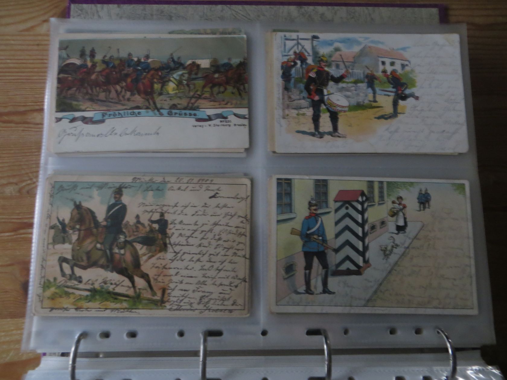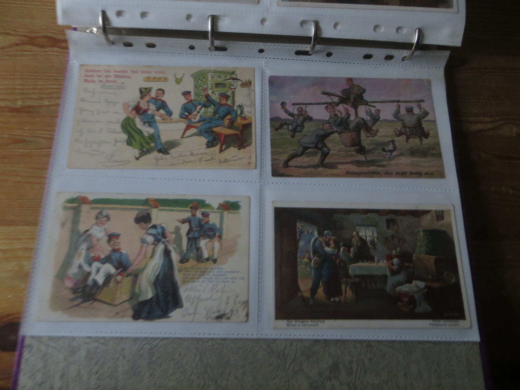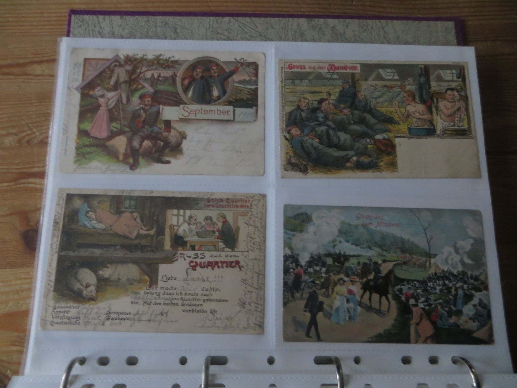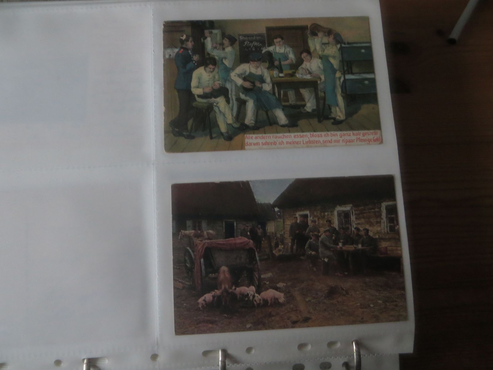 und div. Thematik, mit sehr vielen signierten Künstler - Karten, starke Propaganda auch Anti Russland, meist tolle Farbkarten, und auch Lithos, natürlich viel Feldpost und sicher in diesem Bereich Stempel - Fundgrube, eine tolle Serie Karten aus Frankreich in ungewöhnlich schöner Farbgestaltung handcoloriert !- dann auch etwas Humor, schöne Serie signiert B.W. Brynolf Wennerberg Kriegspostkarten mit alleine 28 Karten, Karten von Paul Hey, Karten Ludendorf Spende, und Kriegsanleihe, und vieles andere mehr! Schönes, interessantes und ansprechendes Objekt, mit geschichtlichen Hintergurnd, mit wohl nur ausgesuchten Karten. Nicht die übliche Masse! Ein immer wieder schönes und gesuchtes Sammelgebiet. Und in sehr guter Gesamterhaltung! Ideal zum Auflösen!