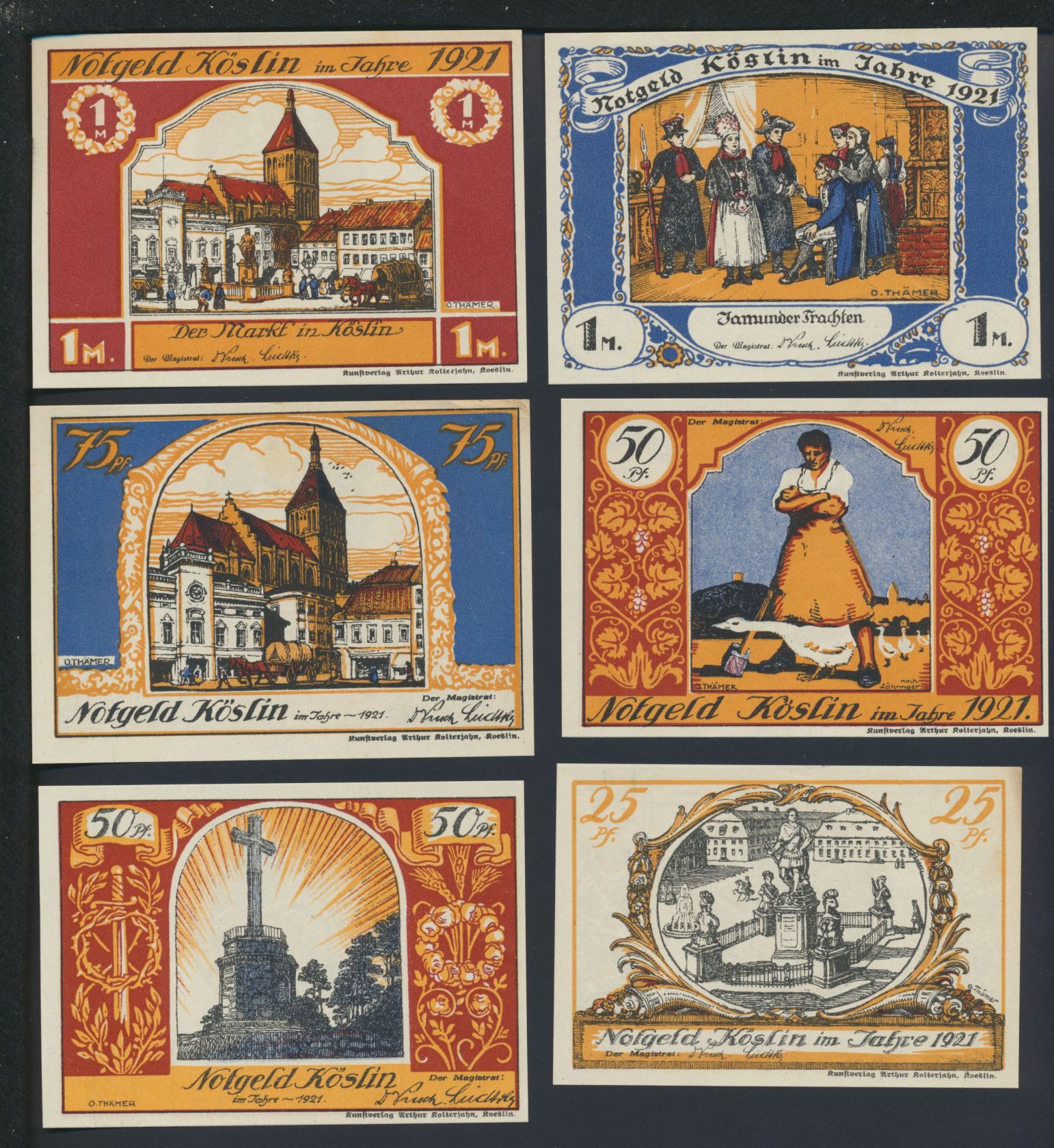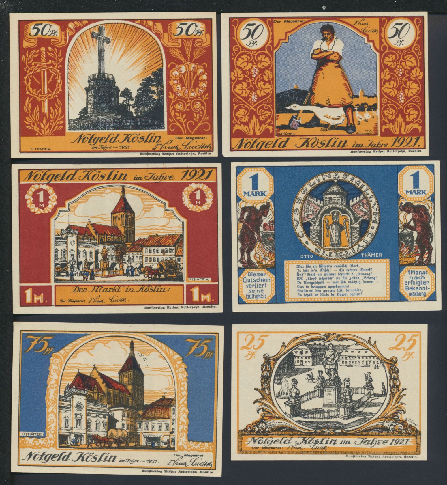 Lot 12 Geldscheine Banknoten verschiedene Werte Notgeld Köslin 1921