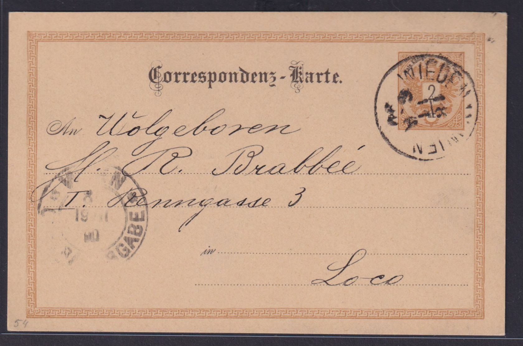 Österreich Ganzsache 2 Kreuzer ab Wieden Wien 18.11.1890