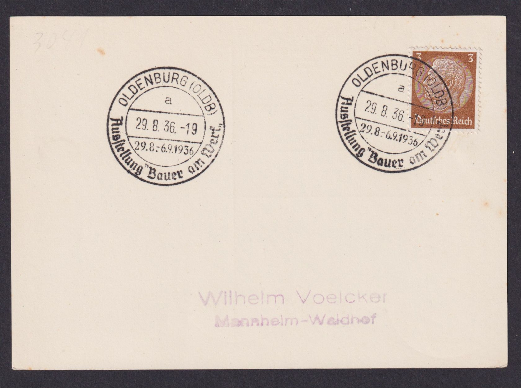 Oldenburg Niedersachsen Deutsches Reich Karte SST Bauer am Werk 29.08. bis