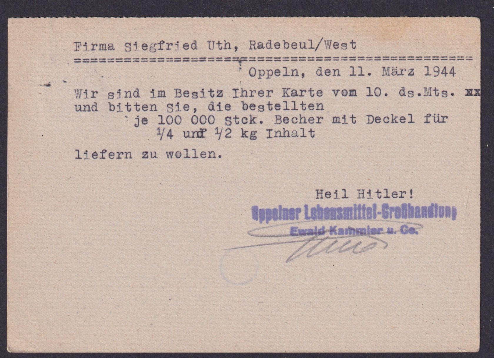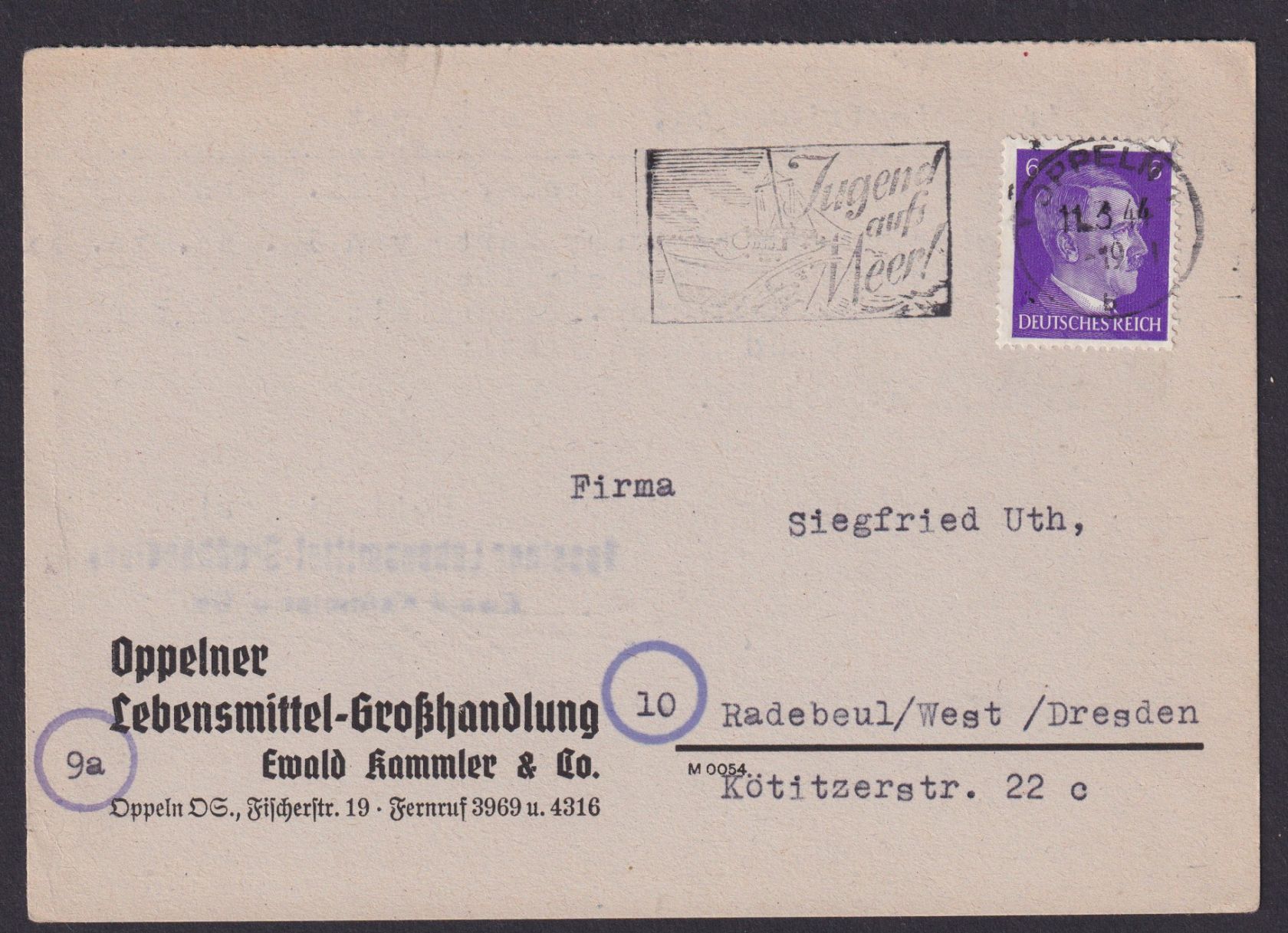 Jugend aufs Meer n. Radebeul 11.03.1944 Reklame Oppelner Lebensmittel Grosshandlung