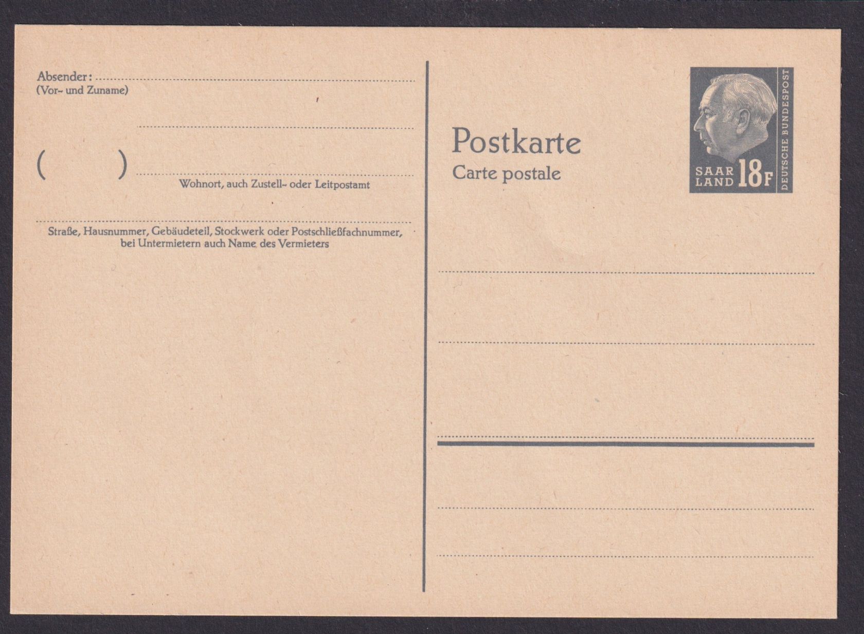 Saarland Ganzsache P 49 18 F. Heuss Luxus Ausgabe 1957 Kat.-Wert 14,00