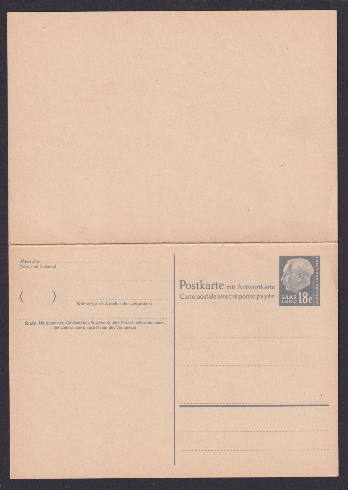 Saarland Ganzsache P 52 18 F. Heuss frage & Antwort Luxus 1957 Kat.-Wert 20,00