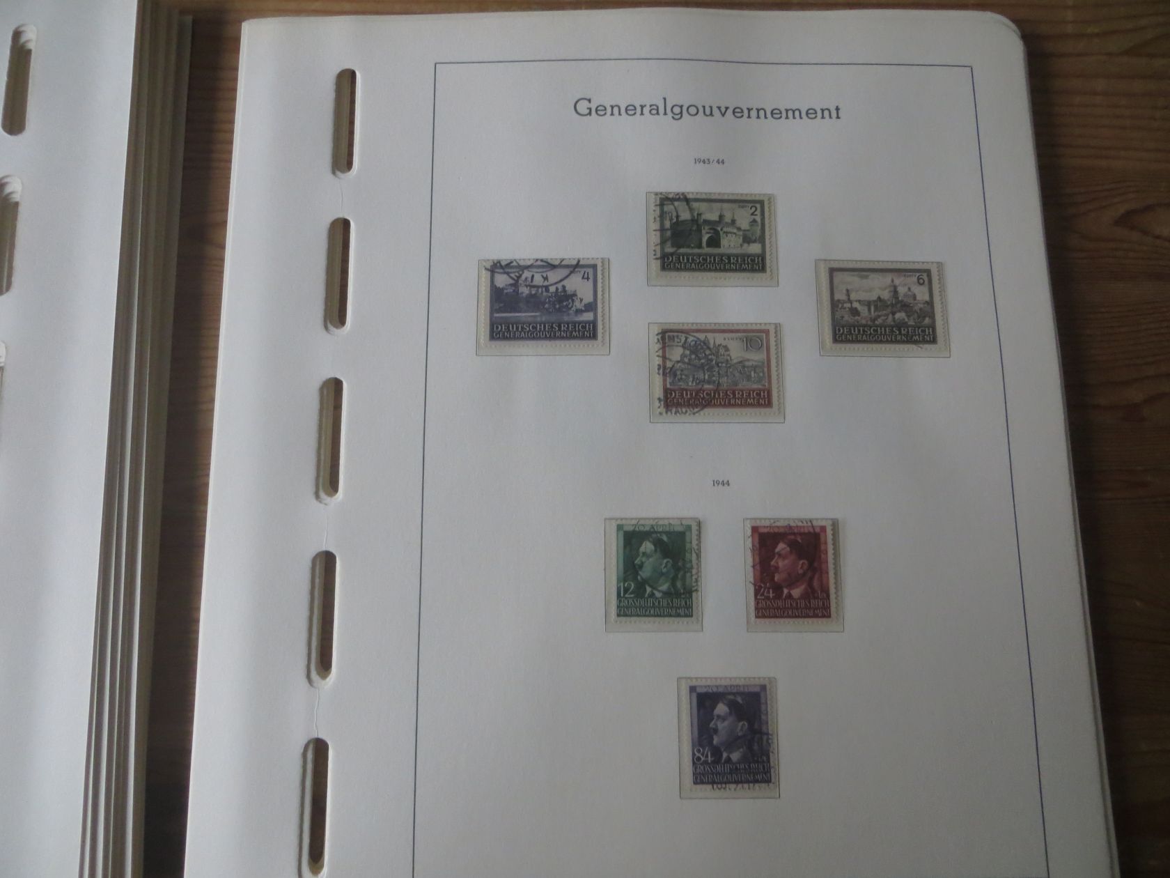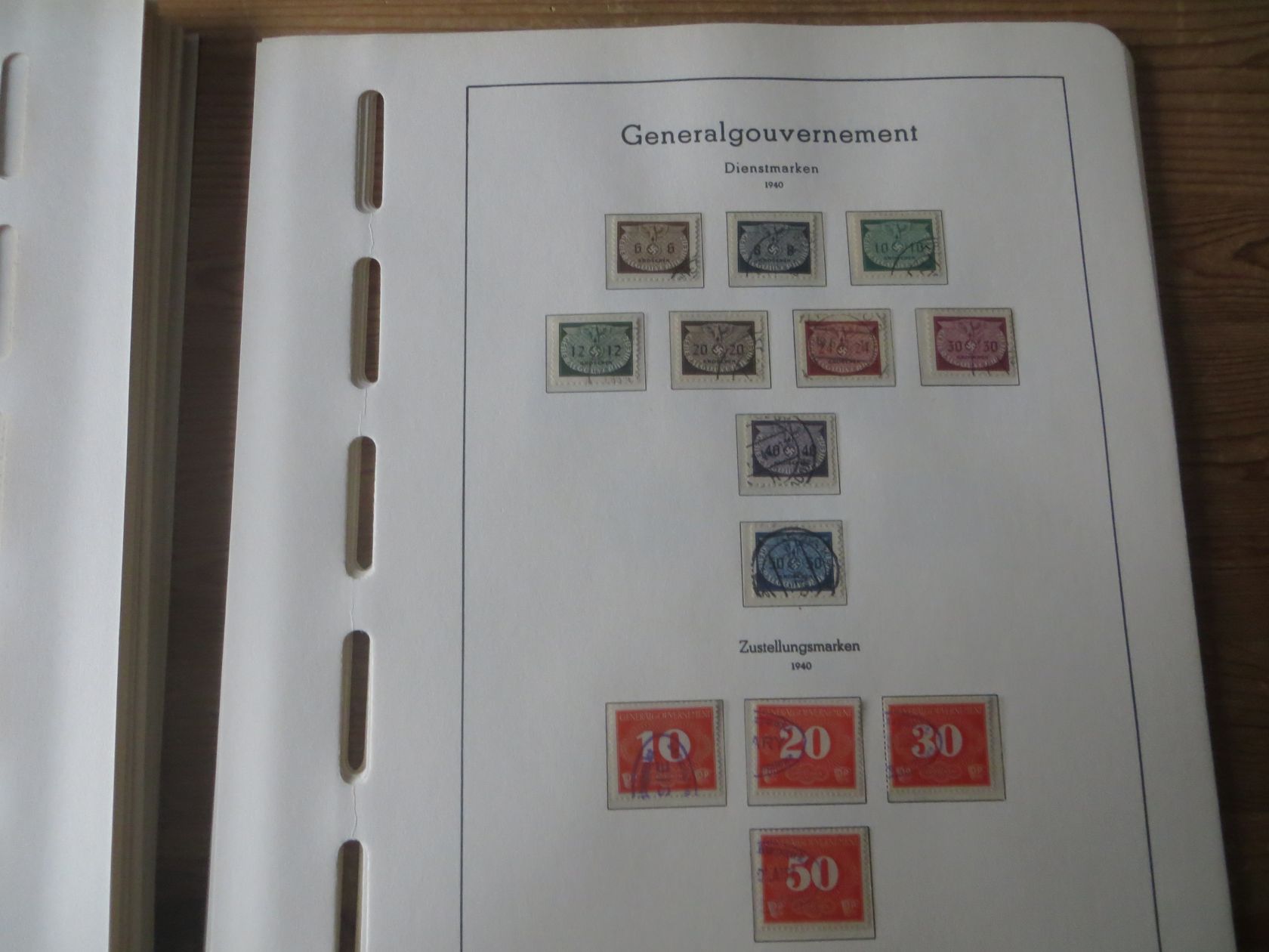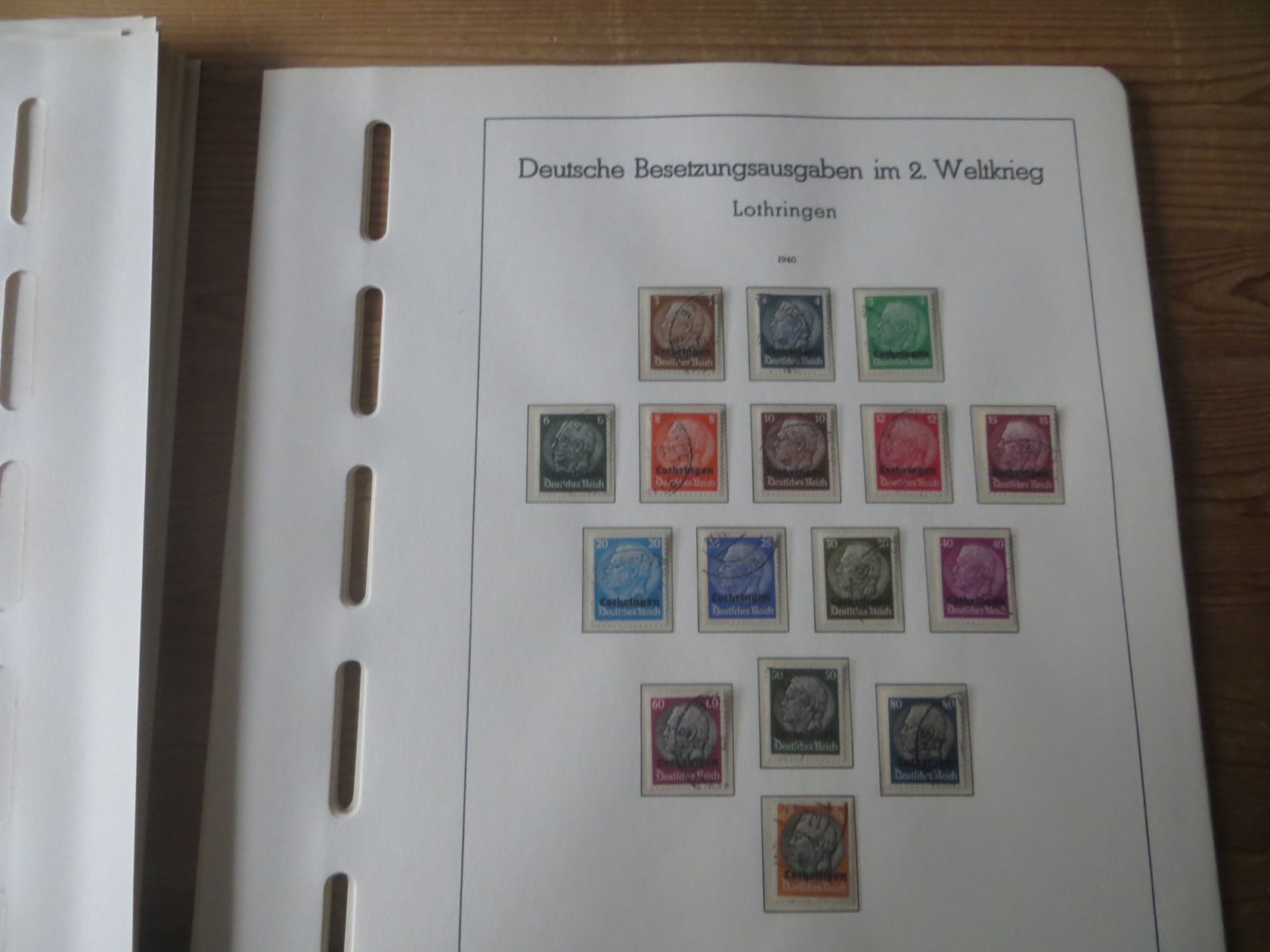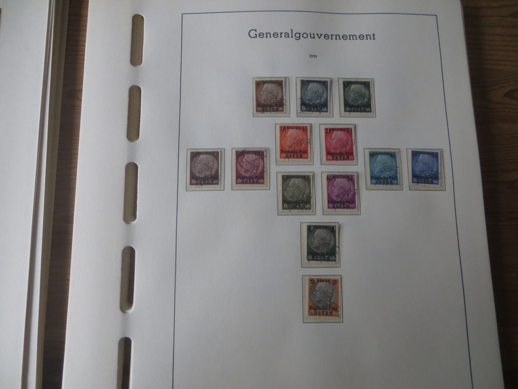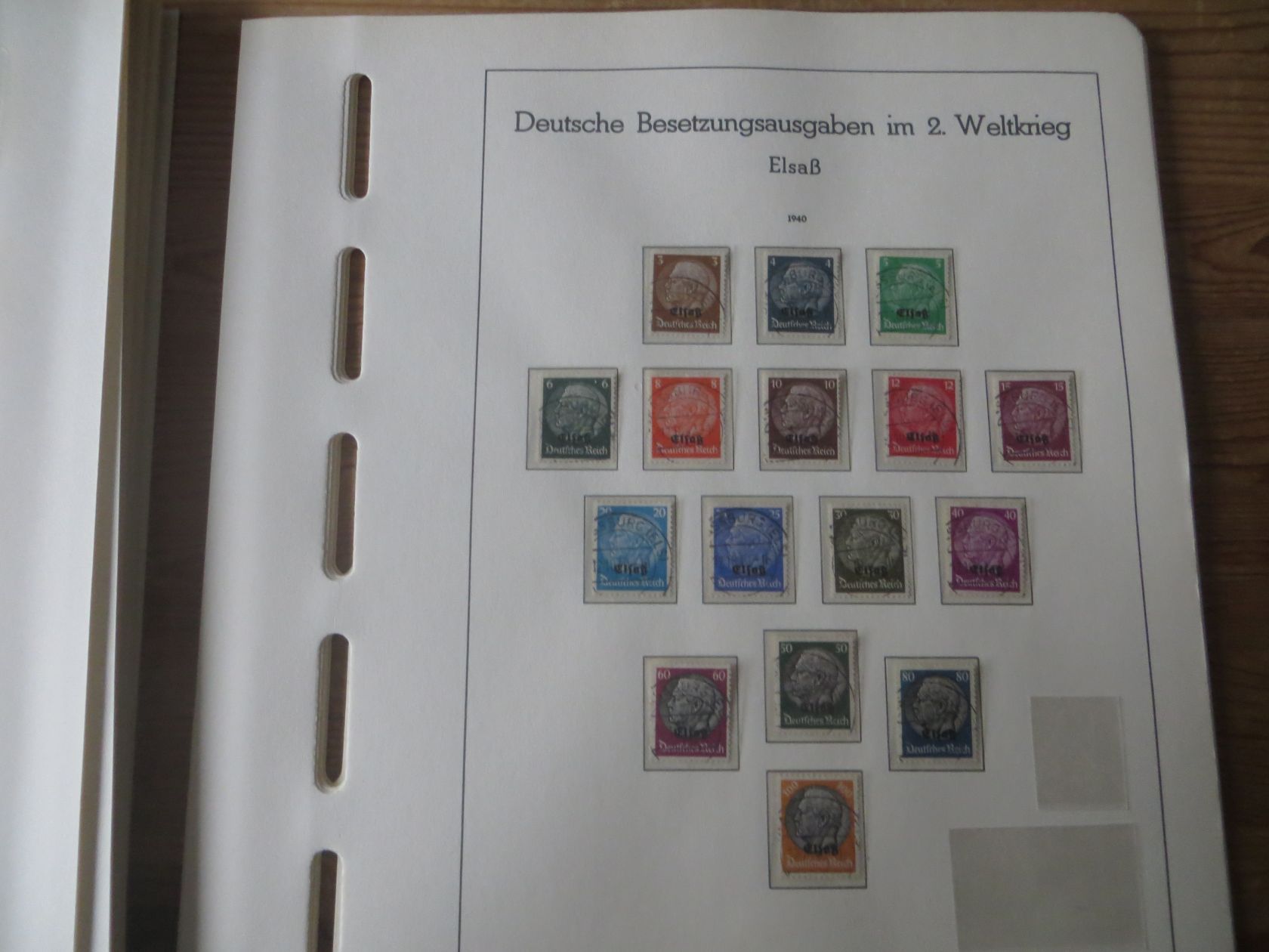 Gebiete Allenstein, Marienwerder, Oberschlesien, Schleswig, Böhmen & Mähren (Höchstwert 19 geprüft Gilbert), Generalgouvernement, Elsaß, Lothringen, Luxemburg, Ostland, Ukraine und Estland. Gemäß den Vordrucken schon zeimlich komplett! Alles sehr sauber auf Leuchtturm Vordruck Blättern angelegt. Wie alle Sammlungen dieses Einlieferes vermutlich zu ca. 99% gute Erhaltung !!! Wir haben alle besseren überprüft. Zubehörpreis heute rund 100,00 €!