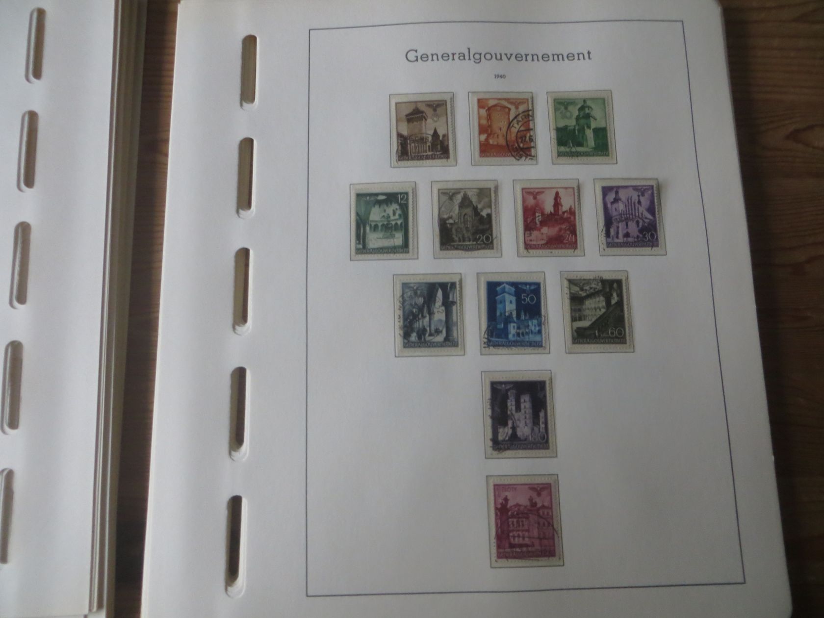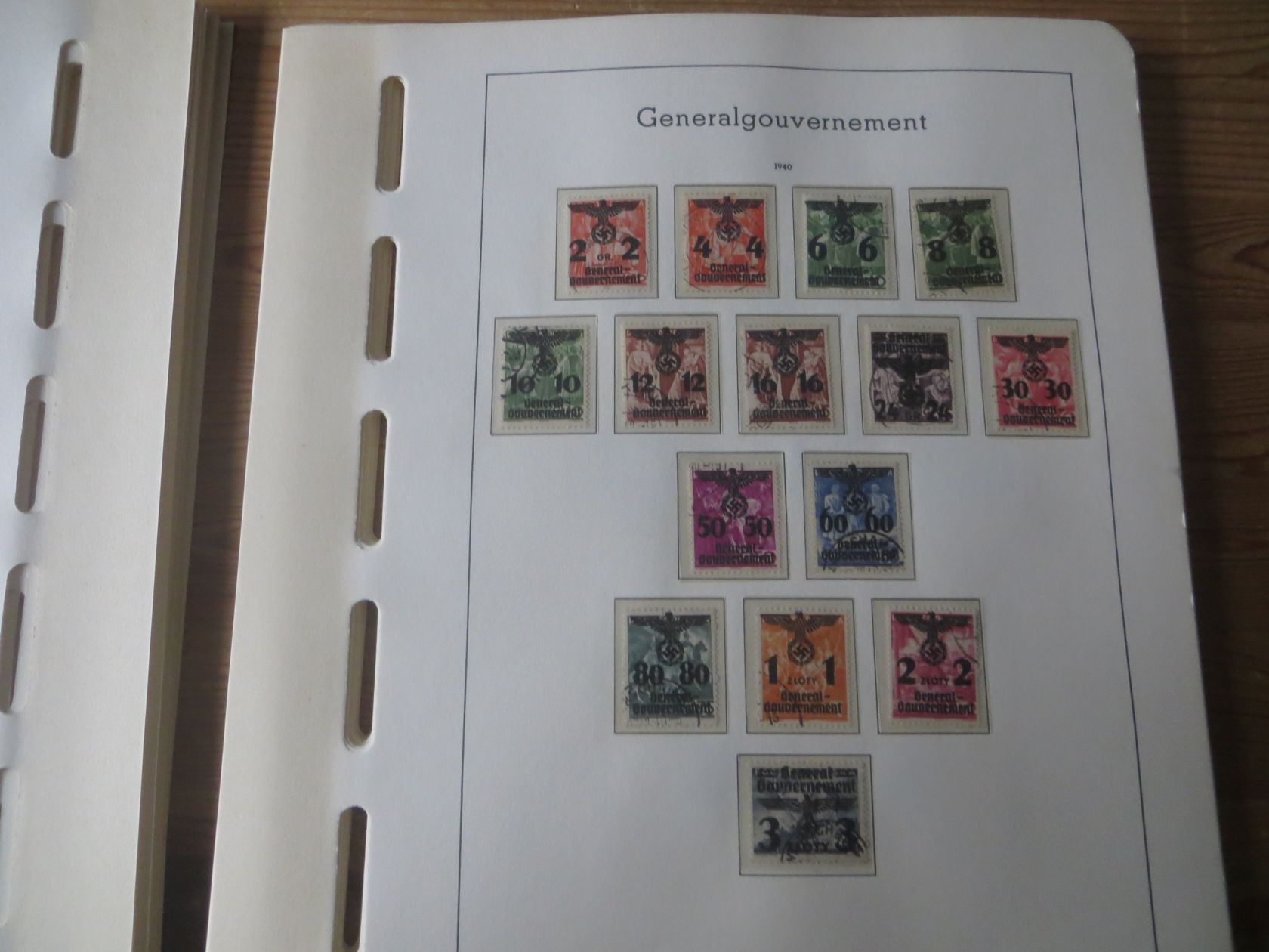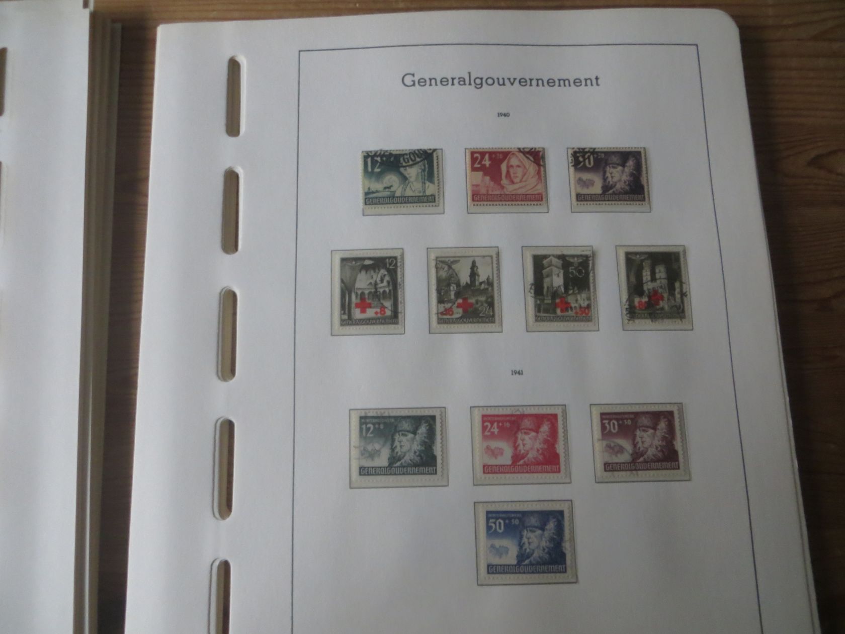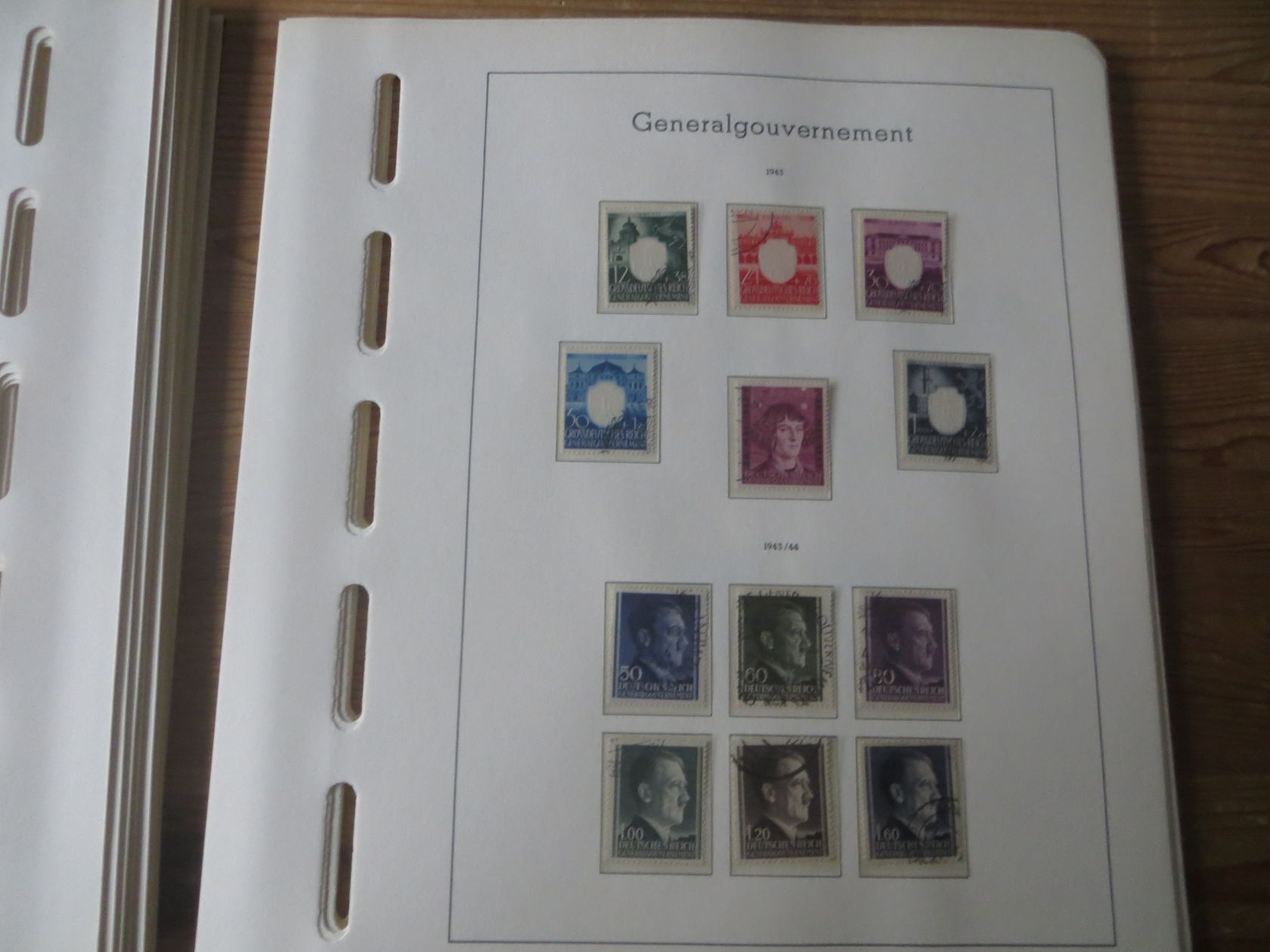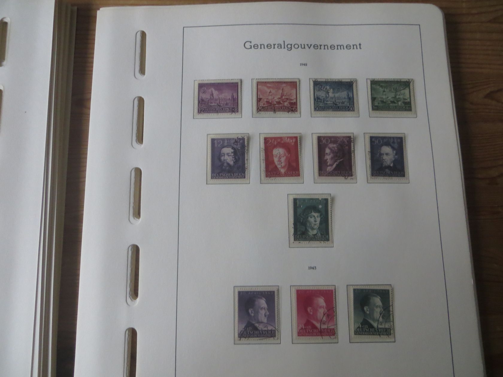 Gebiete Allenstein, Marienwerder, Oberschlesien, Schleswig, Böhmen & Mähren (Höchstwert 19 geprüft Gilbert), Generalgouvernement, Elsaß, Lothringen, Luxemburg, Ostland, Ukraine und Estland. Gemäß den Vordrucken schon zeimlich komplett! Alles sehr sauber auf Leuchtturm Vordruck Blättern angelegt. Wie alle Sammlungen dieses Einlieferes vermutlich zu ca. 99% gute Erhaltung !!! Wir haben alle besseren überprüft. Zubehörpreis heute rund 100,00 €!