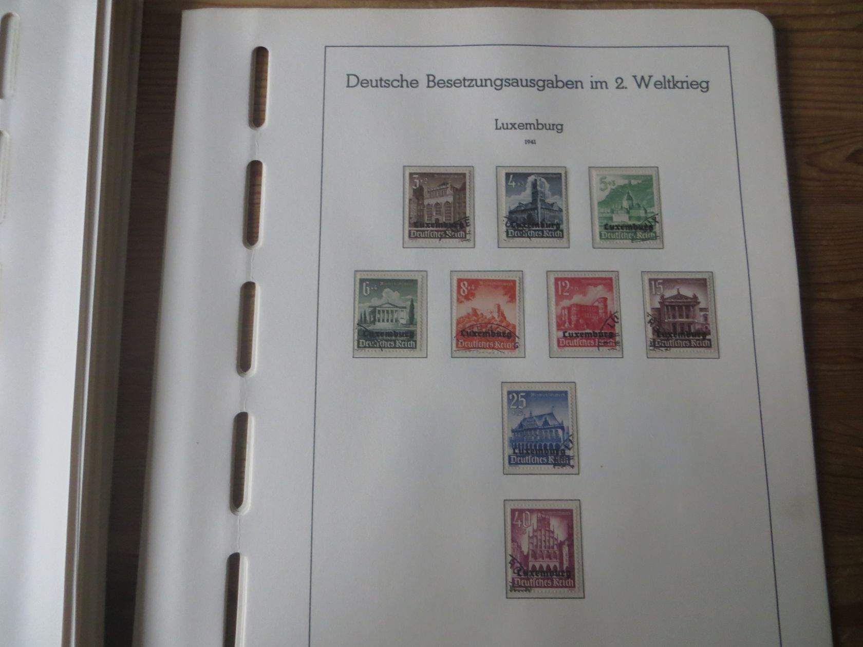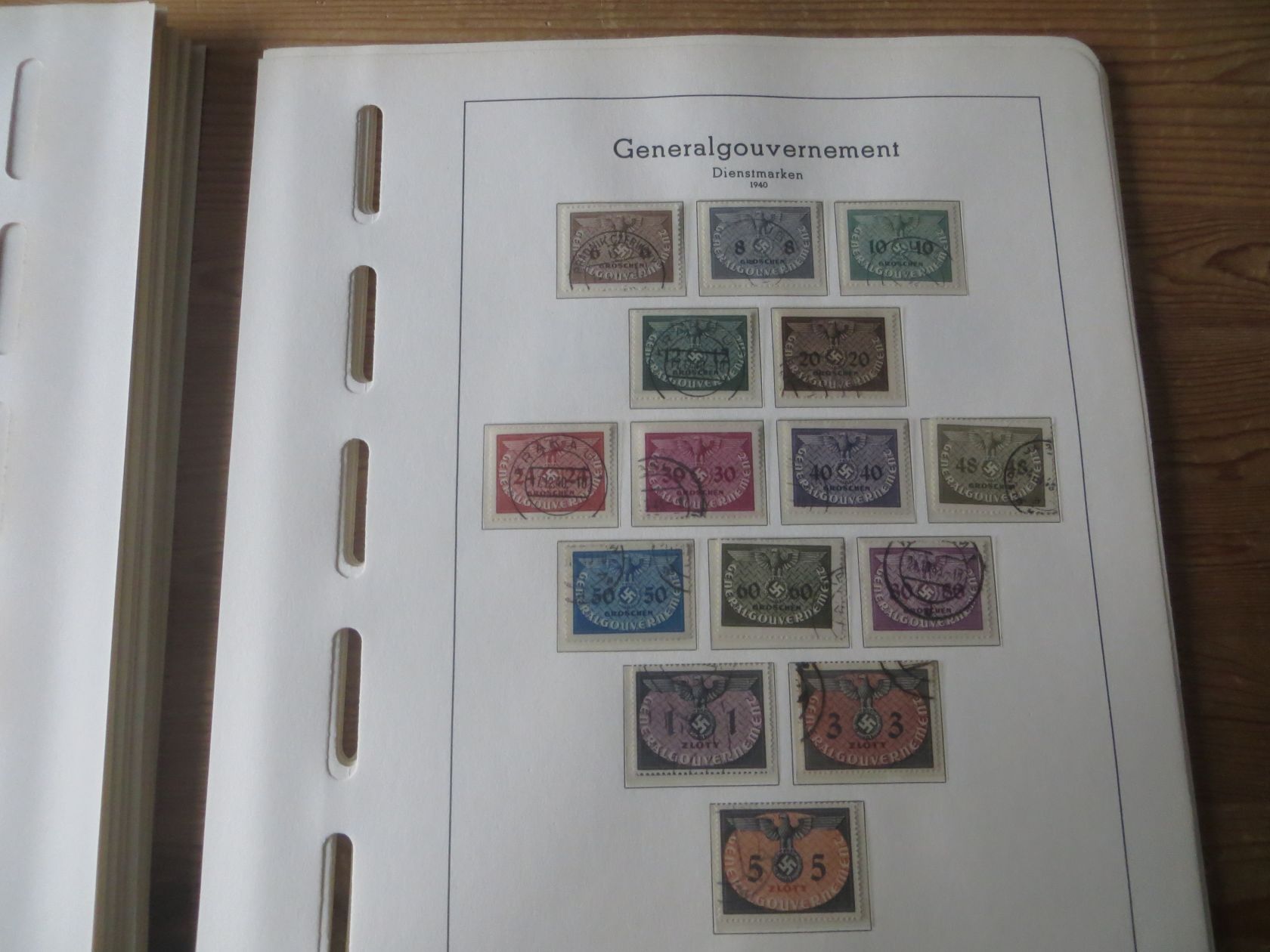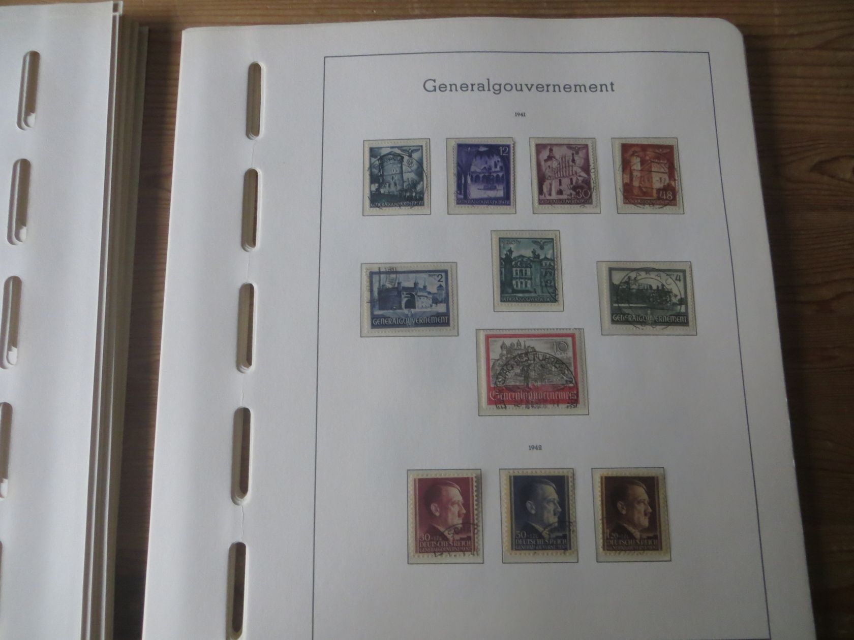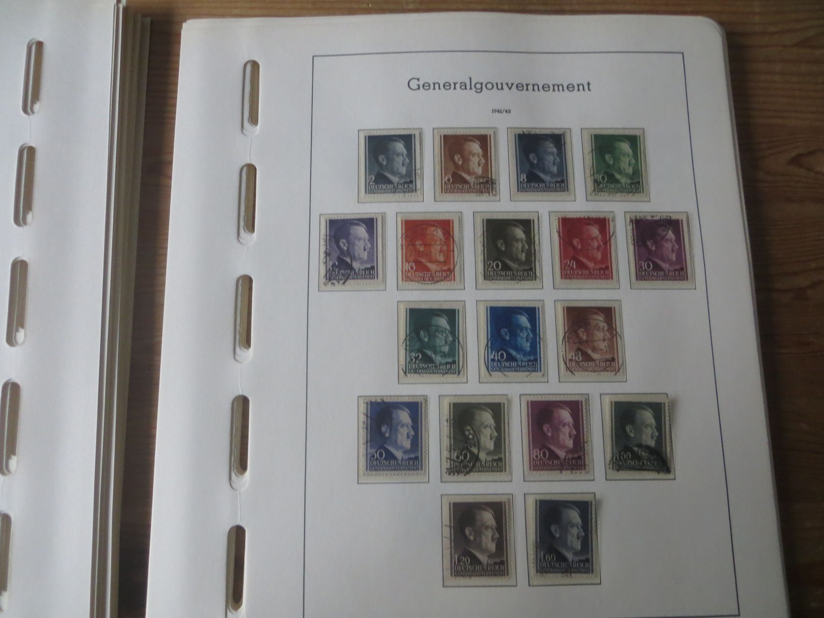 Gebiete Allenstein, Marienwerder, Oberschlesien, Schleswig, Böhmen & Mähren (Höchstwert 19 geprüft Gilbert), Generalgouvernement, Elsaß, Lothringen, Luxemburg, Ostland, Ukraine und Estland. Gemäß den Vordrucken schon zeimlich komplett! Alles sehr sauber auf Leuchtturm Vordruck Blättern angelegt. Wie alle Sammlungen dieses Einlieferes vermutlich zu ca. 99% gute Erhaltung !!! Wir haben alle besseren überprüft. Zubehörpreis heute rund 100,00 €!