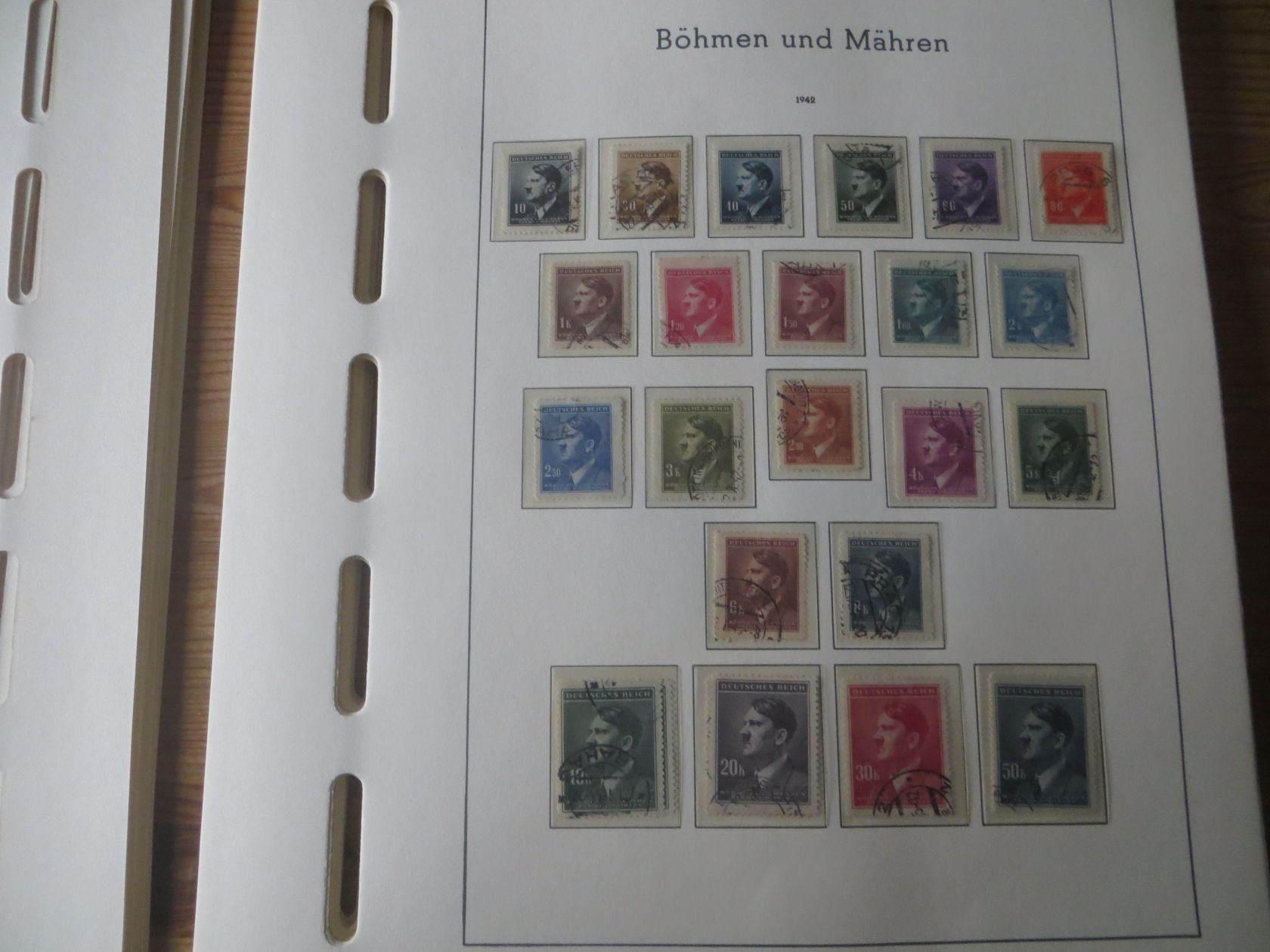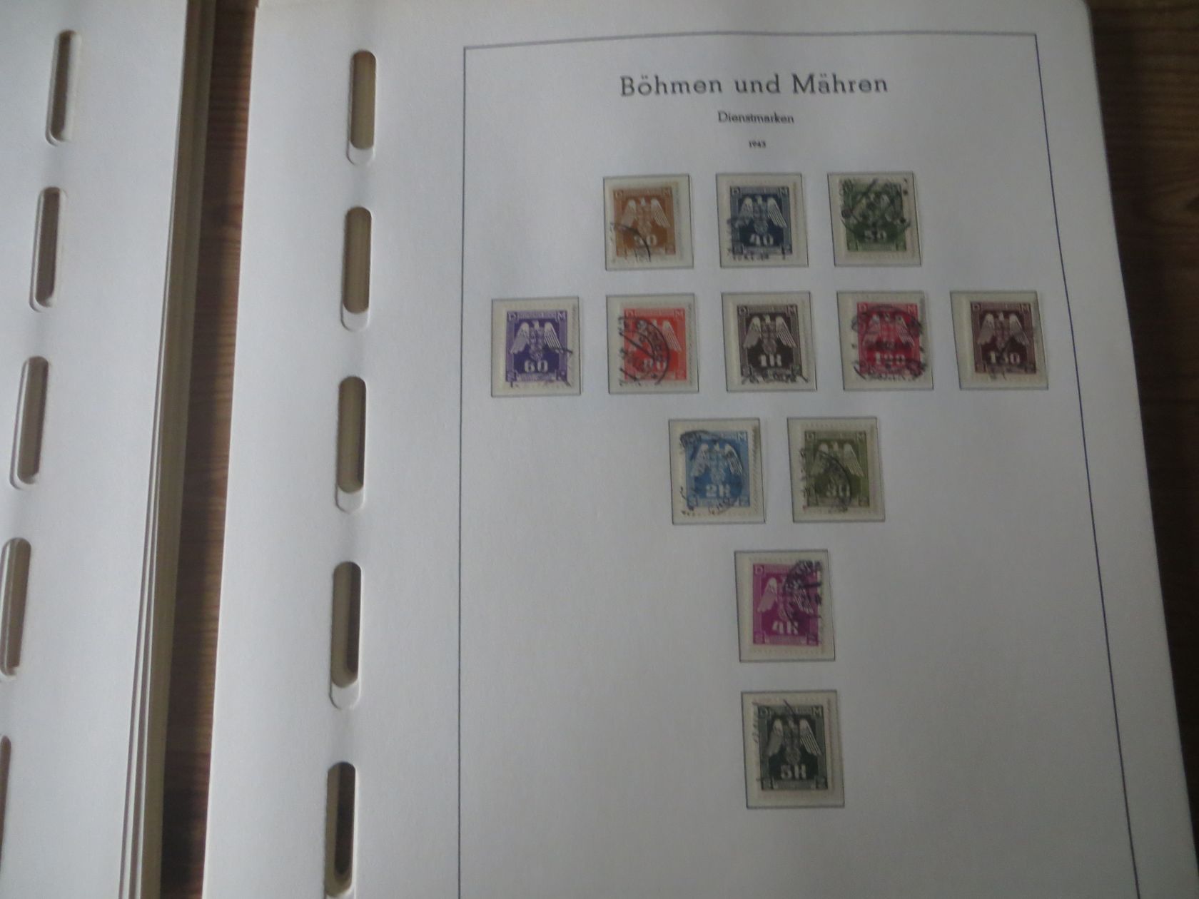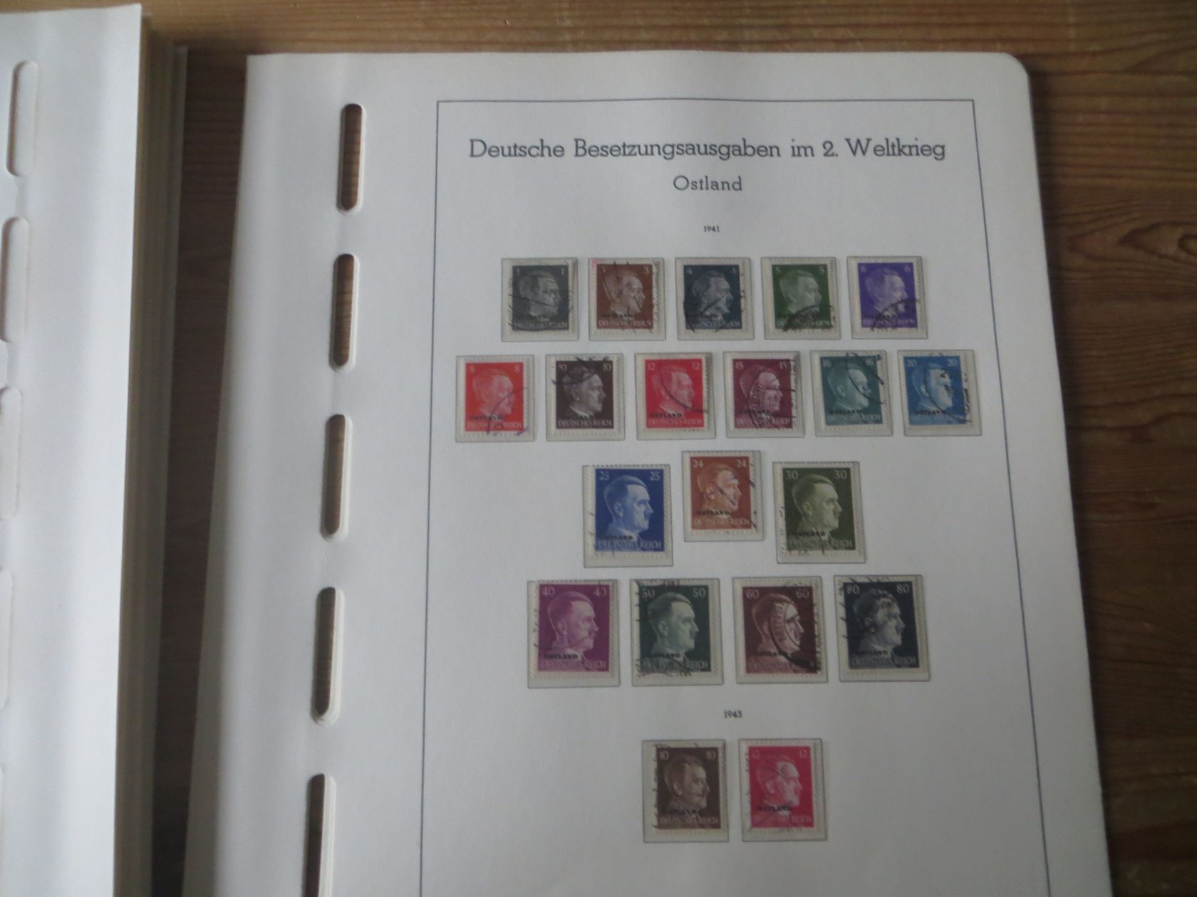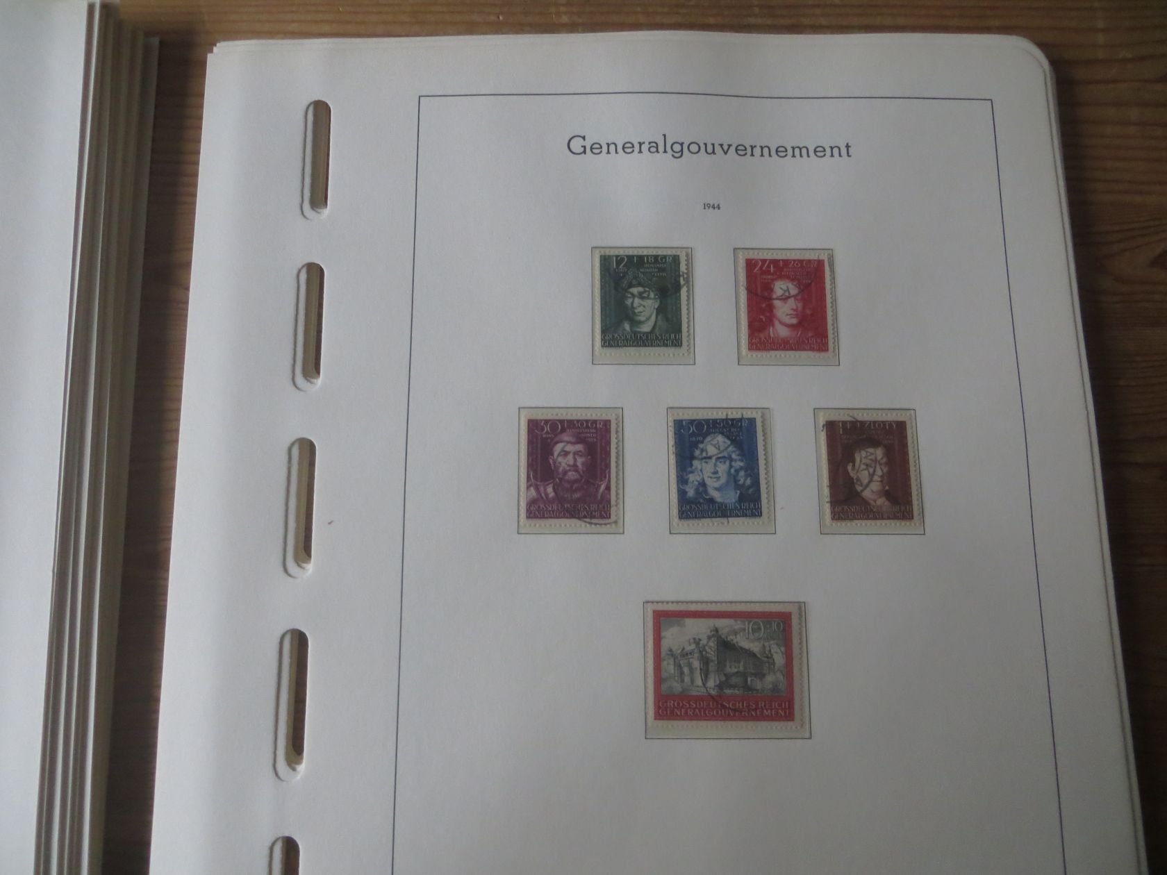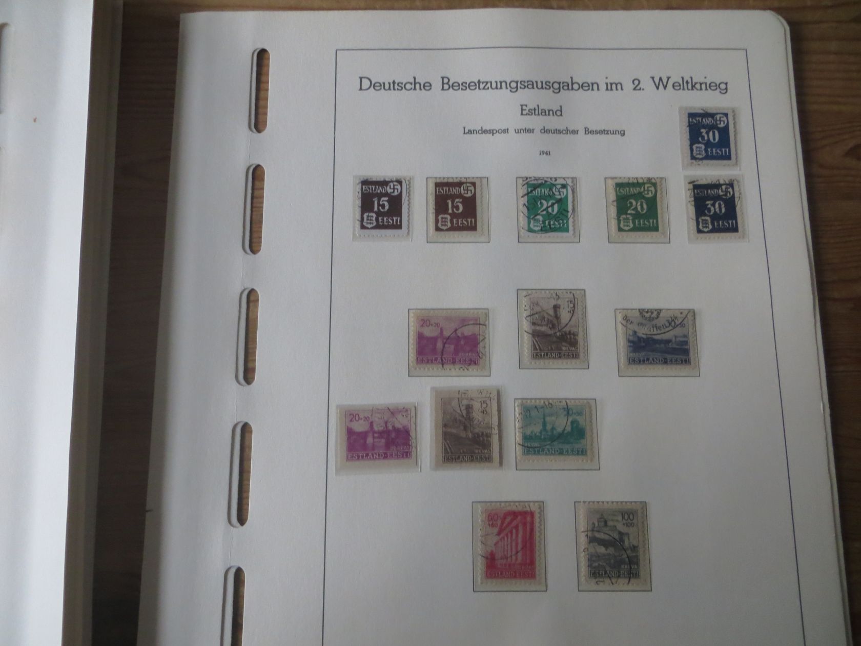 Gebiete Allenstein, Marienwerder, Oberschlesien, Schleswig, Böhmen & Mähren (Höchstwert 19 geprüft Gilbert), Generalgouvernement, Elsaß, Lothringen, Luxemburg, Ostland, Ukraine und Estland. Gemäß den Vordrucken schon zeimlich komplett! Alles sehr sauber auf Leuchtturm Vordruck Blättern angelegt. Wie alle Sammlungen dieses Einlieferes vermutlich zu ca. 99% gute Erhaltung !!! Wir haben alle besseren überprüft. Zubehörpreis heute rund 100,00 €!