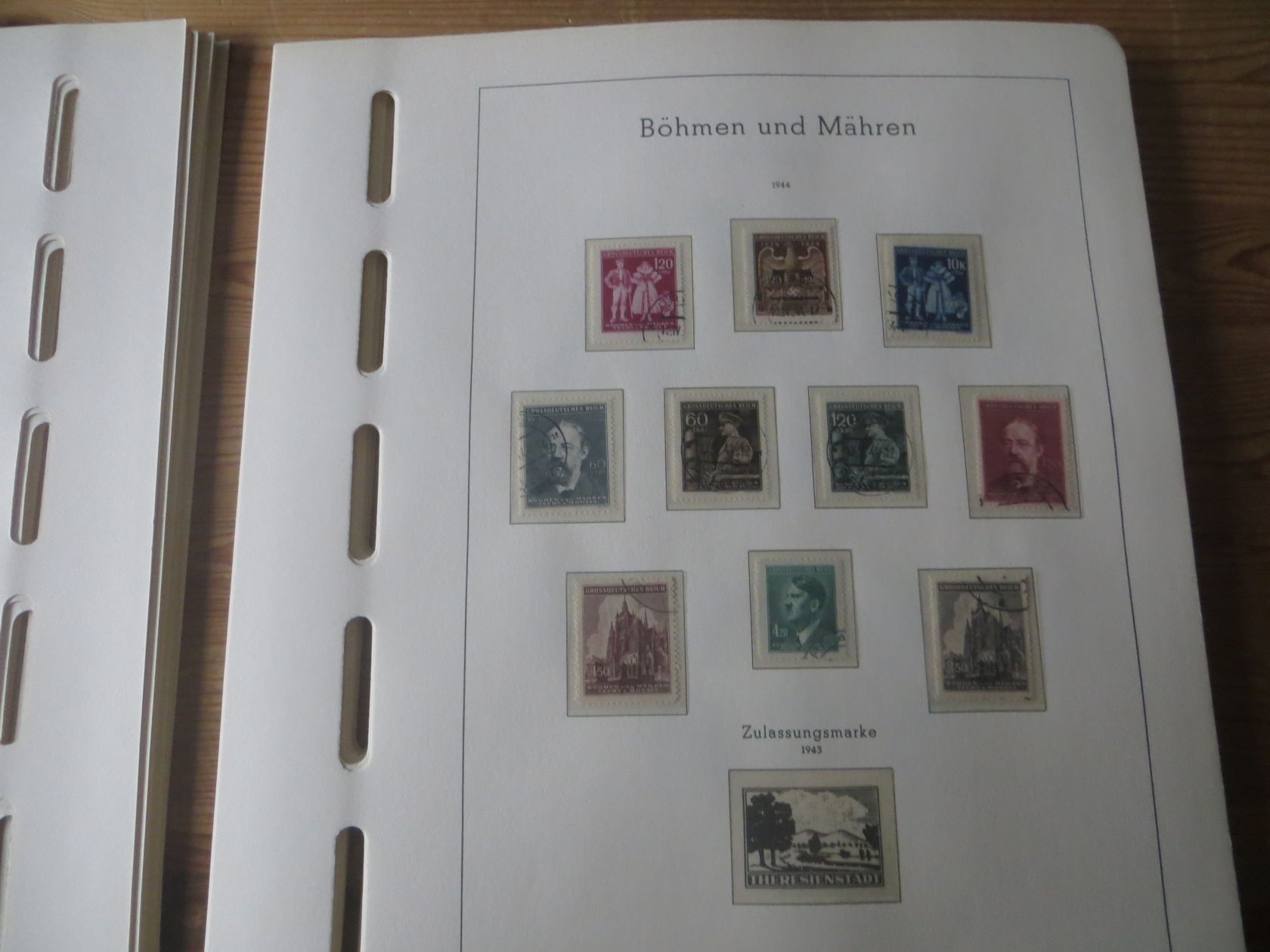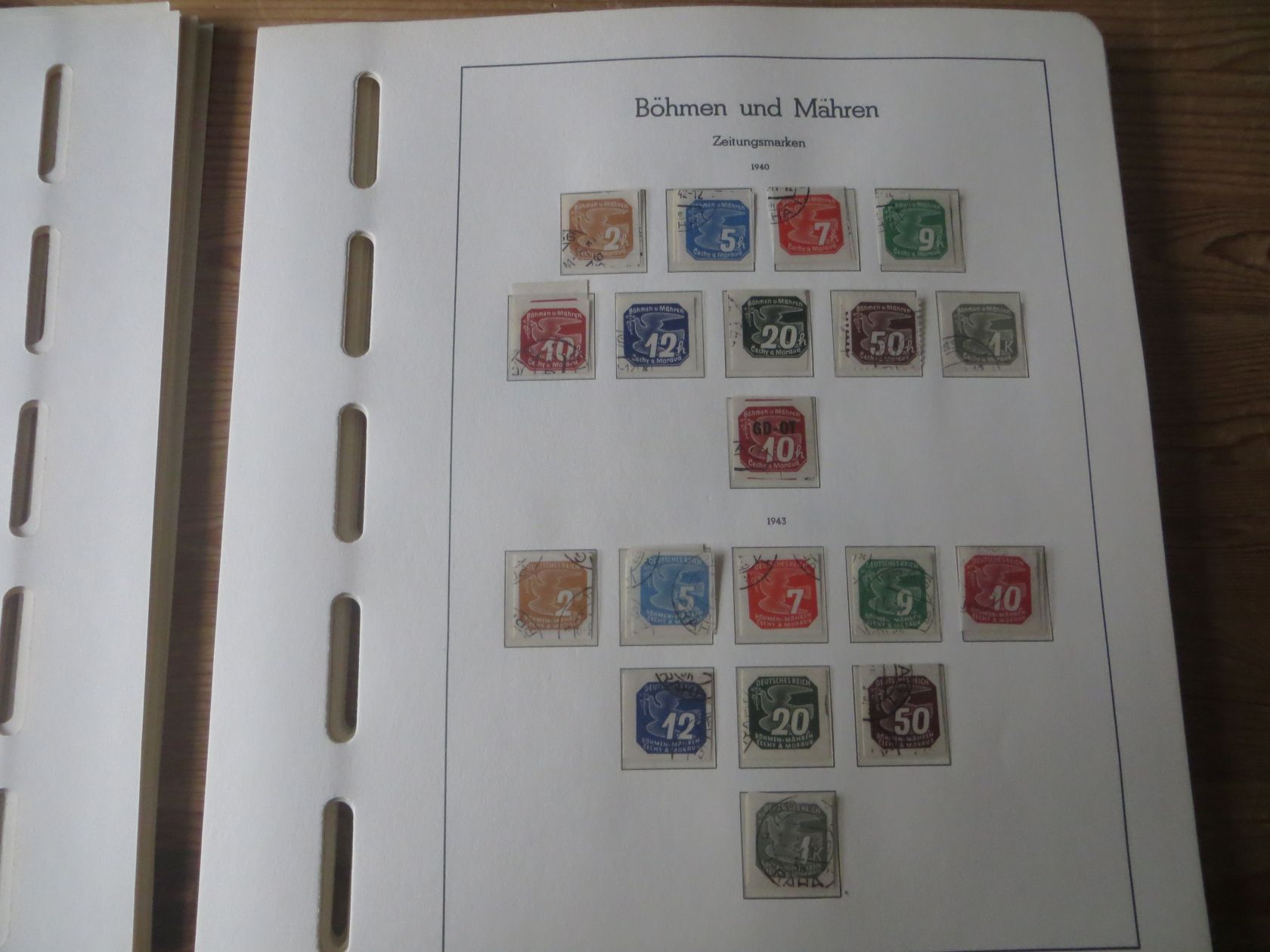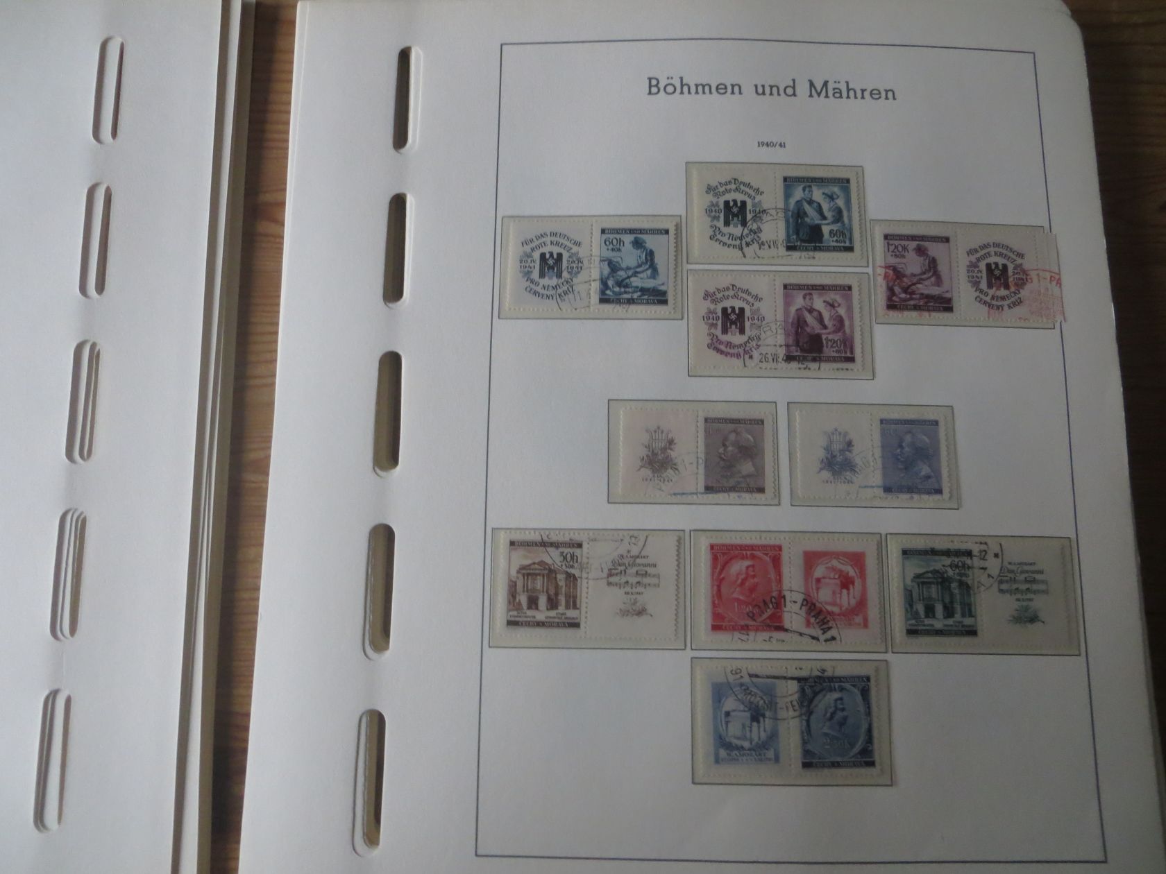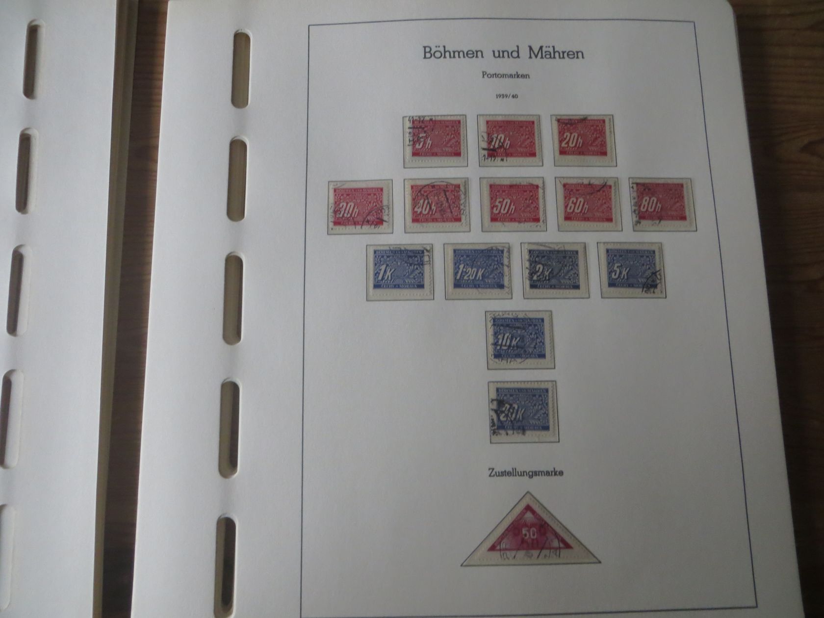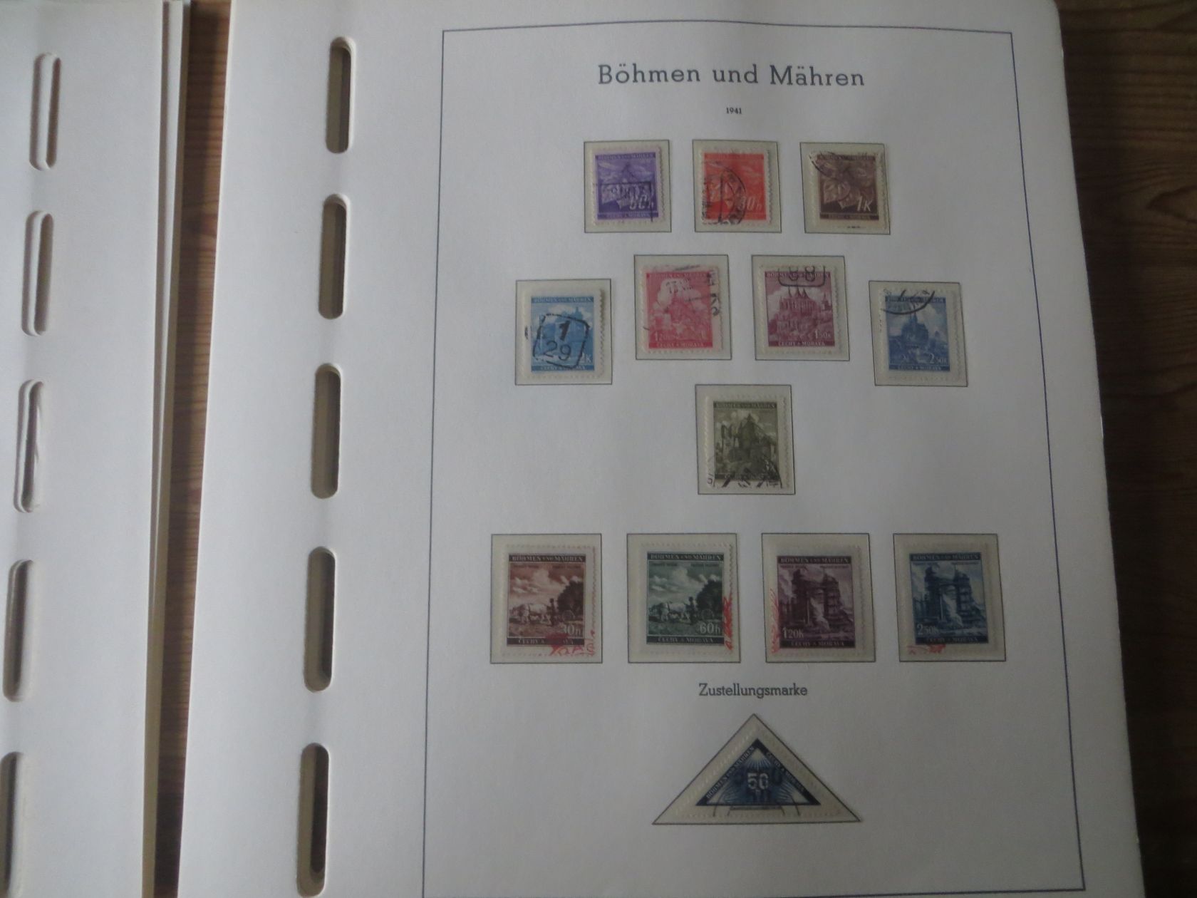 Gebiete Allenstein, Marienwerder, Oberschlesien, Schleswig, Böhmen & Mähren (Höchstwert 19 geprüft Gilbert), Generalgouvernement, Elsaß, Lothringen, Luxemburg, Ostland, Ukraine und Estland. Gemäß den Vordrucken schon zeimlich komplett! Alles sehr sauber auf Leuchtturm Vordruck Blättern angelegt. Wie alle Sammlungen dieses Einlieferes vermutlich zu ca. 99% gute Erhaltung !!! Wir haben alle besseren überprüft. Zubehörpreis heute rund 100,00 €!