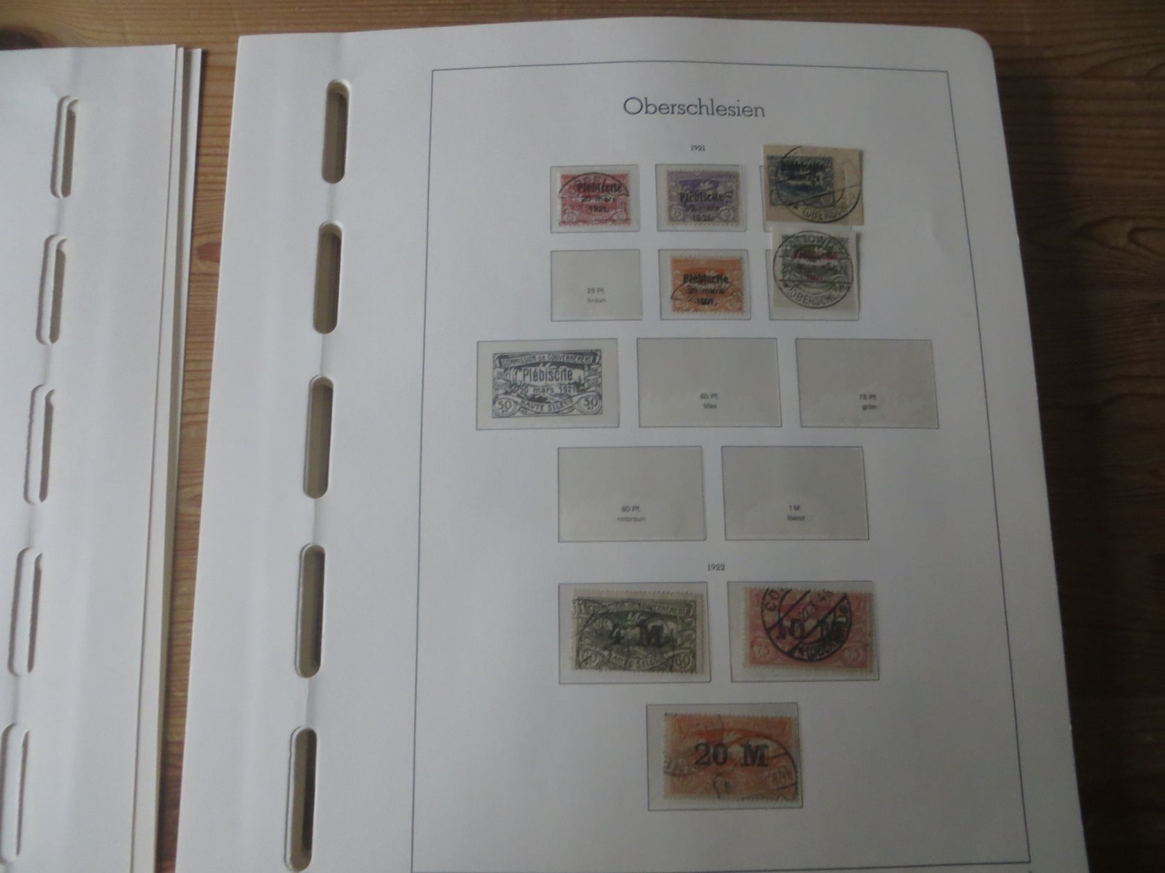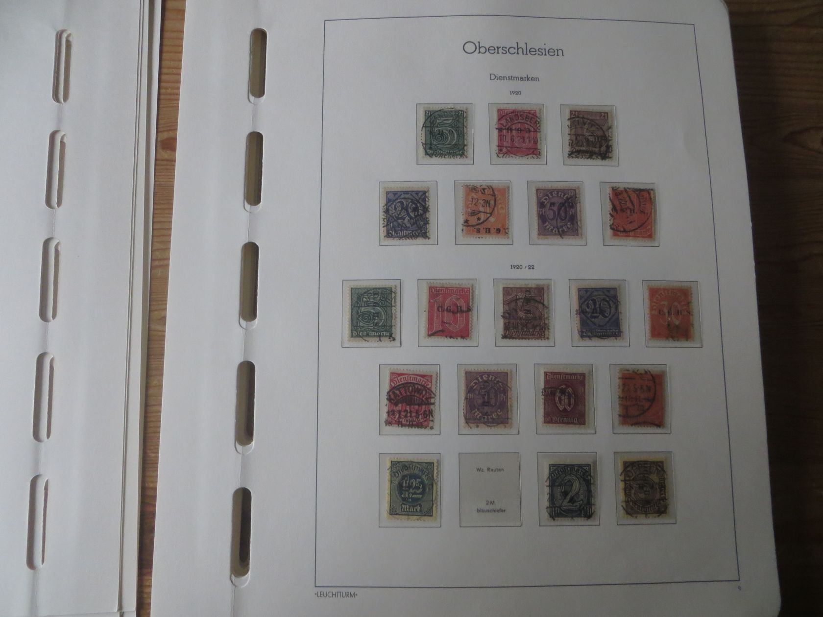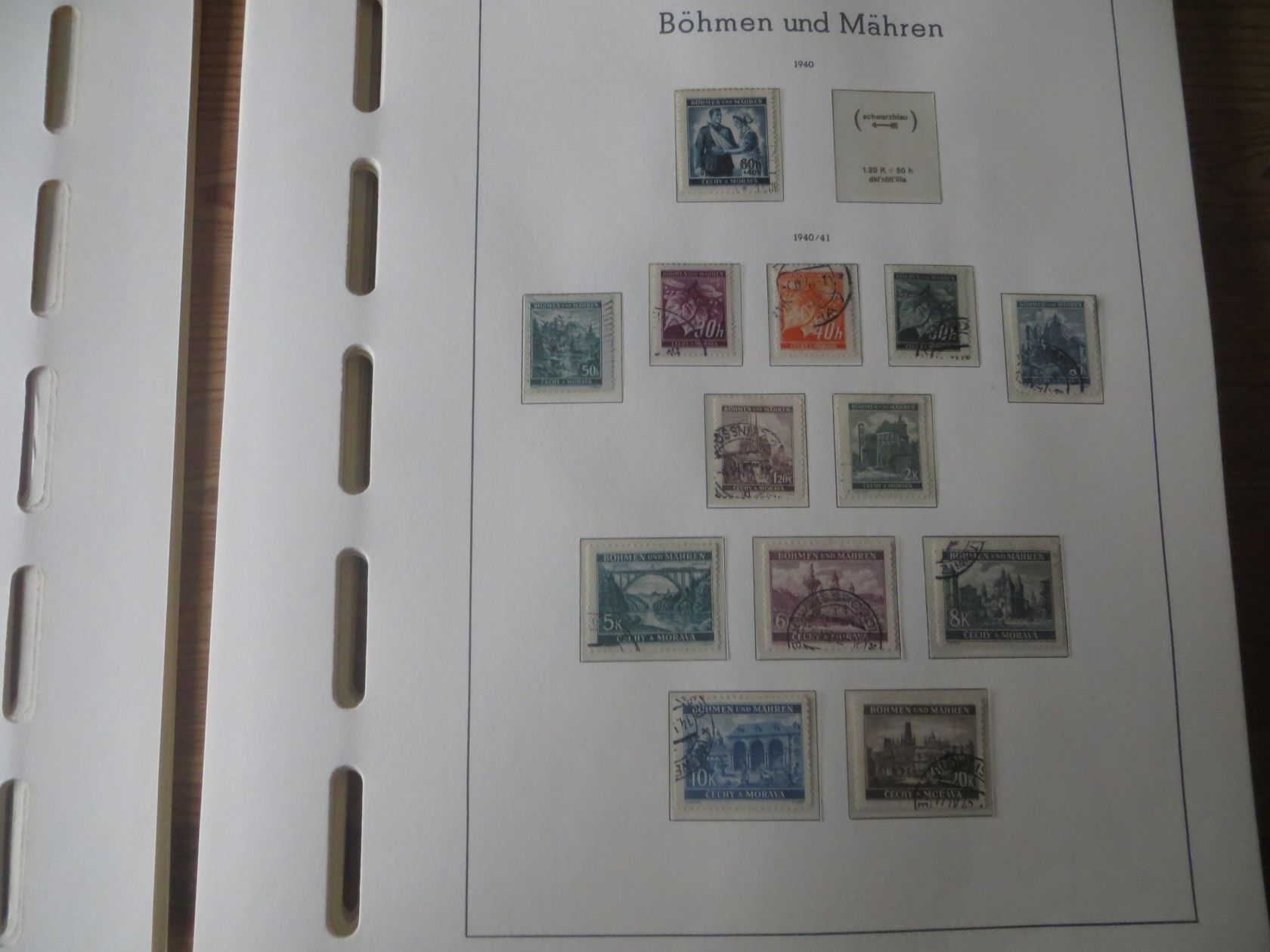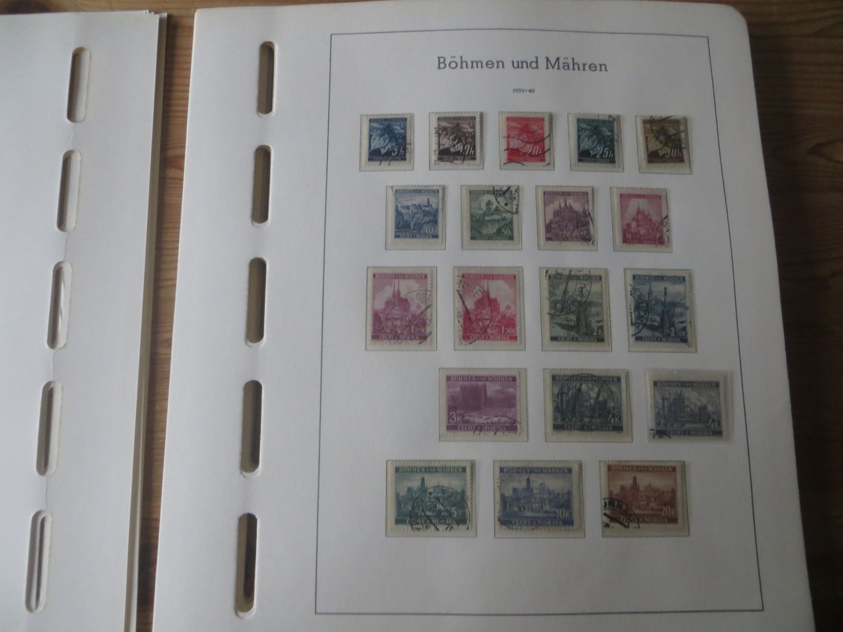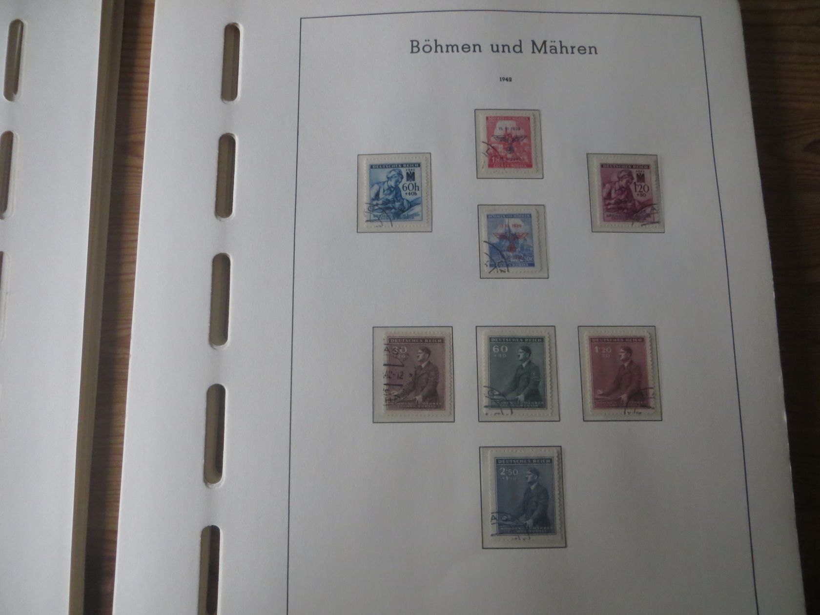 Gebiete Allenstein, Marienwerder, Oberschlesien, Schleswig, Böhmen & Mähren (Höchstwert 19 geprüft Gilbert), Generalgouvernement, Elsaß, Lothringen, Luxemburg, Ostland, Ukraine und Estland. Gemäß den Vordrucken schon zeimlich komplett! Alles sehr sauber auf Leuchtturm Vordruck Blättern angelegt. Wie alle Sammlungen dieses Einlieferes vermutlich zu ca. 99% gute Erhaltung !!! Wir haben alle besseren überprüft. Zubehörpreis heute rund 100,00 €!