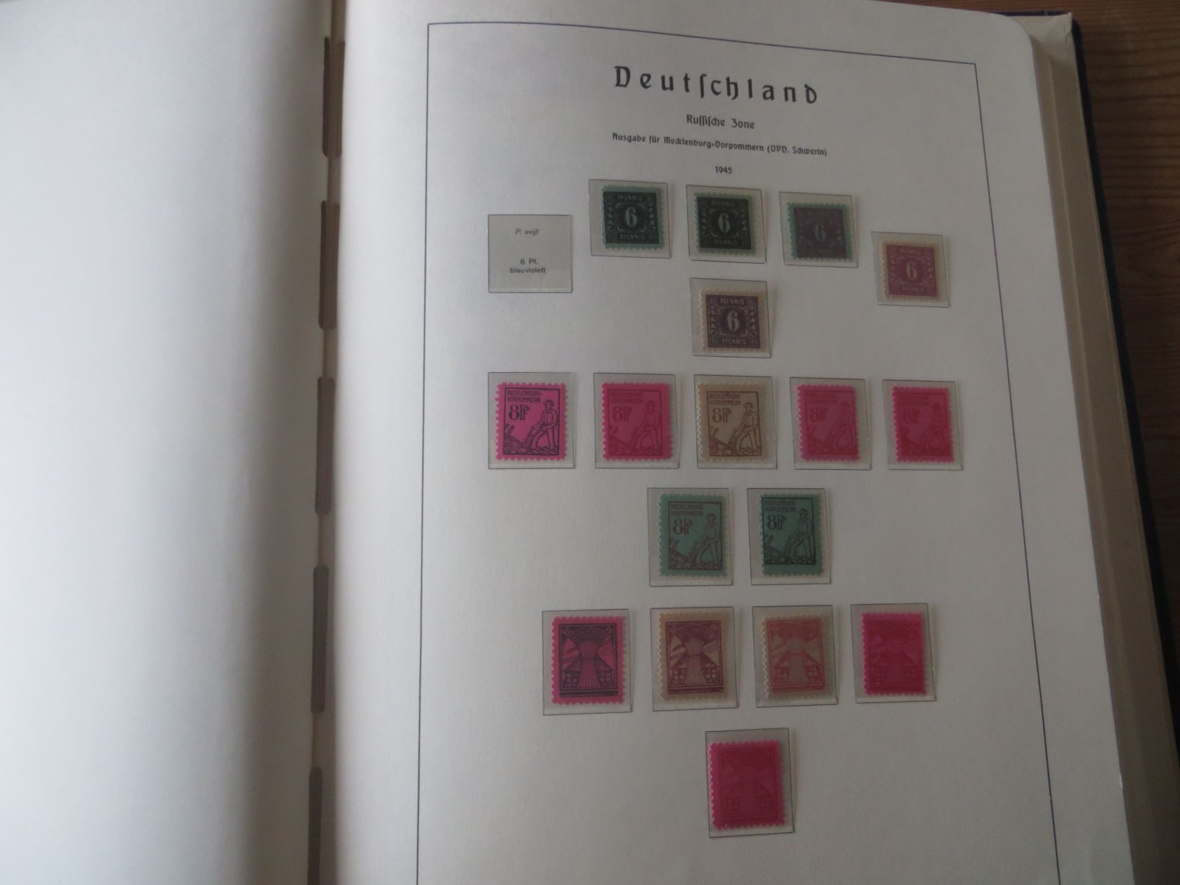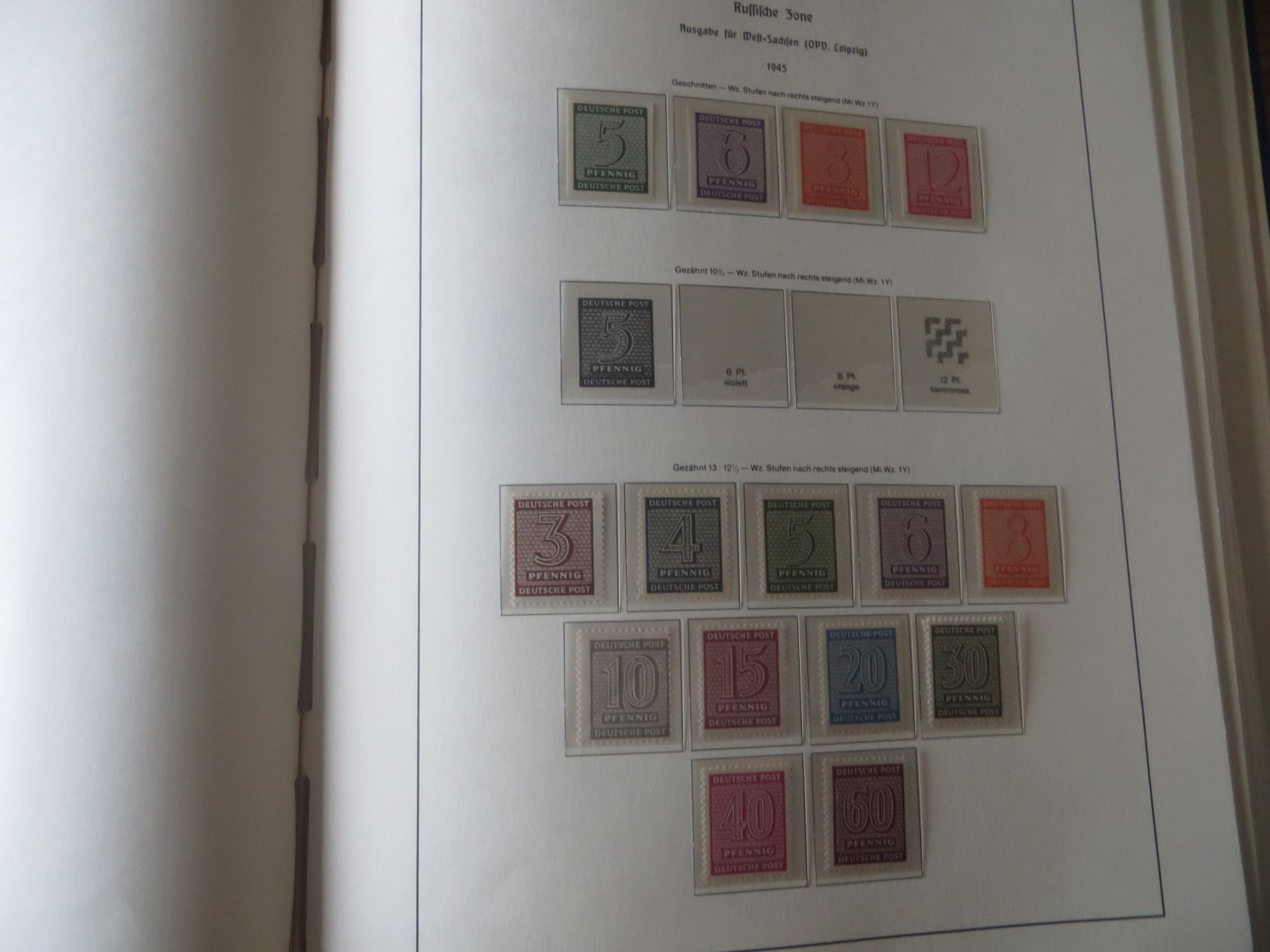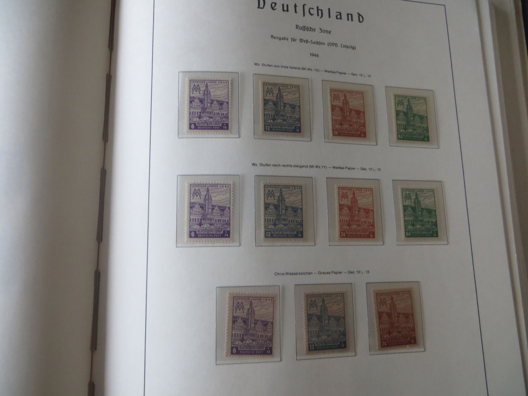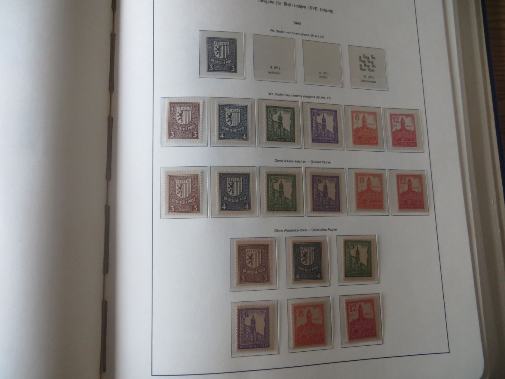 viele gute Ausgaben und Blöcke, bis zum Goethe-Block! Der Weihnachts-Block kann nicht gewertet werden. In den Hauptnummern wohl bis auf 2-3 Werte komplett, aber !!!! dazu noch sehr viele Besonderheiten auf den Vordrucken, und auf Sonderseiten, Farben und Zähnungswarianten! Alles im Leuchtturm-Falzlos Album. Dazu noch außerdem ein Blattsatz meist ohne Taschen. Sehr hoher Kat.Wert!!! Alles im neuwertigen, blauem Leuchturm Binder incl. Schuber! Ein sehr empfehlenswertes tolles Objekt. Der Zubehör Neupreis liegt heute schon bei alleine 210,00 €!