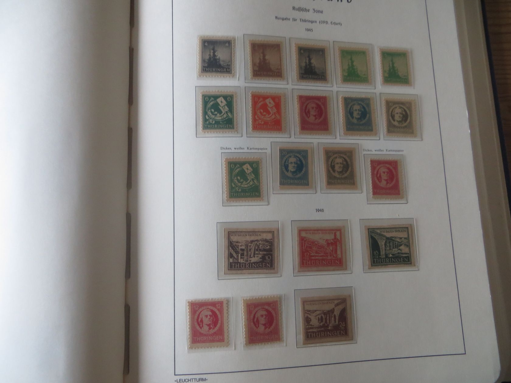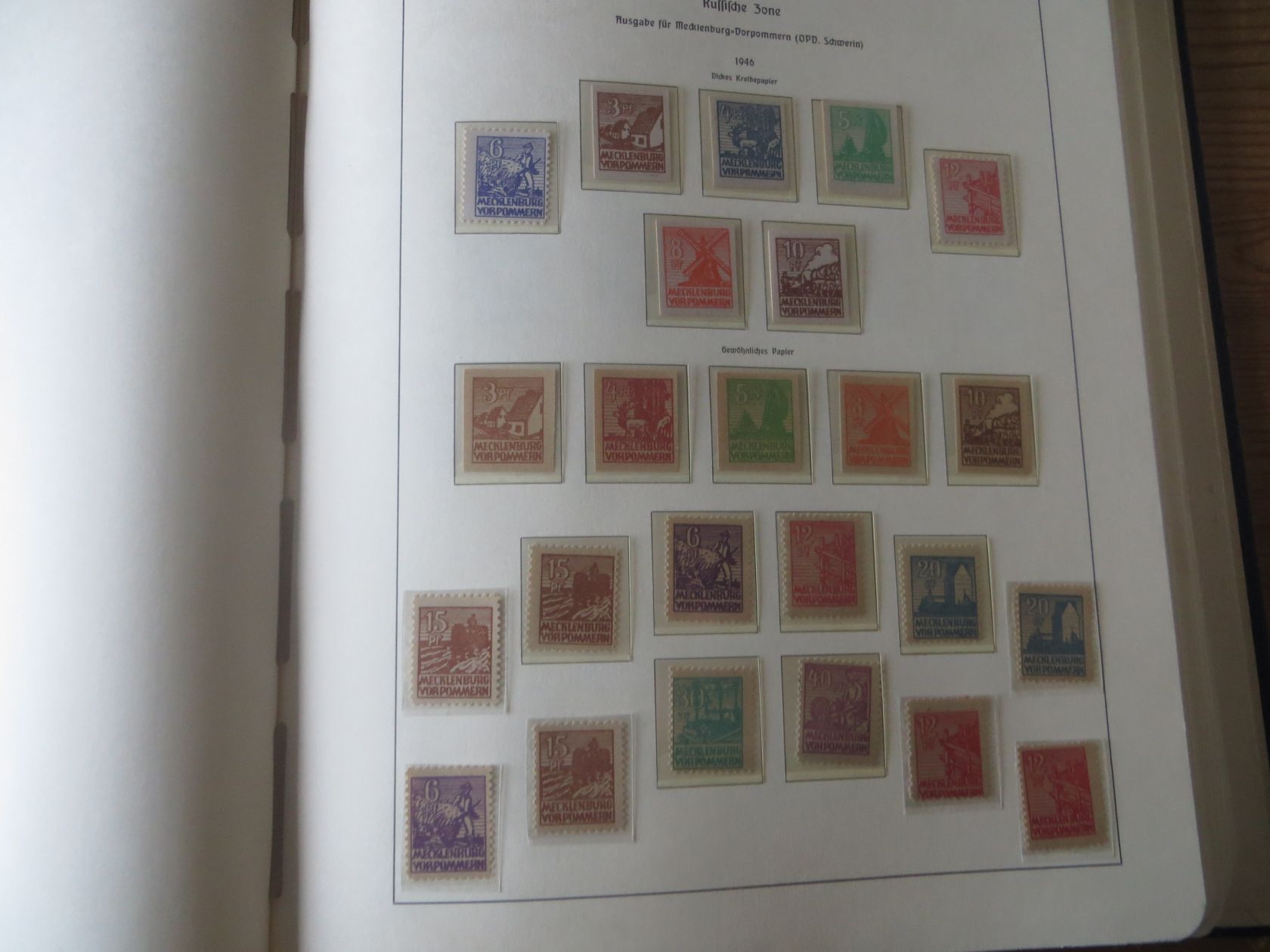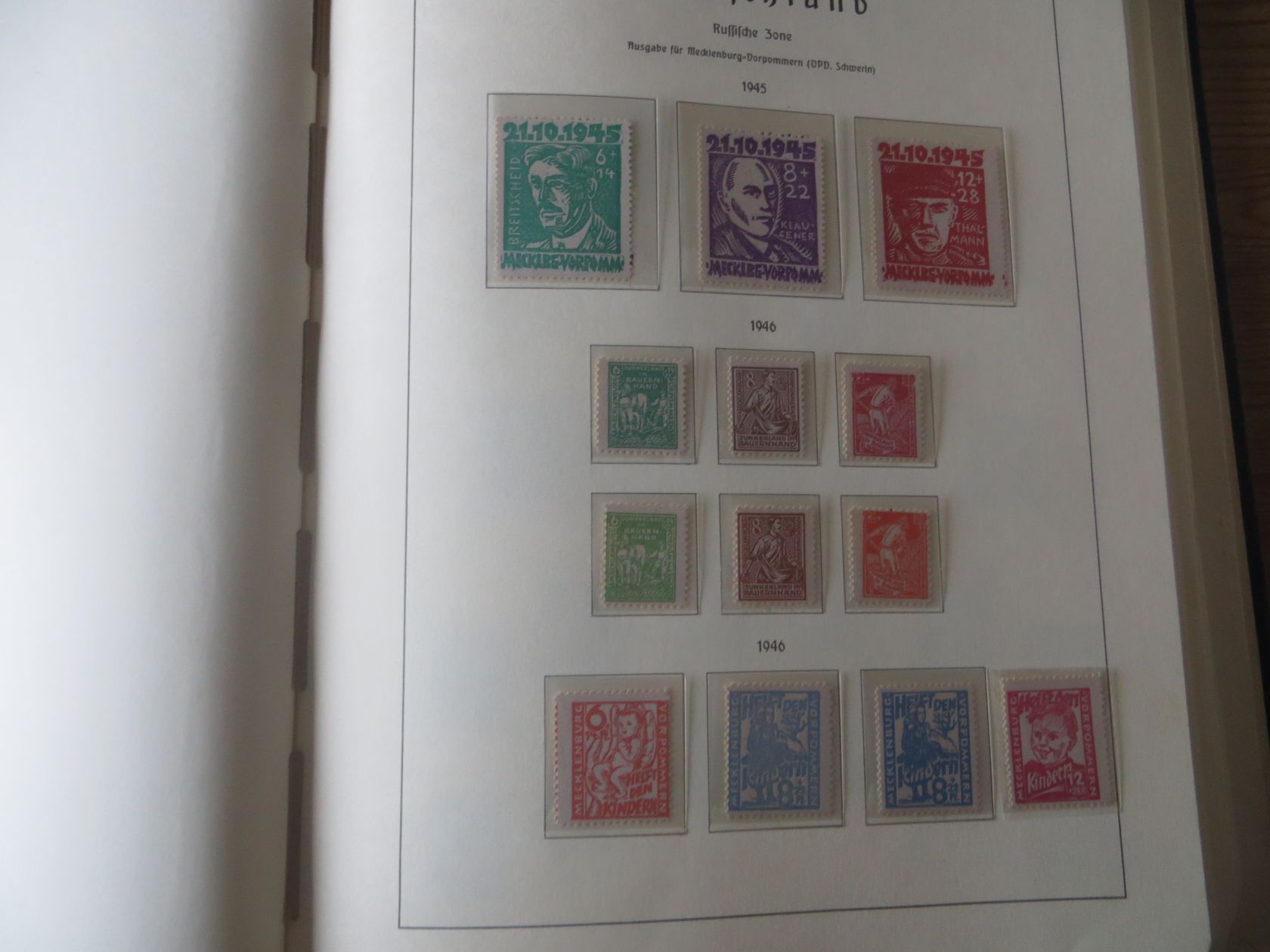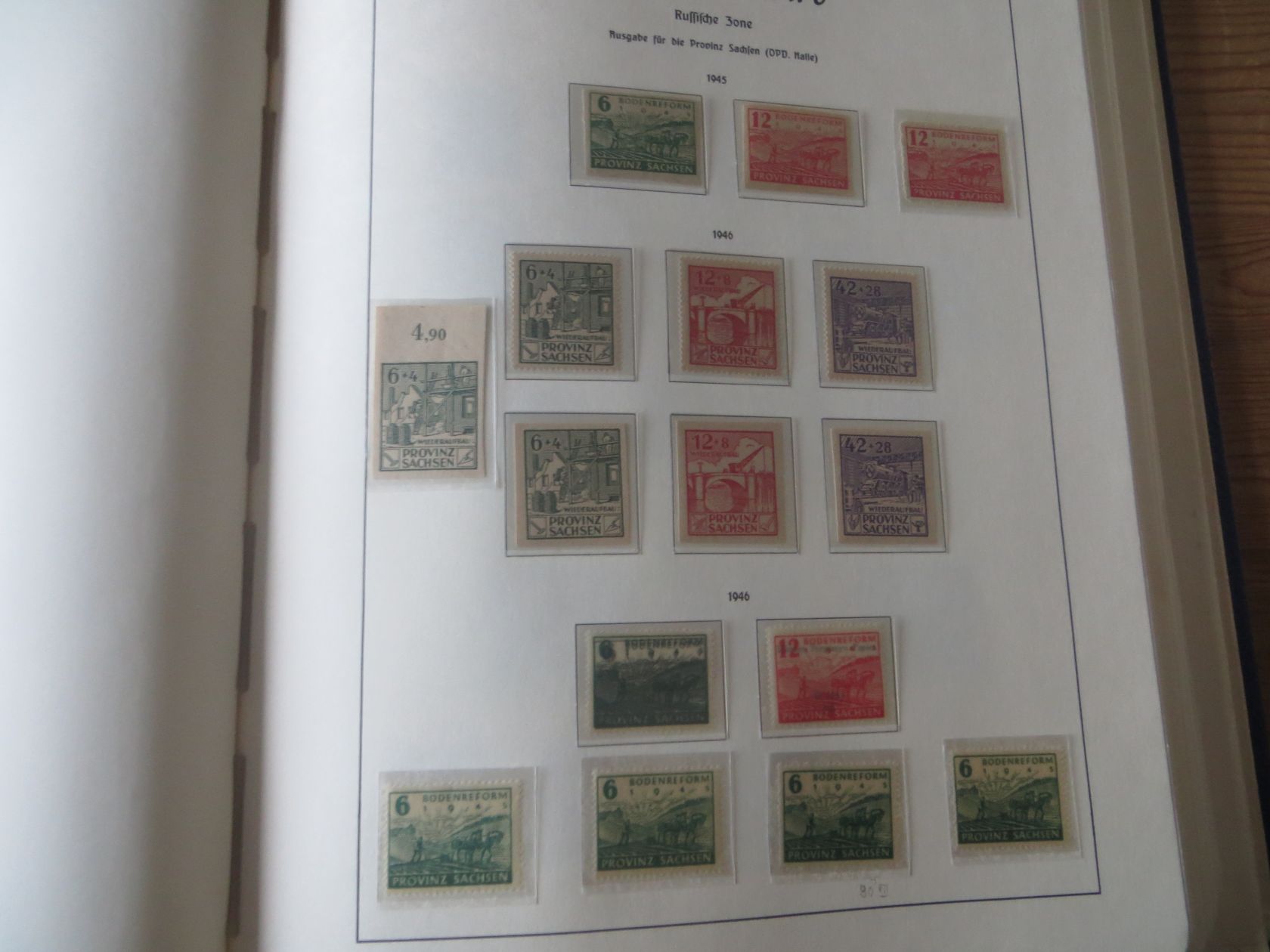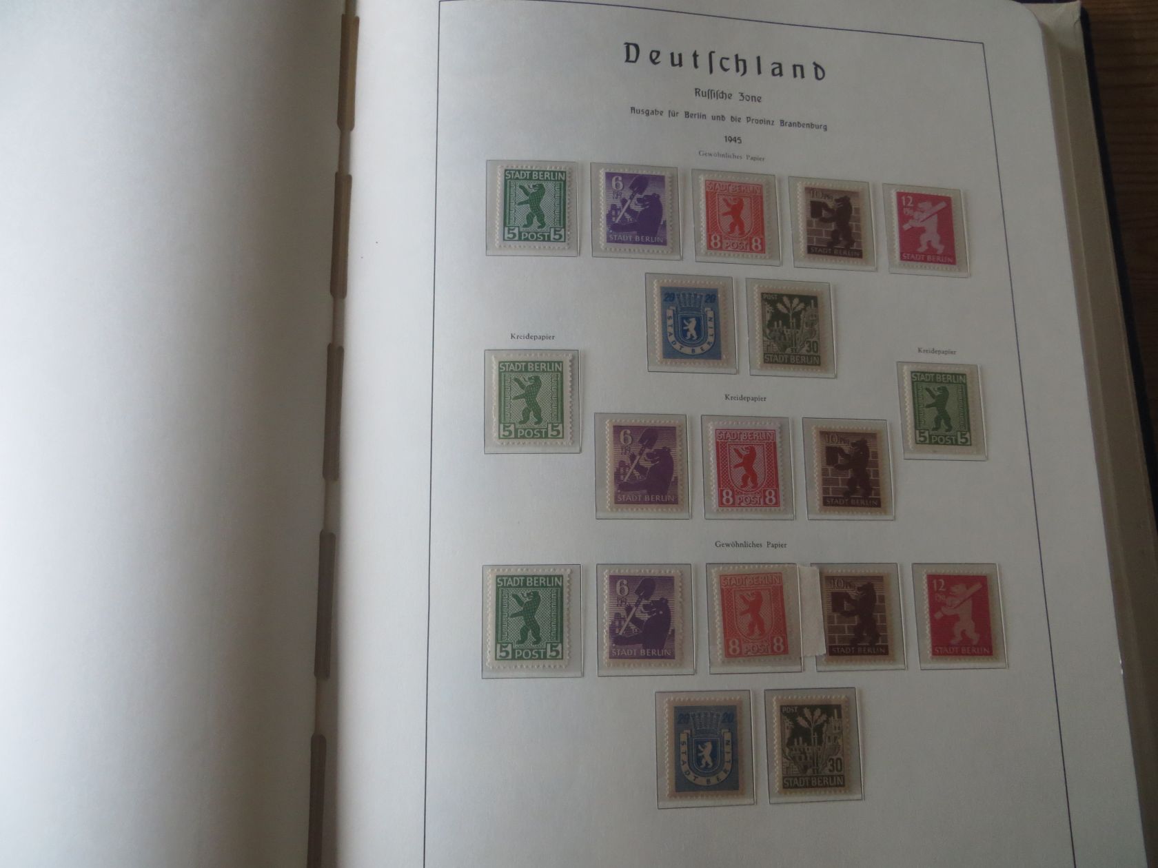 viele gute Ausgaben und Blöcke, bis zum Goethe-Block! Der Weihnachts-Block kann nicht gewertet werden. In den Hauptnummern wohl bis auf 2-3 Werte komplett, aber !!!! dazu noch sehr viele Besonderheiten auf den Vordrucken, und auf Sonderseiten, Farben und Zähnungswarianten! Alles im Leuchtturm-Falzlos Album. Dazu noch außerdem ein Blattsatz meist ohne Taschen. Sehr hoher Kat.Wert!!! Alles im neuwertigen, blauem Leuchturm Binder incl. Schuber! Ein sehr empfehlenswertes tolles Objekt. Der Zubehör Neupreis liegt heute schon bei alleine 210,00 €!