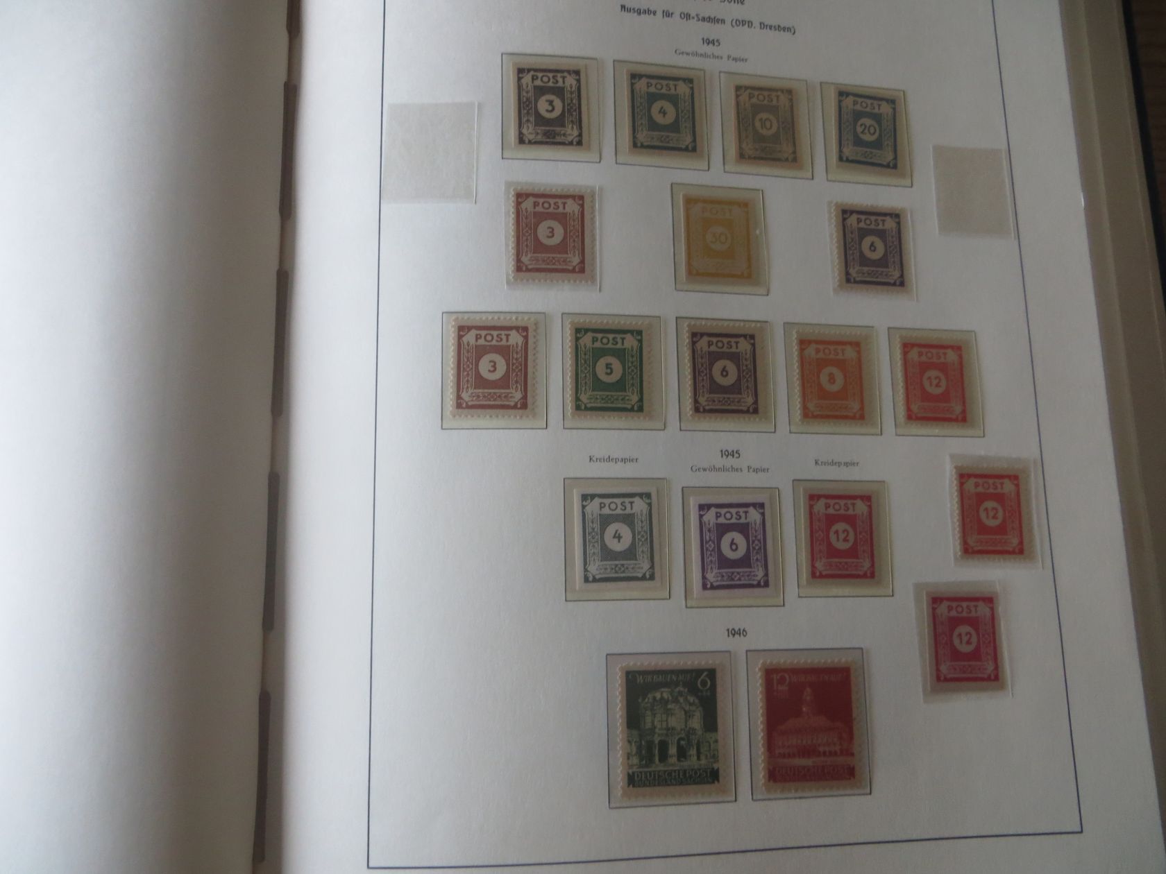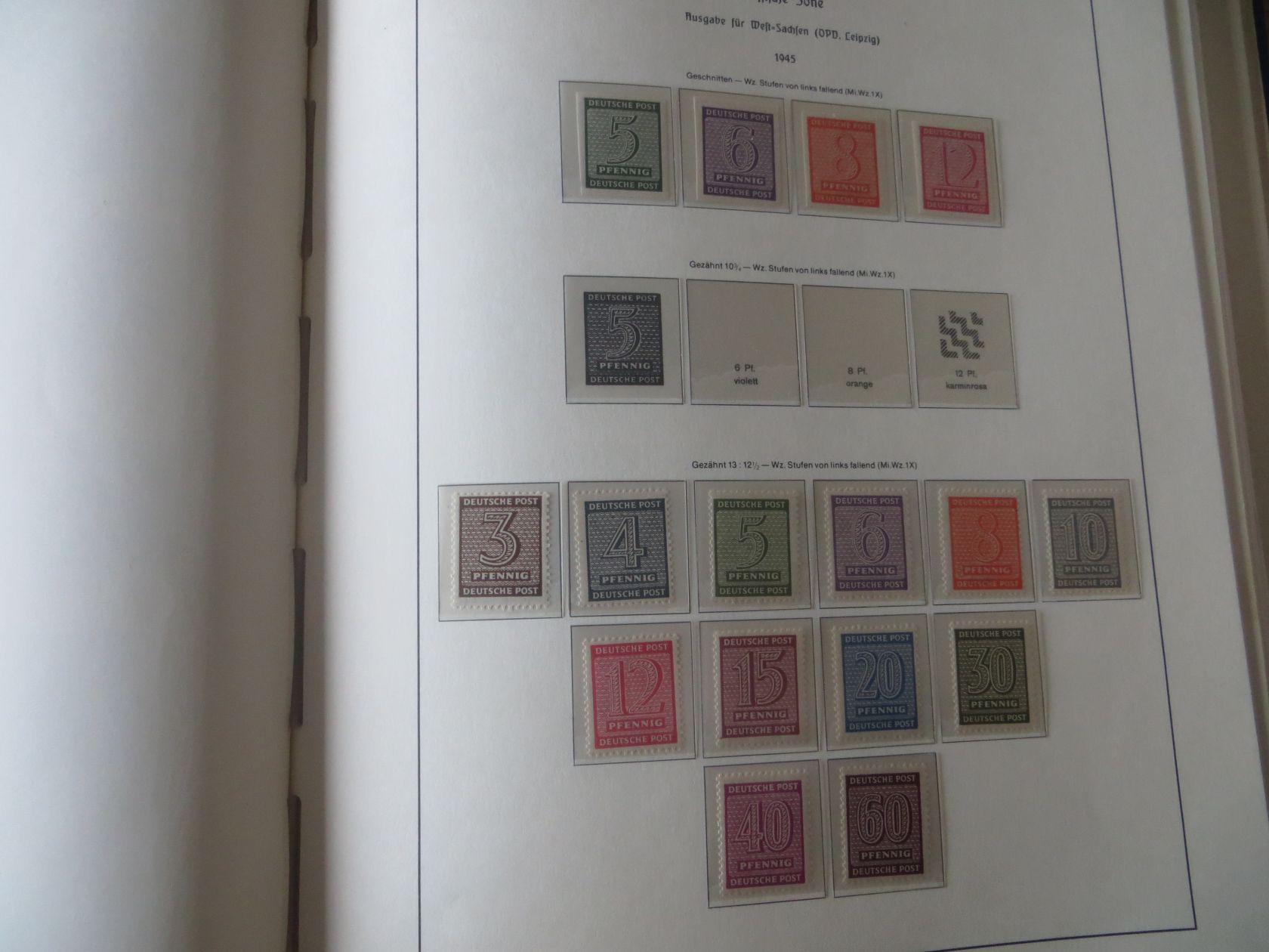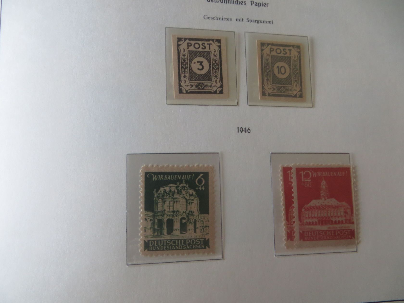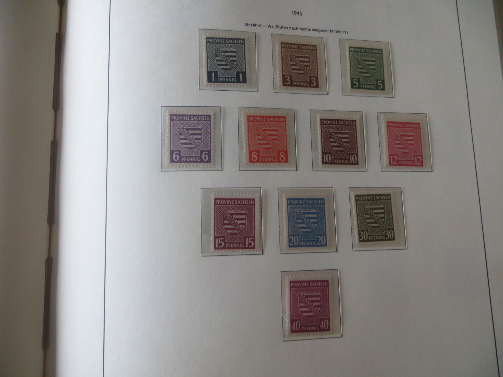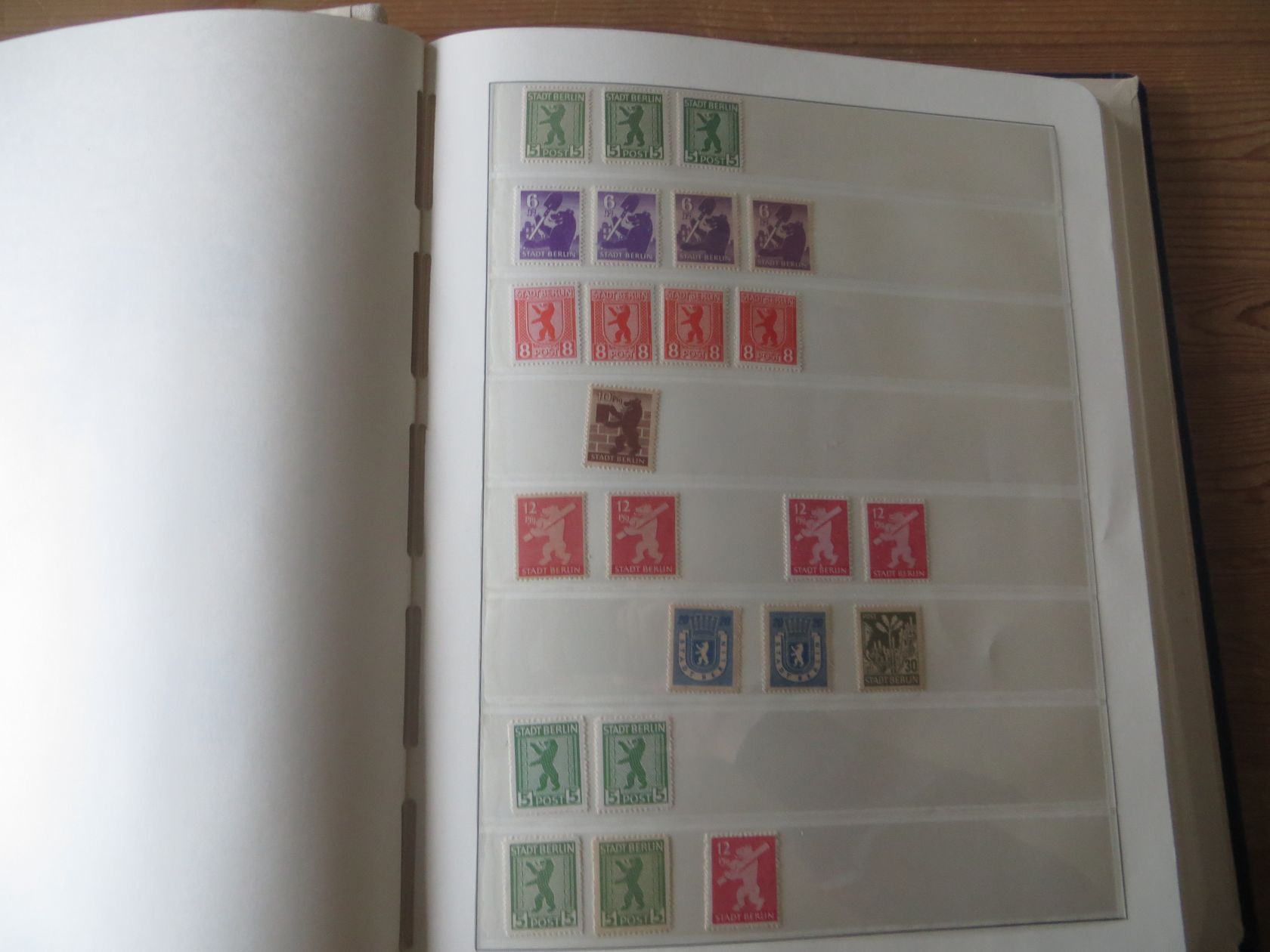 viele gute Ausgaben und Blöcke, bis zum Goethe-Block! Der Weihnachts-Block kann nicht gewertet werden. In den Hauptnummern wohl bis auf 2-3 Werte komplett, aber !!!! dazu noch sehr viele Besonderheiten auf den Vordrucken, und auf Sonderseiten, Farben und Zähnungswarianten! Alles im Leuchtturm-Falzlos Album. Dazu noch außerdem ein Blattsatz meist ohne Taschen. Sehr hoher Kat.Wert!!! Alles im neuwertigen, blauem Leuchturm Binder incl. Schuber! Ein sehr empfehlenswertes tolles Objekt. Der Zubehör Neupreis liegt heute schon bei alleine 210,00 €!