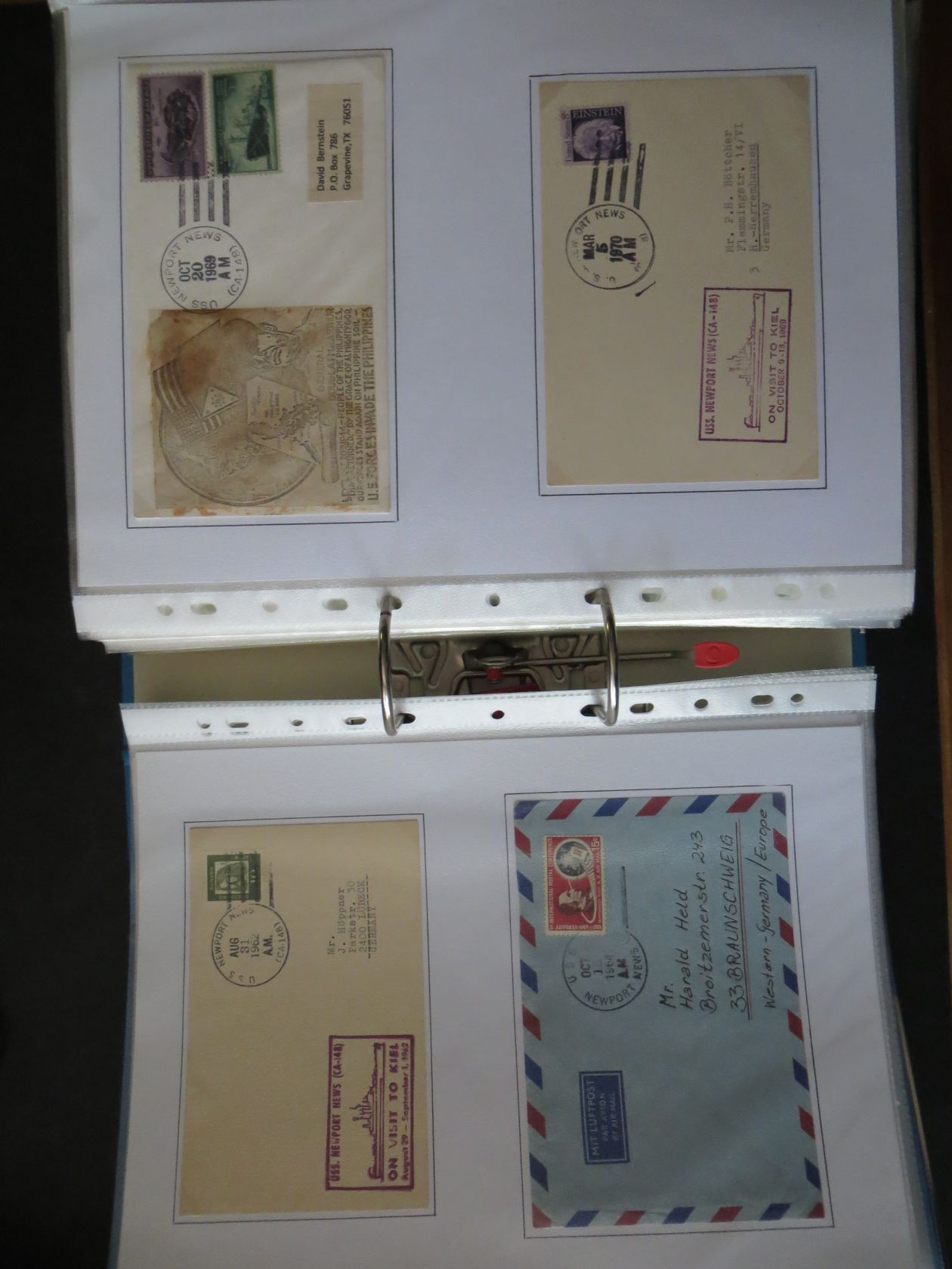 Sammlung in etlichen Ordnern sehr sauber unter Fotoecken aufgezogen. Nach Angaben des Einlieferers sind es weit über 2.000 Belege. Eine Aufstellung nach Schiffsname mit Kennung und Dienstzeit, mit Angabe des Bordpostamtes wenn vorhanden und die Wertigkeit etc. können Interessenten gerne anfordern. Dazu Literatur Kreuzer der US Navy und Zerstörer der US Navy von Stefan Terzibaschitsch. Beide neuwertig! Die Versandkosten innerhalb Deutschlands kosten 80,00 €, ins Ausland bitte auf Anfrage!