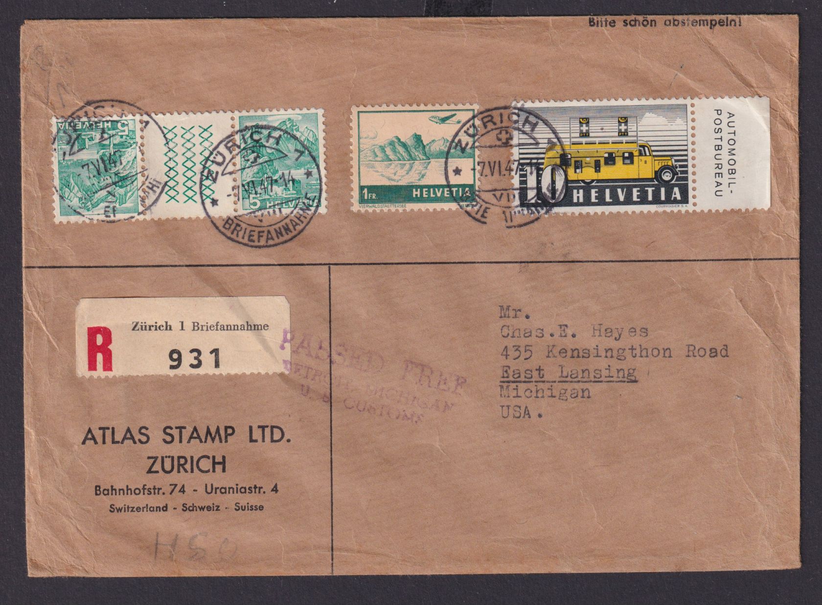 Schweiz R Brief Flugpost plus Zusammendruck Kehrdruck mit R Zettel Zürich