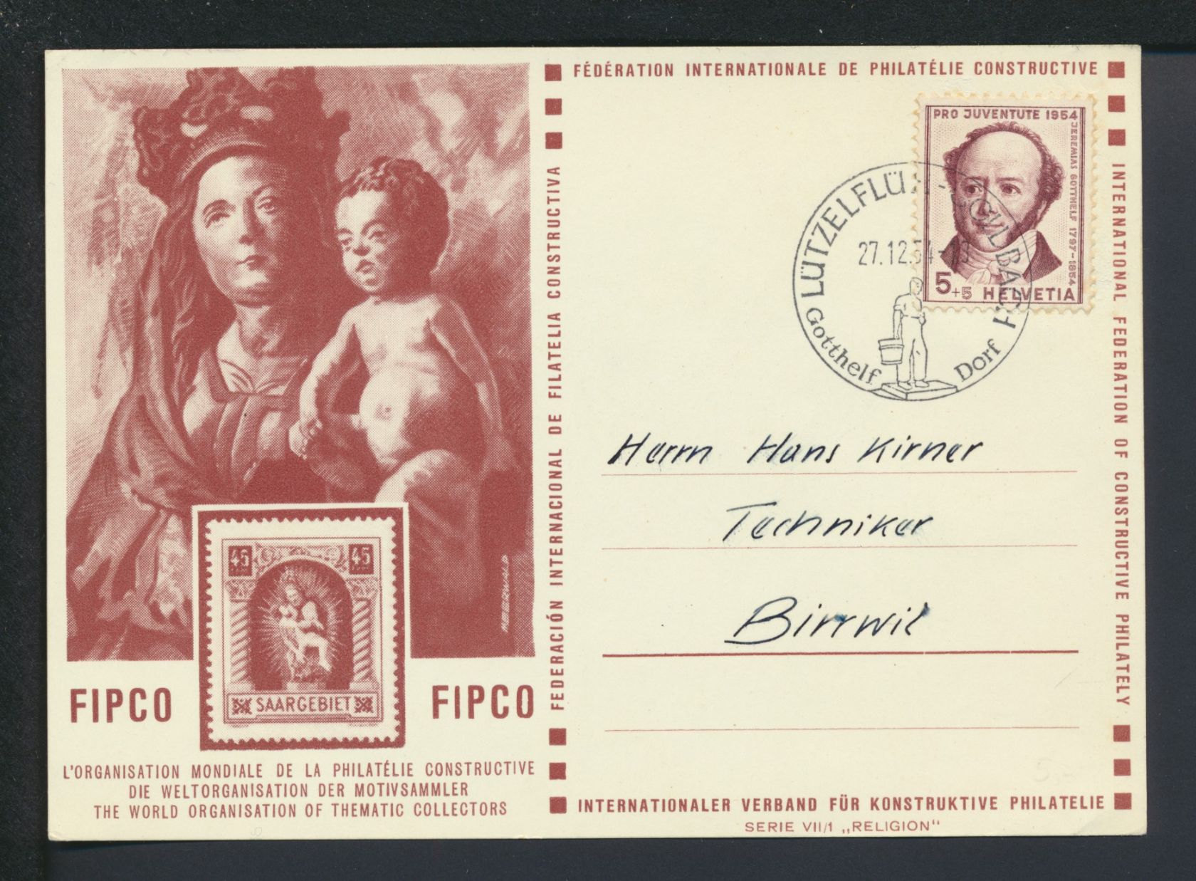 Schweiz Sonderkarte Philatelie Briefmarken Lützelflüh Oldenbach Gotthelf Dorf