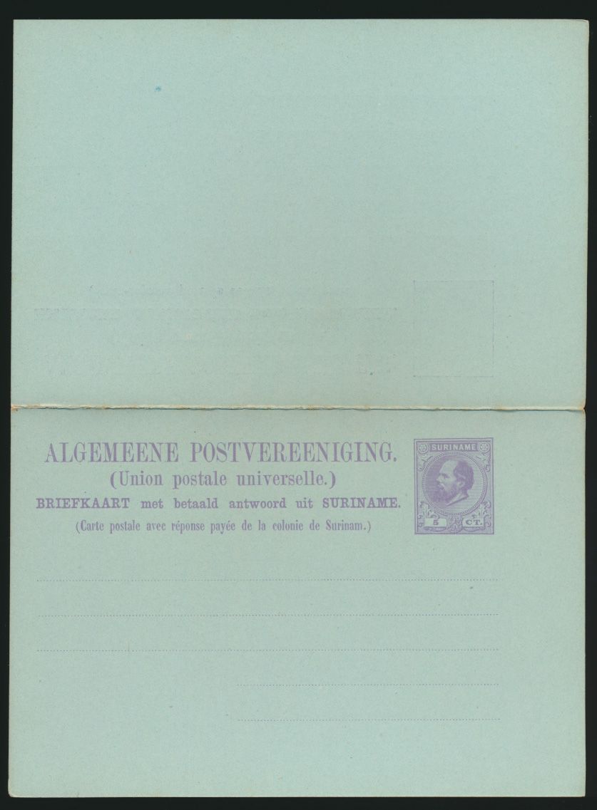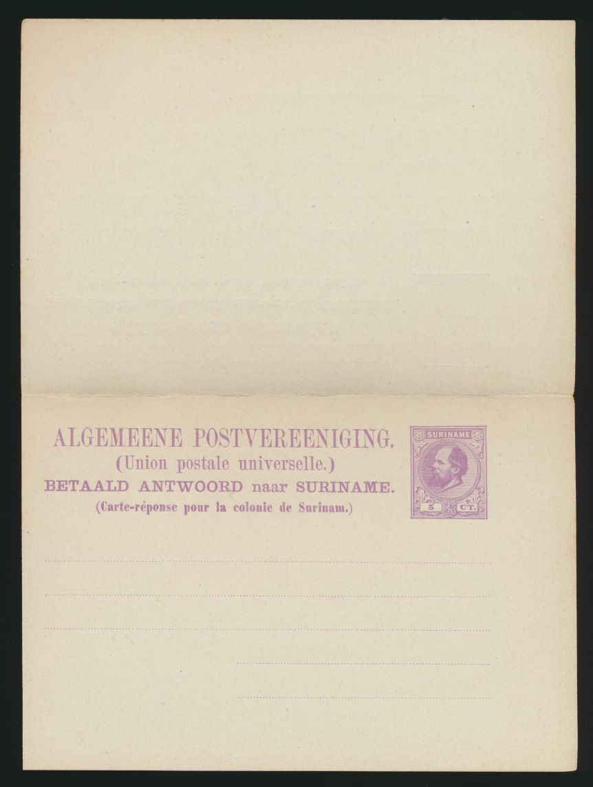 Surinam Ganzsache Karte 5 cent Frage + Antwort postal stationery King Wilhelm