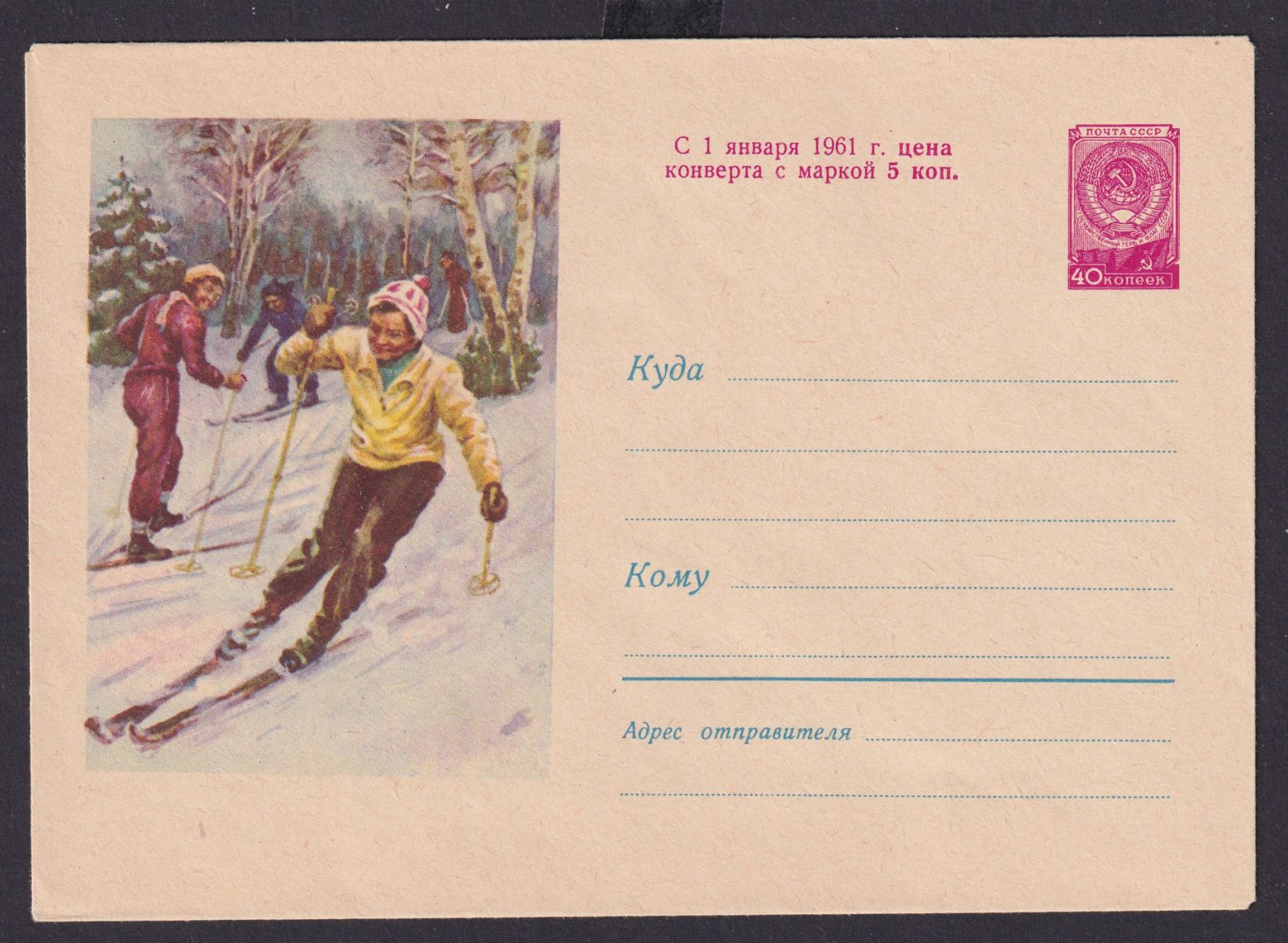 UDSSR Sowjetunion Bild Ganzsache Sport Wintersport Ski Alpin