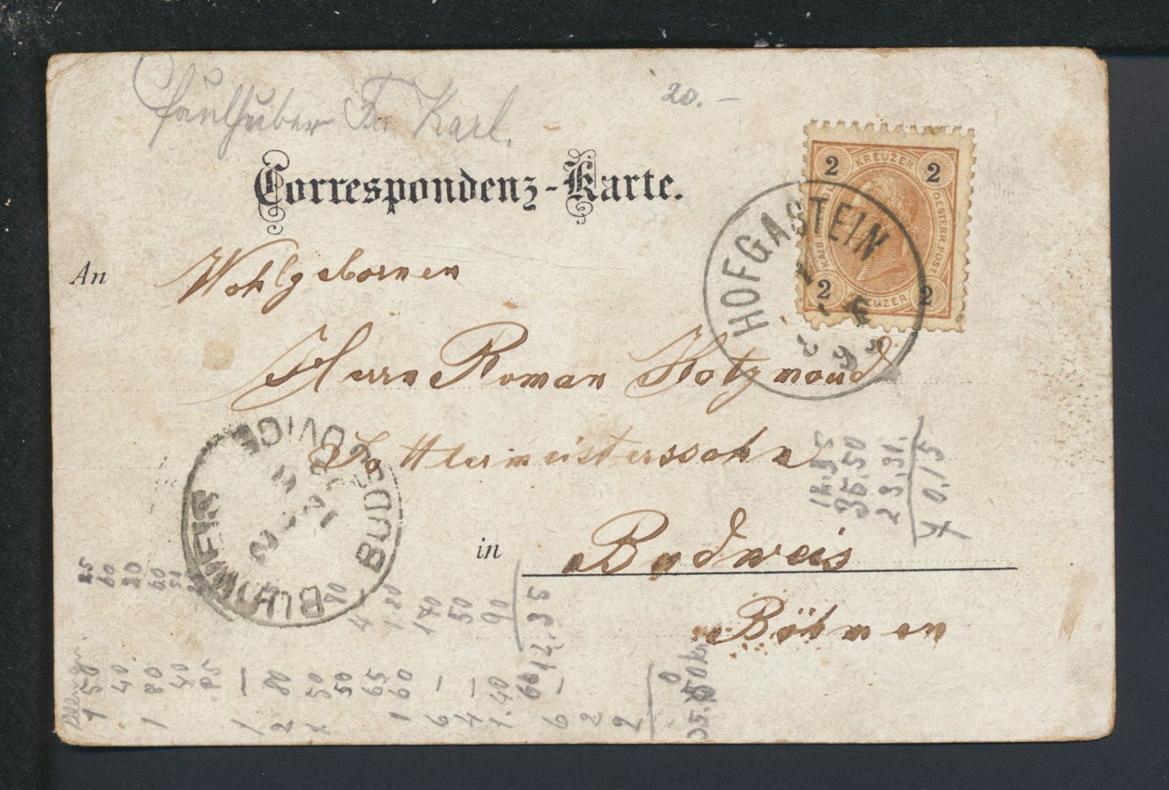 Vorläufer Litho Ansichtskarte Hofgastein Gastein Österreich Budweis Tschechien 1895