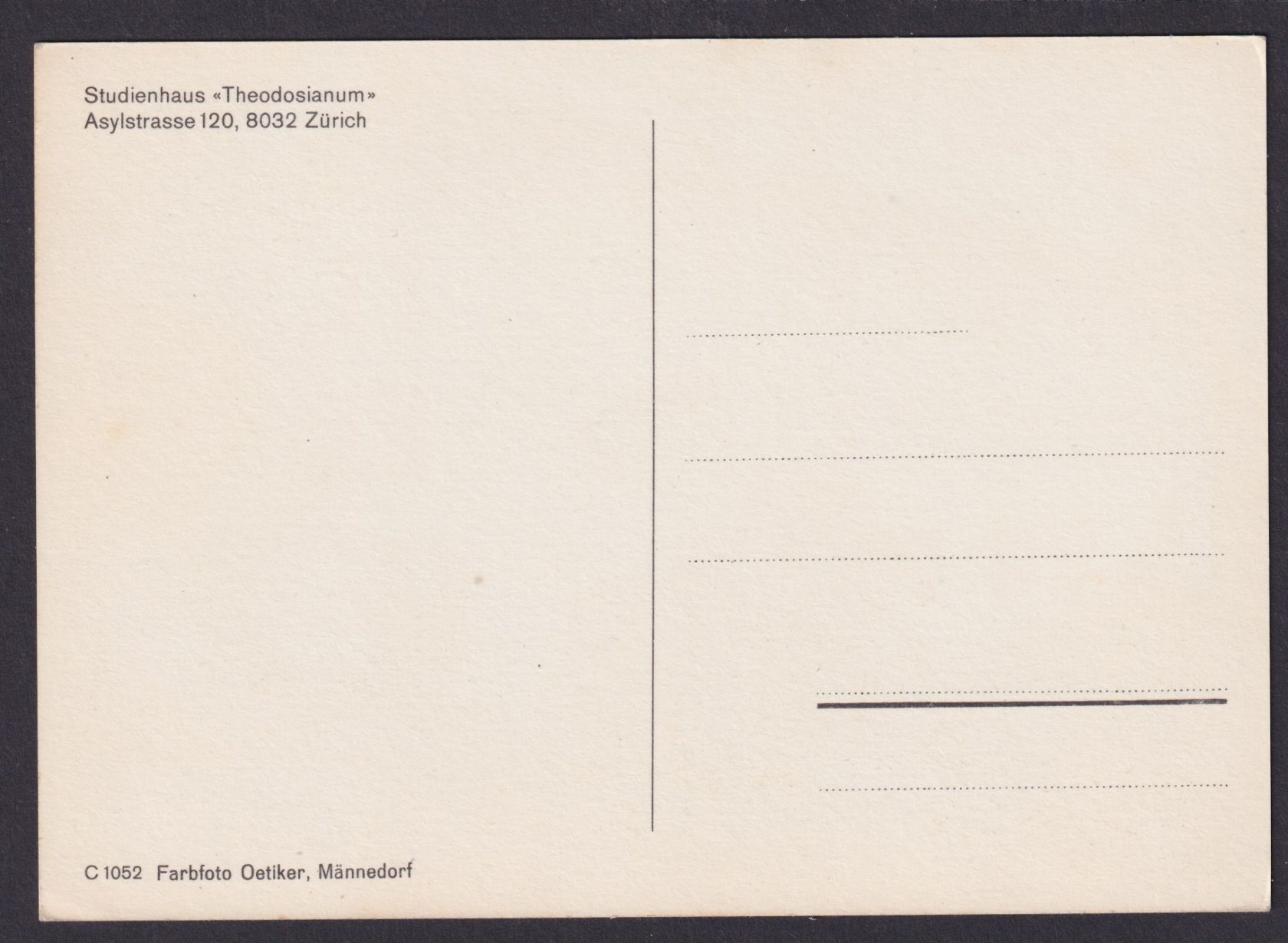 Zürich Ansichtskarte Studienhaus Theodosianum Asylstraße Auto Automobil VW Bulli